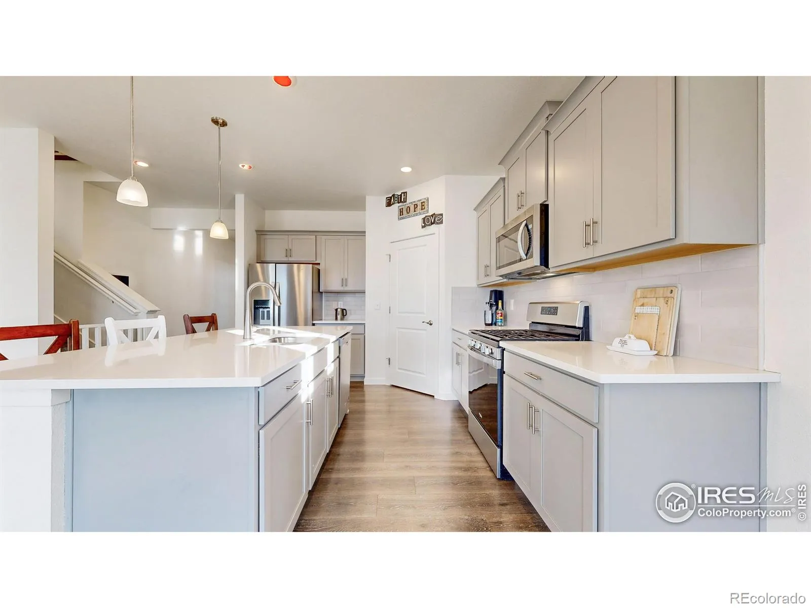 At 4504 Kingswood Drive sits a beautifully maintained home awaiting its next story. This property seamlessly blends rural charm with modern conveniences, all set against a backdrop of Colorado’s open skies and captivating mountain views. The spacious layout features 5 bedrooms and 3 bathrooms, offering flexible options for living, hosting, or hobbies. The main level welcomes you with an abundance of natural light, highlighted by custom windows and an open floor plan. A dedicated main-floor office with large windows provides a quiet, professional space for remote work. The upgraded kitchen offers abundant storage with the walk-in pantry and contemporary cabinetry. The functional island featuring quartz countertops which carry throughout the home, connects seamlessly to the dining and living spaces. Completing the main floor is a designated guest bedroom with a full-size bathroom, presenting a delightful mix of open-living charm and modern functionality. Upstairs, the well-appointed primary bedroom includes an ensuite bath and walk-in closet, along with serene mountain views that welcome you to relax in your quiet surroundings. Three additional bedrooms and a versatile loft offer space for a playroom, media lounge, or the potential to enclose the loft and create an additional bedroom. The unfinished basement also provides a unique opportunity to put your stamp on the home with room to expand-potentially creating more bedrooms and bathrooms to fit personal needs. Outside, the large backyard invites you to play, garden, or entertain. The 2.5-car garage provides plenty of extra storage for outdoor and recreational gear. This exceptional location puts you near neighborhood trails, shopping, and dining, with easy access to Windsor, Fort Collins, and Greeley. Discover the comfort and convenience Colorado has to offer-Welcome Home!