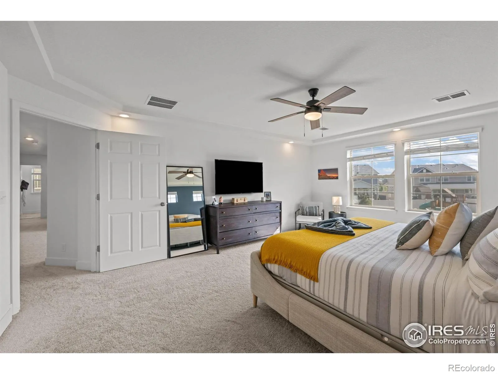 Experience modern luxury in the exclusive, gated Green Valley Ranch golf community-one of Denver’s most sought-after destinations for upscale living and resort-style amenities. Situated on a private cul-de-sac, this 2022 Oakwood Homes property combines elevated privacy, contemporary elegance, and every convenience for an exceptional lifestyle. This residence features nearly 5,000 finished square feet with 5 spacious bedrooms, 5 bathrooms, and a 3-car heated garage with epoxy flooring and built-in overhead storage. Enjoy mountain views from the front balcony and seamless indoor-outdoor living with direct access to a professionally landscaped backyard oasis-$70,000 in enhancements including 17 trees, raised garden beds, a stone patio, and a stunning built-in pergola. Inside, the open-concept design offers luxury vinyl plank flooring, a striking living area with gas fireplace, and a chef’s kitchen equipped with black granite countertops, a five-burner gas stove, stainless steel appliances, double refrigerators and freezers, walk-in pantry, and oversized island. The dining room flows naturally to the backyard for effortless entertaining, and a dedicated office space enhances functionality. Upstairs, the primary suite provides plush carpeting, a custom ceiling fan, a large walk-in closet, and a spa-inspired five-piece bath-jetted tub, oversized walk-in shower, and dual granite vanities. Additional upper-level features include multiple full bathrooms, a versatile loft, and a laundry room with utility sink and cabinetry. The finished basement boasts an extra-wide staircase, a spacious recreation area, a fifth bedroom with private bath, and an abundance of storage. Key upgrades include dual HVAC systems, whole-home water softener, video doorbell security, double-pane windows, and a huge crawl space for additional storage. Residents enjoy Green Valley Ranch amenities: clubhouse, pool, championship golf course, parks, trails, and easy access to shopping, and DIA.