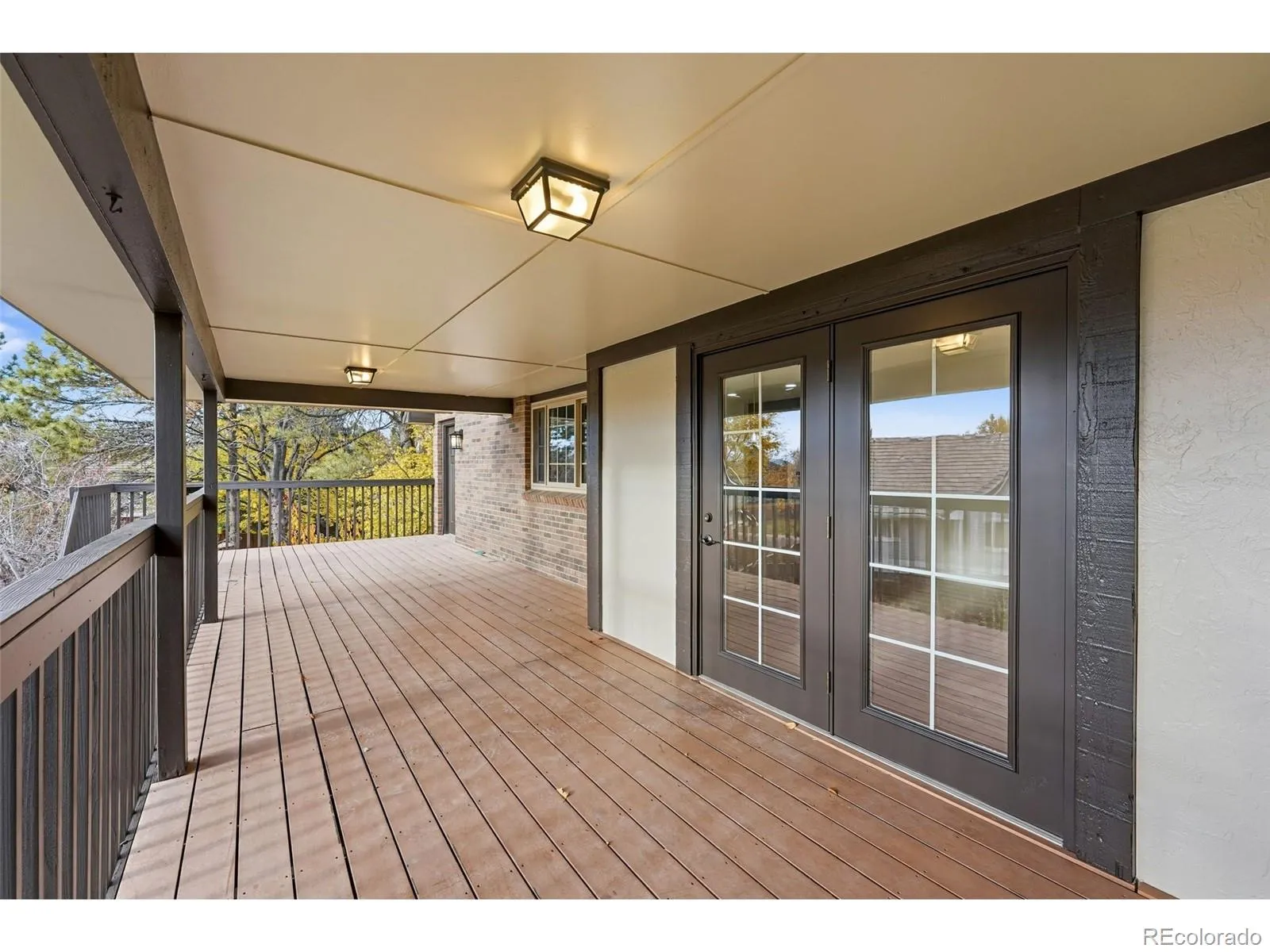 Experience refined Colorado living in this beautifully reimagined contemporary mountain home tucked away in a quiet cul-de-sac in the highly desirable neighborhood of The Hills at Piney Creek. This 5-bedroom, 4-bath residence was completely transformed inside and out in 2025 with an exceptional full renovation designed for modern living. The kitchen is a showpiece with quartz counters, waterfall peninsula, and an all-new GE Café appliance suite. The open layout flows effortlessly into spacious living and dining areas with designer lighting, new flooring, carpet, and fresh interior and exterior paint. Every bathroom features custom tile work, premium fixtures, and thoughtful design. A richly appointed main-level study offers the perfect blend of sophistication and function, featuring deep charcoal walls, custom built-in shelving, and an elegant coffered-style ceiling. Detailed trim accents add architectural depth, creating an inspiring workspace ideal for remote work or quiet reading. Upgrades include new windows, A/C, irrigation system, and full landscaping front and back. Enjoy a large private backyard perfect for gatherings, plus a three-car attached garage and abundant storage in the finished walk-out basement. Neighborhood amenities include a community pool, recreation areas, parks, and trails—all within walking distance of schools, shops, and convenient commuter routes to DTC and downtown. A one-year home warranty adds peace of mind. This move-in ready home blends timeless comfort with contemporary style, offering luxury, functionality, and a perfect Colorado setting.