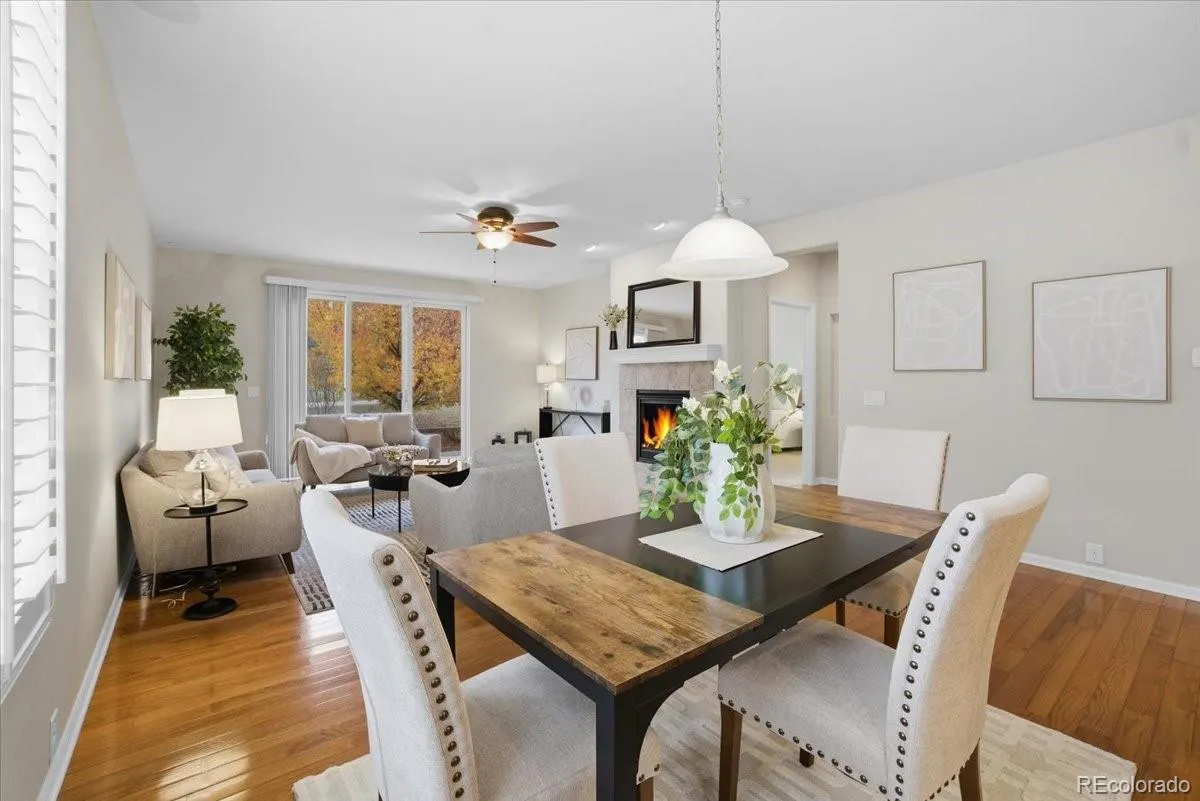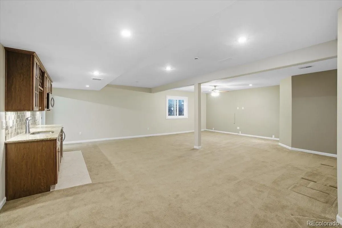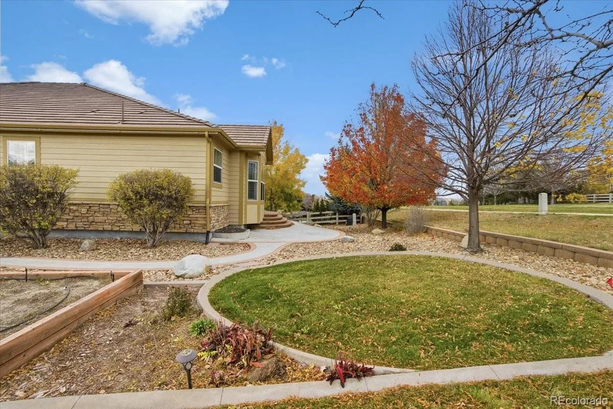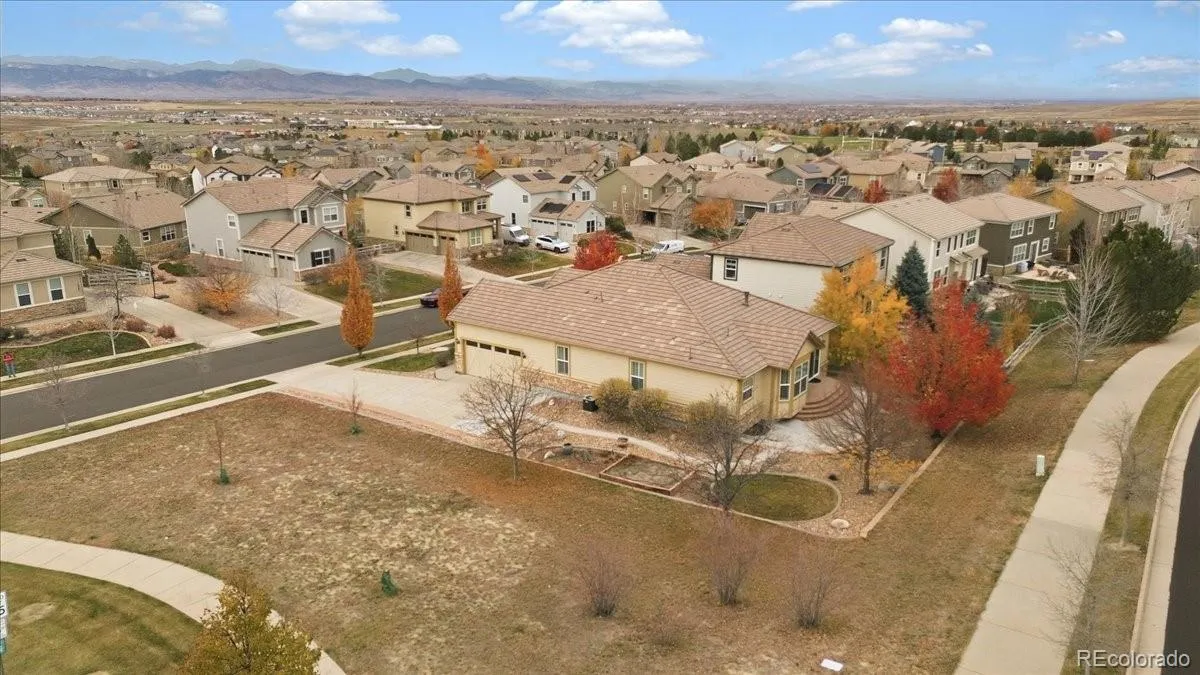 Refined Ranch Residence in Anthem Highlands Showcasing Mountain Views & Modern Accessibility. Perched near the top of the hill on a desirable corner lot, this exceptional home offers breathtaking mountain views, walking paths, and a small open space right outside your door. Mature landscaping frames the property, complete with raised garden beds for the green-thumbed enthusiast. Step inside to find an elegant main-floor living design with gleaming hardwood floors and plantation shutters throughout. The heart of the home is the chef-inspired kitchen—thoughtfully upgraded by a professional chef with premium finishes and an ideal layout for both cooking and entertaining. The primary suite features a coved ceiling, spacious walk-in closet, and a spa-like five-piece bath with soaking tub and dual vanities. Secondary bedrooms enjoy access to a beautifully finished ¾ bath with a zero-edge shower for easy accessibility. An elevator connects all levels, leading to a fully finished basement with a generous family room, wet bar, large bedroom with walk-in closet, and an additional ¾ bath. A 600-sq-ft unfinished area provides abundant storage and houses the lower elevator access. The south-facing side-load 2½-car garage includes a built-in ramp, allowing you to move throughout the home without climbing stairs. Located in the sought-after Anthem Highlands community, residents enjoy a world-class recreation center, pool, fitness facilities, and miles of trails. This home blends thoughtful design, accessibility, and luxury living—all framed by Colorado’s spectacular mountain backdrop.