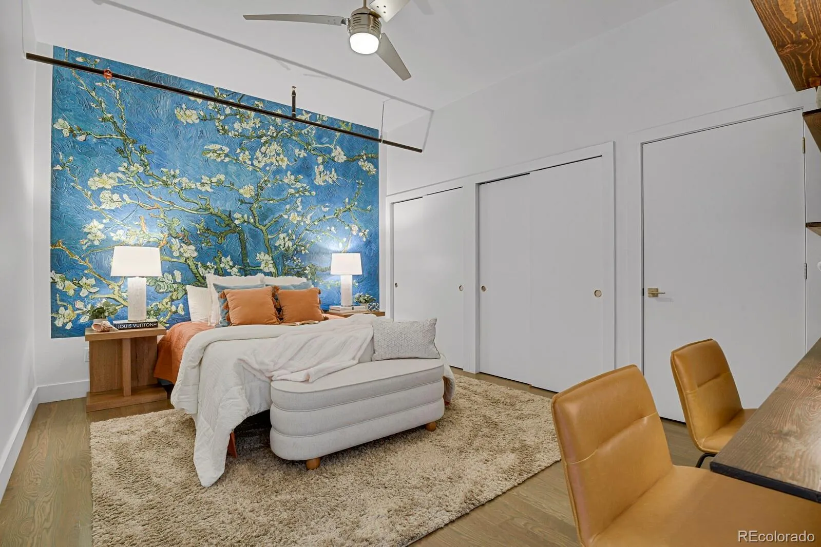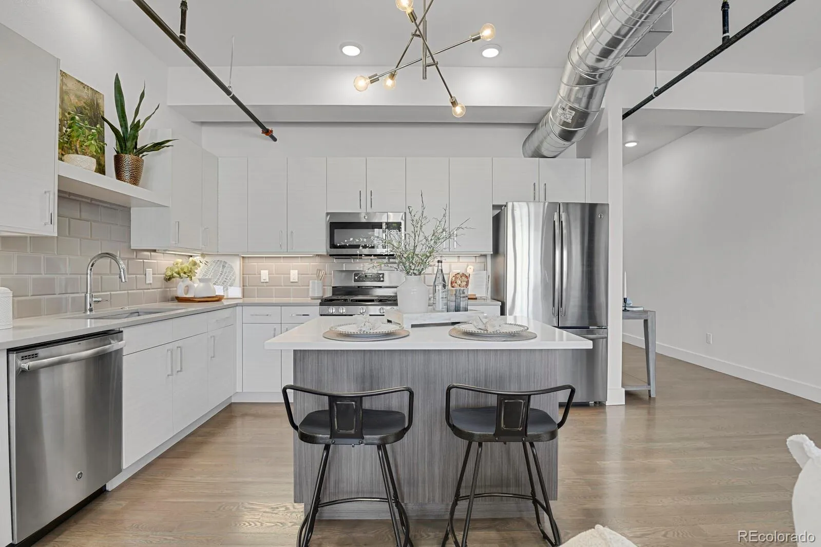 Experience loft living, ideally located across from Acacia Park in the heart of downtown Colorado Springs. Set atop the historic Colburn Motors building, this stunning loft blends modern comfort with urban character. The open floor plan showcases 10’ ceilings, exposed ductwork, and site-finished white oak hardwood flooring throughout. A sleek electric fireplace adds warmth and ambiance to the living area, while the gourmet kitchen impresses with a center island, quartz countertops, custom soft-close cabinetry, tile backsplash, and stainless steel appliances. Enjoy sunset views of the city, mountains and park from your private west-facing balcony. The spacious bedroom offers double lighted closets, wall of shelving ideal for home office space, and convenient in-unit laundry. Unwind in the luxurious bathroom featuring a quartz-topped vanity, tile flooring, and 6’ full wall tiled shower with frameless glass. Additional important features include elevator access, secure access to the building, a deeded parking space in adjacent secure garage, on-site private storage, and ALL utilities are included in HOA dues. Step outside your door to enjoy restaurants, coffee shops, galleries, and downtown events—all just steps away. Urban living at its finest!