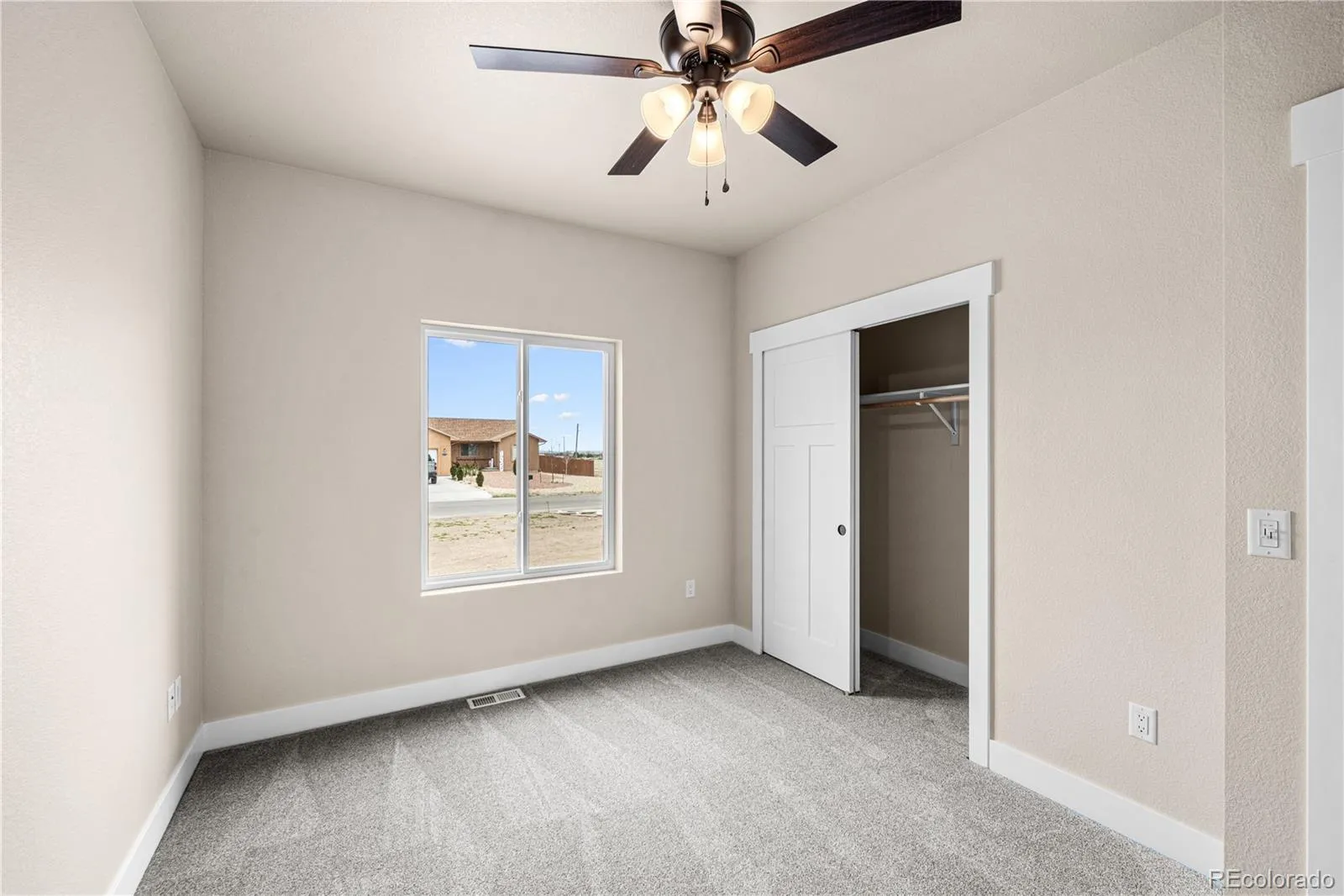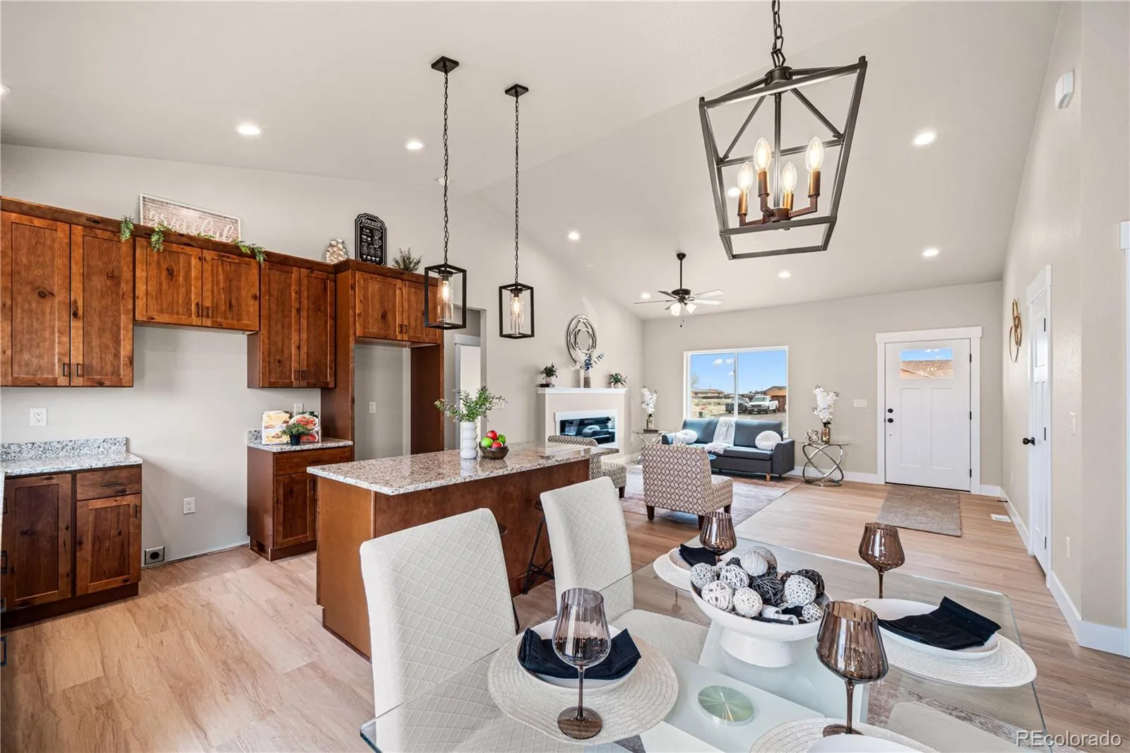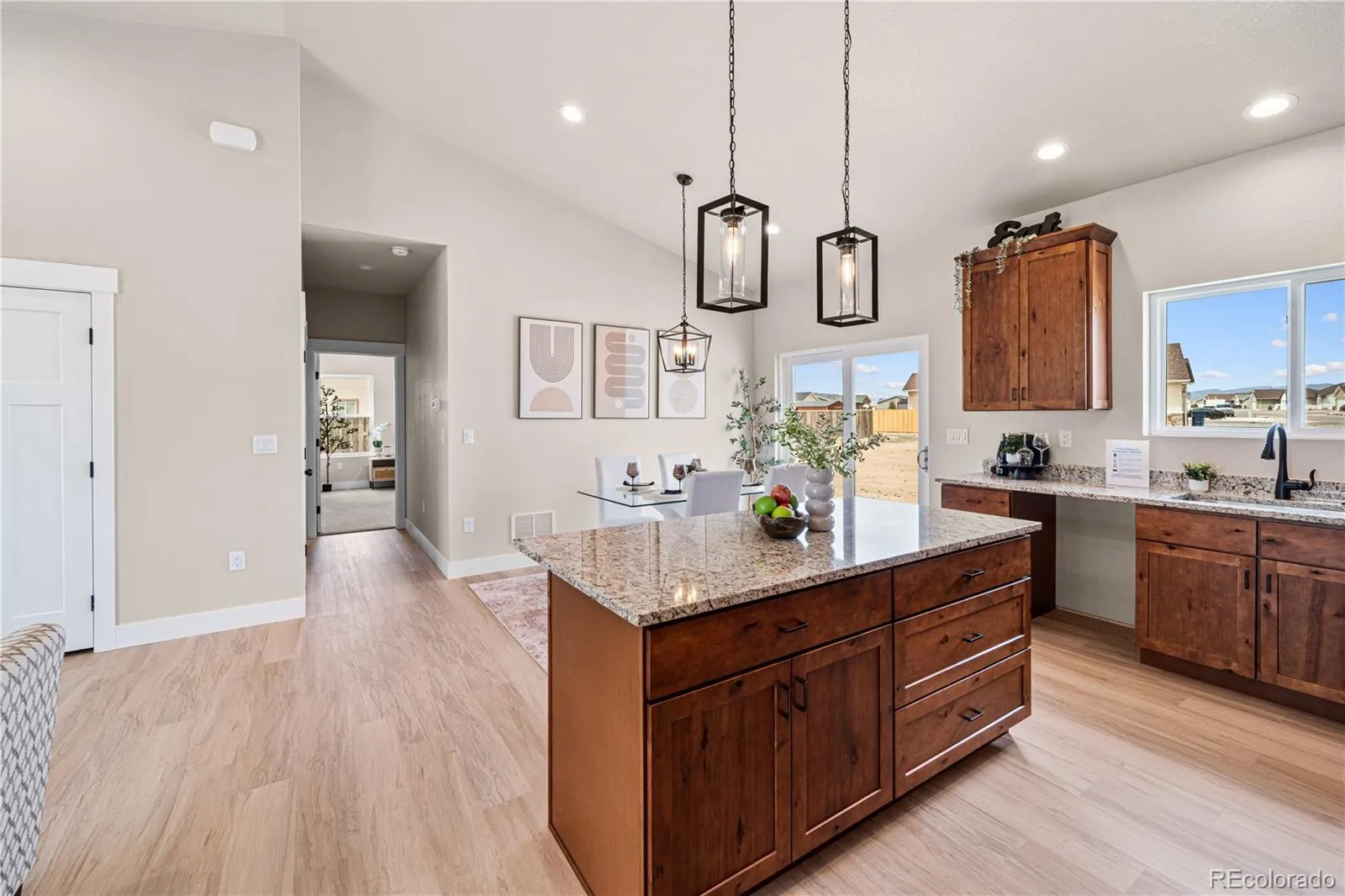 New, quality construction with all of the bells and whistles! Great one-level living with contemporary styling and low-maintenance features. 3 bedrooms, 2 baths and an attached 3-car garage make this home ideal for everyone! The delightful kitchen features recessed lighting, granite counter tops and an island. The primary suite includes an adjoining bathroom and includes an ample walk-in closet. Added bonus? Large opened rear patio to enjoy all the good Colorado climate affords. Warm tones. Home is completed.