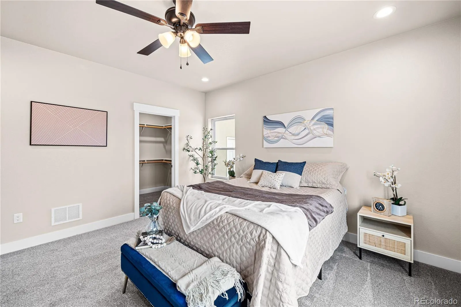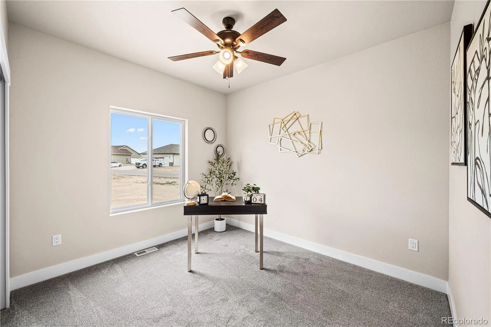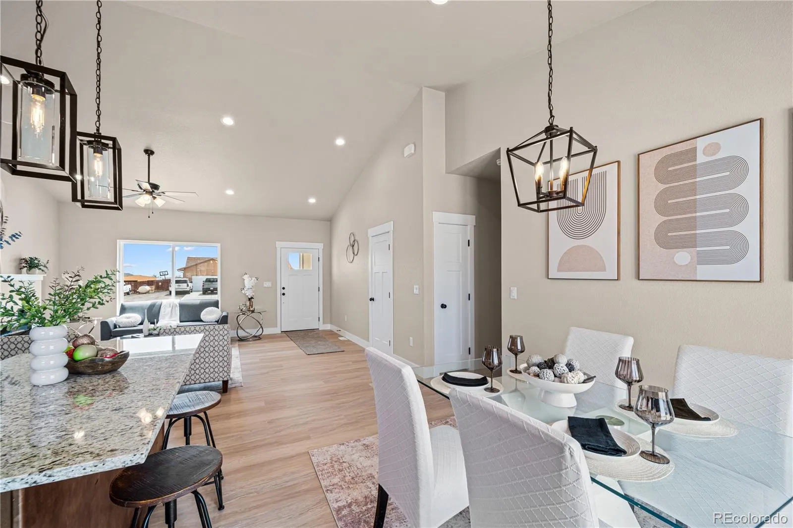 New, quality construction with all of the bells and whistles! Great one-level living with contemporary styling and low-maintenance features. 3 bedrooms, 2 baths and an attached 3-car garage make this home ideal for everyone! The delightful kitchen features recessed lighting, granite counter tops and an island. The primary suite includes an adjoining bathroom and includes an ample walk-in closet. Added bonus? Large opened rear patio to enjoy all the good Colorado climate affords. Warm tones. Home is completed.