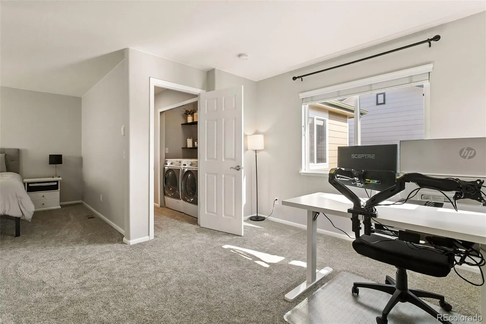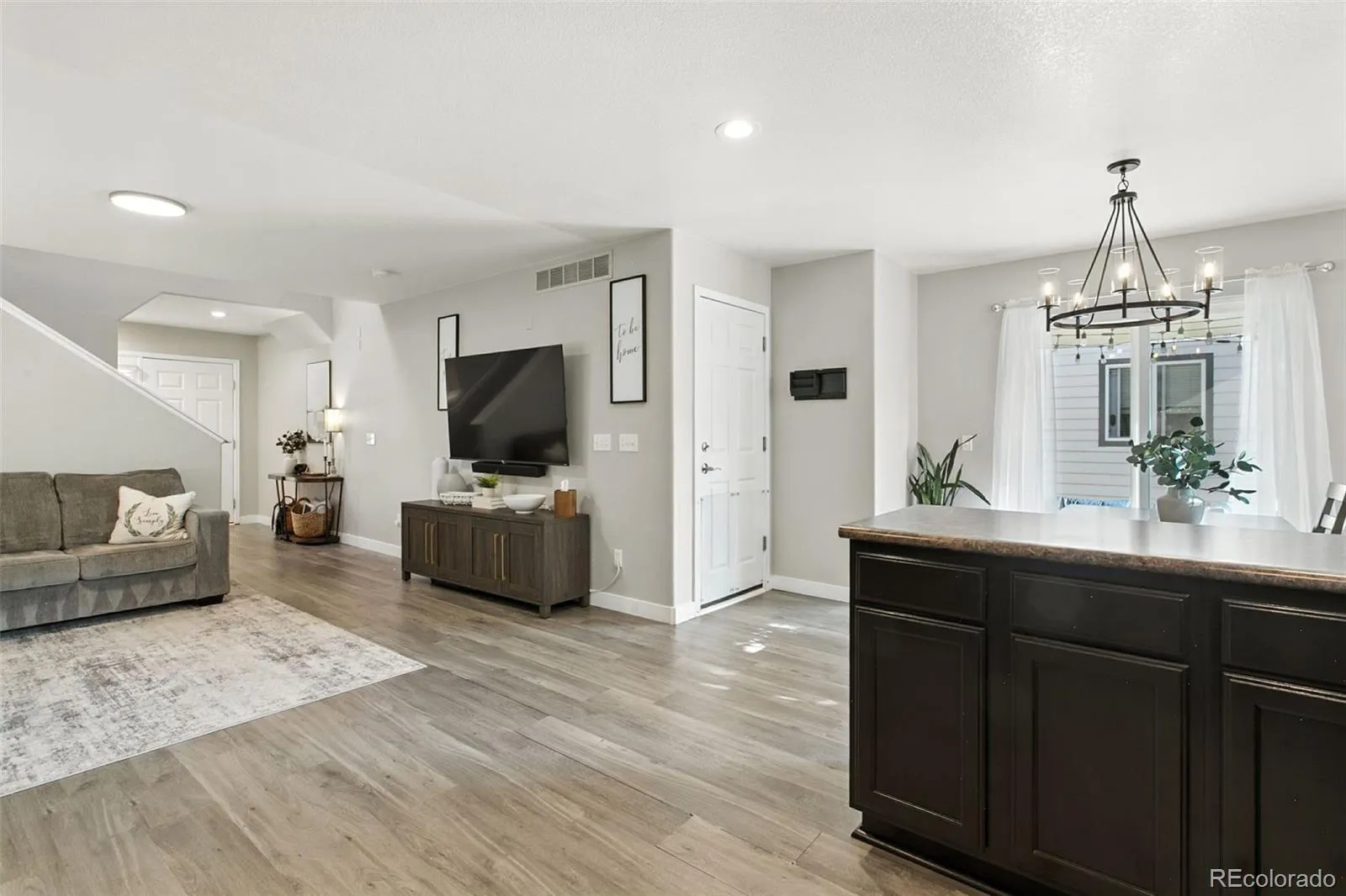 Welcome to this beautifully updated 3-bedroom, 3-bath, 2-car garage single-family home, ideally located in the desirable neighborhood of Wildwood at Northgate. The front yard is tastefully landscaped with stone-trimmed landscape beds and a welcoming covered porch—perfect for enjoying Colorado’s fresh air. Inside, you will find fresh paint throughout, luxury vinyl flooring and brand-new carpet with upgraded pad. All can lights in the home have been upgraded to energy-efficient LEDs, creating a bright and modern feel. The kitchen features a new microwave, a single-bowl stainless steel sink with a built-in glass rinser, plenty of countertop space and stylish finishes. The dining area is conveniently located with direct access to the covered outdoor patio. A convenient main-level powder bath includes vanity storage. Upstairs, the generous primary suite offers ample space for an office, nursery, or exercise area and includes an attached master bath with a contemporary wood vanity and generous storage. Two additional bedrooms—one with stunning Pikes Peak views—share a full bath with vanity storage. The laundry is conveniently located in the upper level, near the bedrooms, and the sellers are including the washer and dryer. Additional updates include new bathroom fixtures, water heater, furnace, and AC for worry-free, comfortable living. The covered back patio, complete with a mounted TV, is perfect for relaxing or entertaining. With HOA services covering landscaping, snow removal, and trash, this home offers low-maintenance living in a fantastic location near shopping, dining, and highly desired schools.