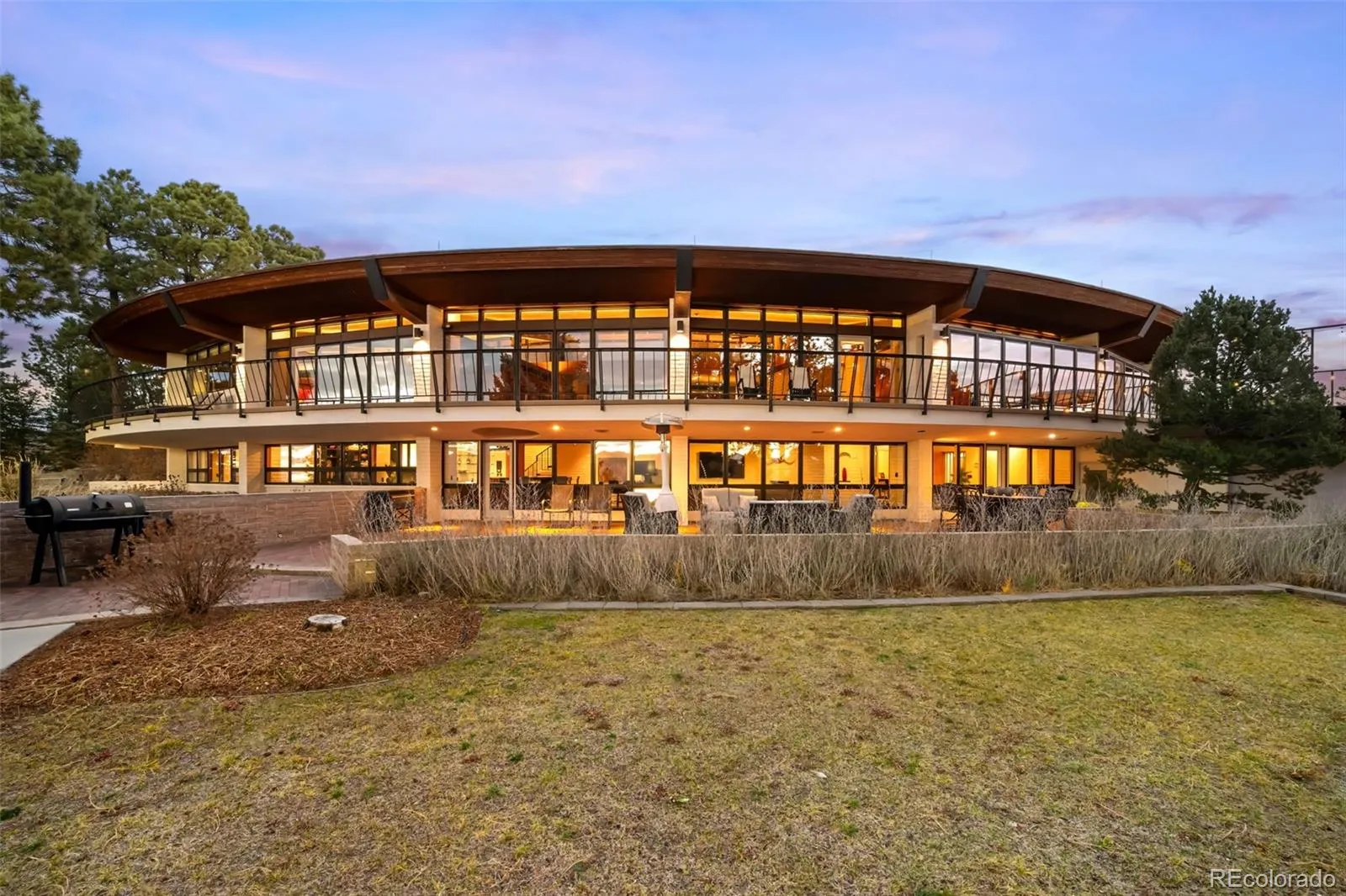 Ventanas – A Modernist Masterpiece Rare midcentury innovation and remote sophistication high atop the city on nearly 10 gated acres in Black Forest. The final work of visionary architect, Walter S. White, Ventanas features patented rotating windows designed to regulate temperature through passive solar gain, a dramatic hyperbolic-paraboloid roof, and a sweeping quarter-circle design framing 200-mile views of Pikes Peak, the Front Range, Air Force Academy and Spanish Peaks. Built of steel, concrete, stone and thoughtfully curated finishes like moving hand-carved panel walls, custom slate floors and 5 fireplaces, lends warmth to the sleek modernism. An open gourmet kitchen, designed by William Ohs, with Sub-Zero/Wolf/Gaggenau appliances, Marinace fossil stone granite countertops, hearth room and sweeping views is an entertainers dream. Discover the hidden wine cellar, wet bar, gym, sauna and multiple gathering spaces this spacious home has to offer. The property boasts a glass-walled cabin retreat and many special outdoor living spaces. 3,000+ SF of decks and patios, regulation tennis court, putting green with sand trap, and 720 SF shop/storage shed. A blending of art, strength, and resort-style living, Ventanas is a storied piece of architectural history and has been featured in books, articles and architectural exhibits across America. Best described as “A Fortress of Art and Light”.