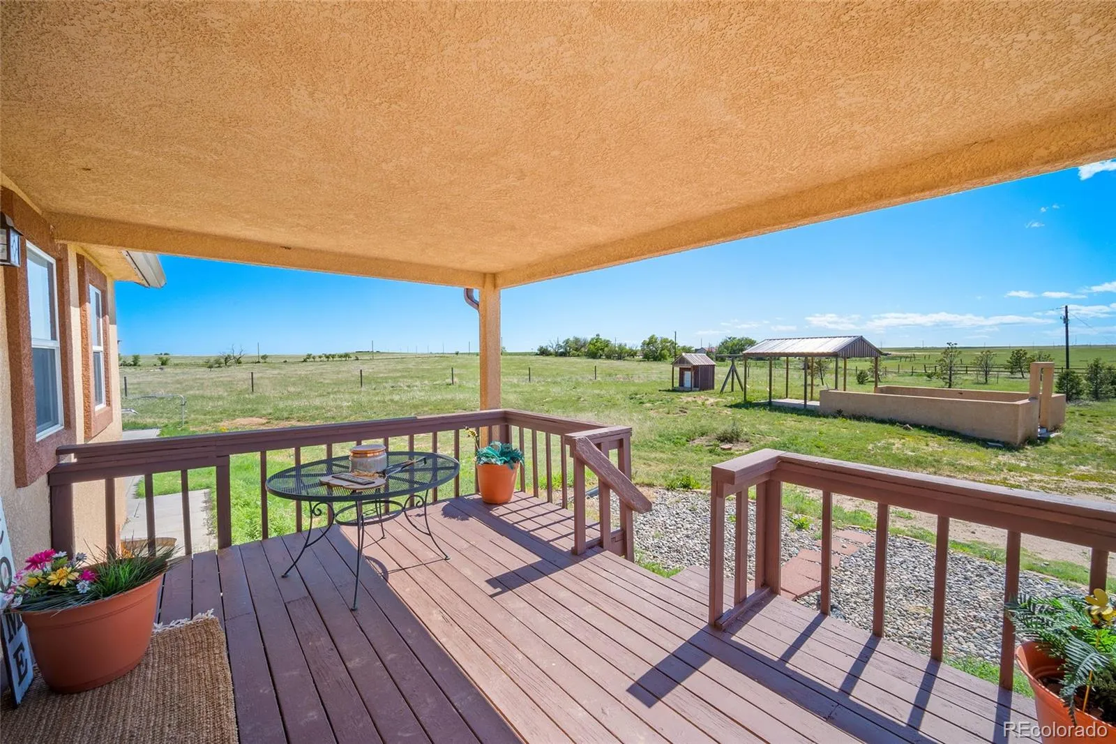 Located just outside the small town of Rush,this 35-acre property offers a peaceful and private retreat with wide-open spaces and breathtaking views of the surrounding countryside. The ranch home is stucco with a full basement attached two car garage and features five bedrooms, three bathrooms, and a spacious, functional floor plan that includes a dedicated room perfect for a home office—as well as a bonus room ideal for crafts or hobbies. Natural light fills the living areas, and the kitchen is outfitted with tile granite countertops, a stainless steel appliances, combining modern convenience with classic country charm. The master bedroom offers new engineered wood flooring and fresh paint. There are so many awesome features to this beautiful home it is a custom one of a kind. The land is Ideal for equestrian or agricultural there are endless ways to utilize this gorgeous property. This property includes four outbuildings, all equipped with electricity, offering versatile options for storage, workshops, a business or hobby projects. The large barn is heated, includes 220v power, and features high garage doors with ample space. The property also includes two separate septic systems, This property is fenced except one side. The bunk house offers so many possibilities for use. The other three out buildings are large. There is one large building that can easily be converted as a horse barn as it has dirt floors. There is a new concrete slab, in addition a new deck off the kitchen. This home has been well cared for and nicely maintained. This home is nestled in Rush with easy access to the Springs. There is also a chicken coop. This property will not disappoint. Whether you’re enjoying the open skies or working the land, there’s plenty of room to make this space your own. Conveniently located near Highway 94 and just a short drive to Colorado Springs, it offers the best of country living with easy access to city amenities. Lower level walk-out. Come take a tour!