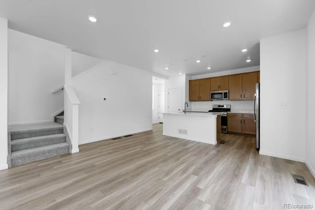 New Construction – Ready Now! Built by America’s Most Trusted Homebuilder. Welcome to the Aurora at 1177 Prospect Aly in Farmlore. This fan-favorite floorplan features an open-concept kitchen, dining, and gathering space with a large island and cozy patio for easy indoor-outdoor living. Upstairs, the private primary suite is joined by three bedrooms with spacious closets, a second full bath with a water closet, and convenient laundry. The layout is ideal for families or guests who need room to spread out. Located in Farmlore, a vibrant Brighton community with parks, trails, and a future rec center in a restored farmhouse, this home blends suburban charm with everyday convenience. Enjoy walkable streets, access to Prairie Lakes and Barr Lake State Park, and top-rated schools in the Brighton 27J District. Additional highlights include: patio, additional sink at secondary bath, private yard on an end lot. MLS#8925015