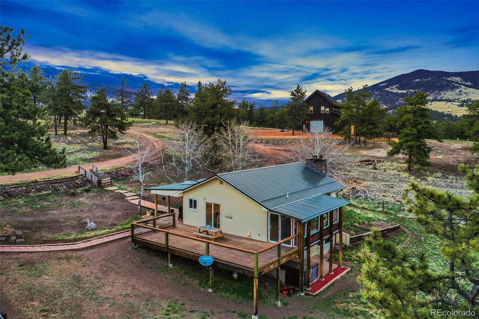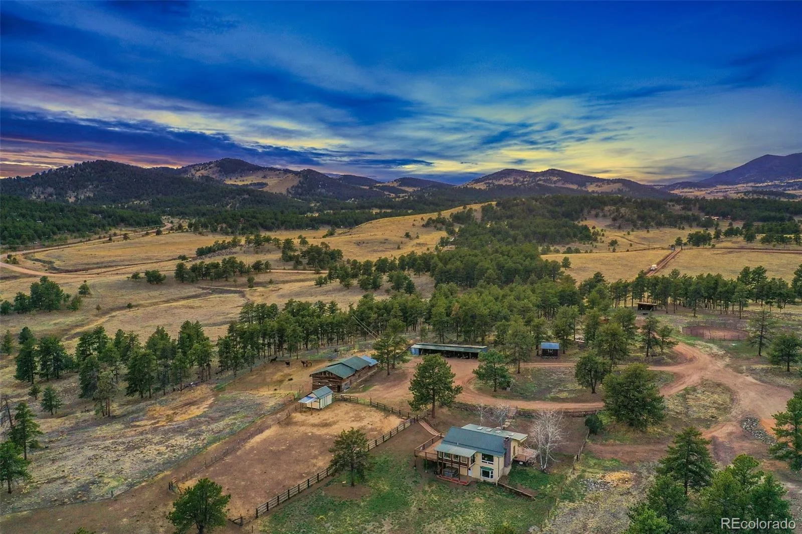 Iconic Rocky Mountain Ranch with Dual Homes, Panoramic Views, and Income Potential! Experience the best of Colorado mountain living on this remarkable ranch property featuring two beautiful homes, 270° panoramic views, and endless versatility—perfect for multi-generational living, equestrian use, or income-producing potential. The newer home, completed in 2022, was designed to take full advantage of the surrounding scenery with vaulted ceilings, warm wood accents, and expansive windows that frame mountains and rolling ranchland vistas. Offering 2 bedrooms, 2 bathrooms, and 2,148 square feet, this home exudes mountain elegance with a massive oversized garage below that doubles as flexible living or recreation space. Attached horse runs make it ideal for equestrian use or as a unique short-term rental experience for guests seeking an authentic Colorado stay. The original 1981 home adds to the property’s flexibility with 3 bedrooms, 2 bathrooms, and 1,926 square feet of comfortable living space. A wraparound deck and covered front porch invite you to take in the crisp mountain air and dramatic views. Set on usable ranch land, the property is fully equipped for livestock with cross fencing, a barn, and multiple outbuildings. Easily reachable year-round while offering a private, peaceful setting. Currently used as a successful short-term rental and horse ranch, this property presents a rare combination of lifestyle and income opportunity. Whether you’re seeking a luxury mountain retreat, a working ranch, or a multi-home estate that can generate passive income, this property delivers! Located near Eleven Mile and Spinney Reservoirs, Cripple Creek, and the scenic Gold Belt Byway. This ranch is more than a property—it’s a destination. A true reflection of the Rocky Mountain spirit, where wide-open views, quality craftsmanship, and unmatched versatility come together in one exceptional ranch.