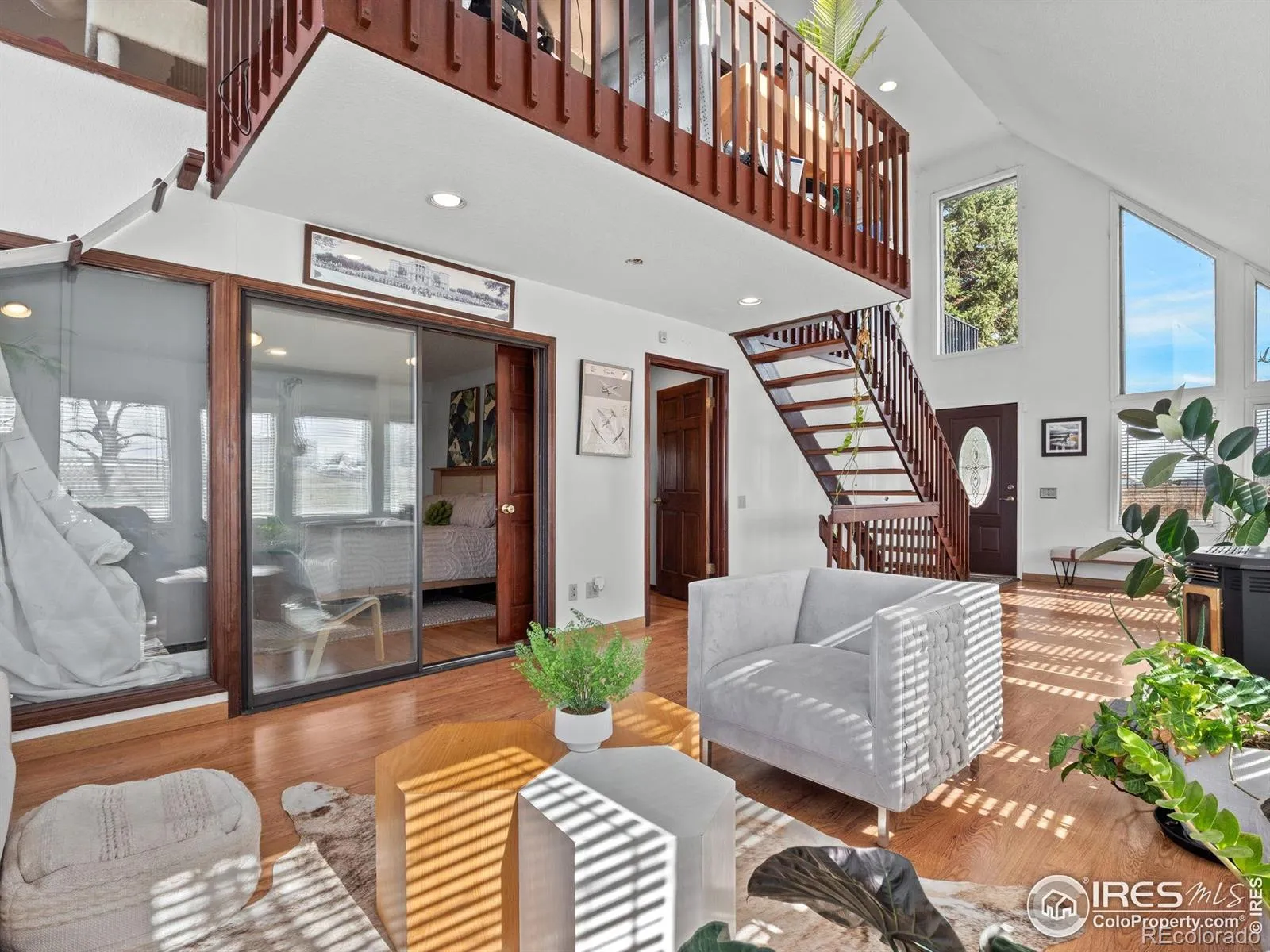 Big front range views, land to sprawl out AND located in a PRIVATE AIRPARK, this home is waiting for it’s next aviation enthusiast, hobbyist or anyone who is looking for an incredible and peaceful location. Sitting on over 2.5 acres, there is plenty of room to build a private hangar OR rent one nearby from a community member. Bring your plane right to the property via taxiway and it can be tied down to a recently added pad. This laid back community airpark has a 4200′ main runway to the North of the home with pilot operated lighting as well as available fuel. Need room for toys or animals as well? A large barn provides for great additional storage, parking or a place for your animals to call home. Oozing with mid mod vibes, this homes unique reverse floorplan puts the incredible views on full elevated display with soaring vaulted ceilings to wow your guests. A sunny flex living space invites you to relax or grow all your favorite house plants year round. Enjoy your morning coffee out on the new deck with retractable electric awning. Find hardwood floors throughout and several fireplaces to get cozy in the winter months. The solar heating system offers low utility costs and a newer roof provides peace of mind. Located just minutes from downtown Erie’s hip bustling shops, restaurants, breweries, parks, summer farmers market & town events. This unique neighborhood also hosts fun experiences such as chili cook offs & aviation events. Come and take a look at the endless possibilities of this beautiful property!