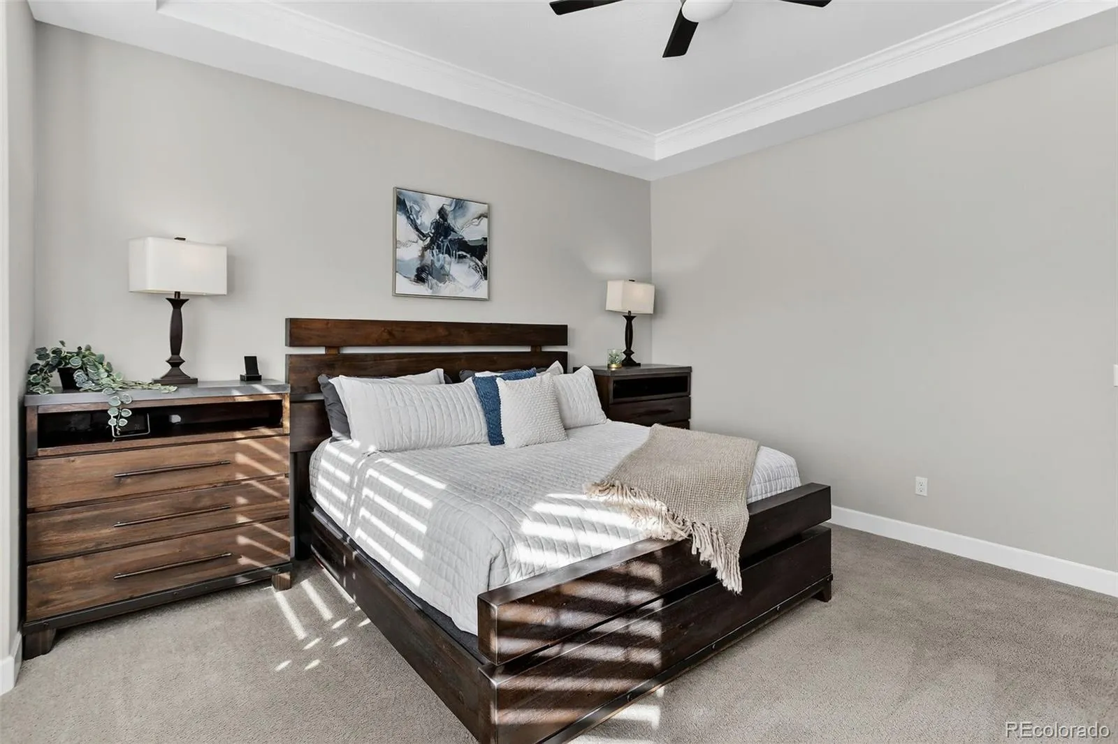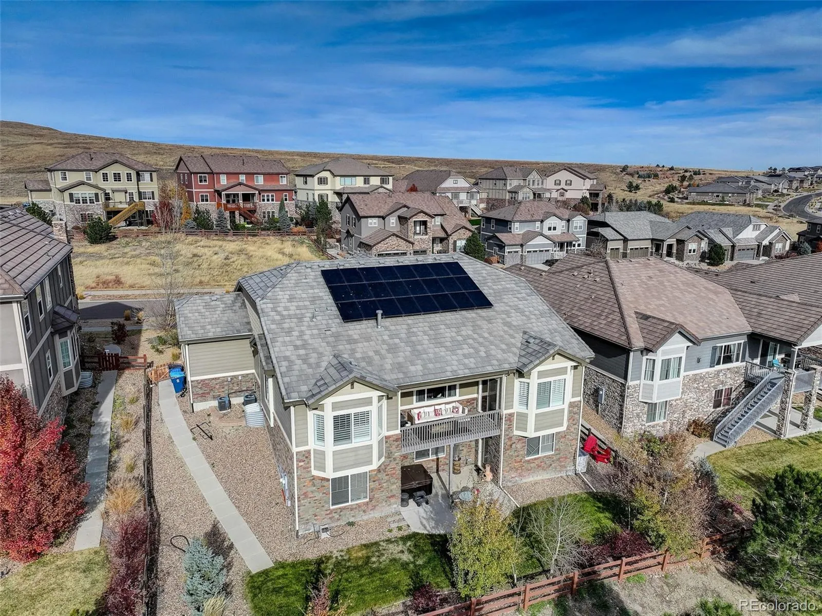 Outside, enjoy a peaceful setting backing to open space, mature landscaping, and a covered outdoor living area. A 24-panel, 5.5 kW owned solar system keeps utility costs low. Three-car garage and access to Candelas amenities including pools, fitness centers, trails, and parks.