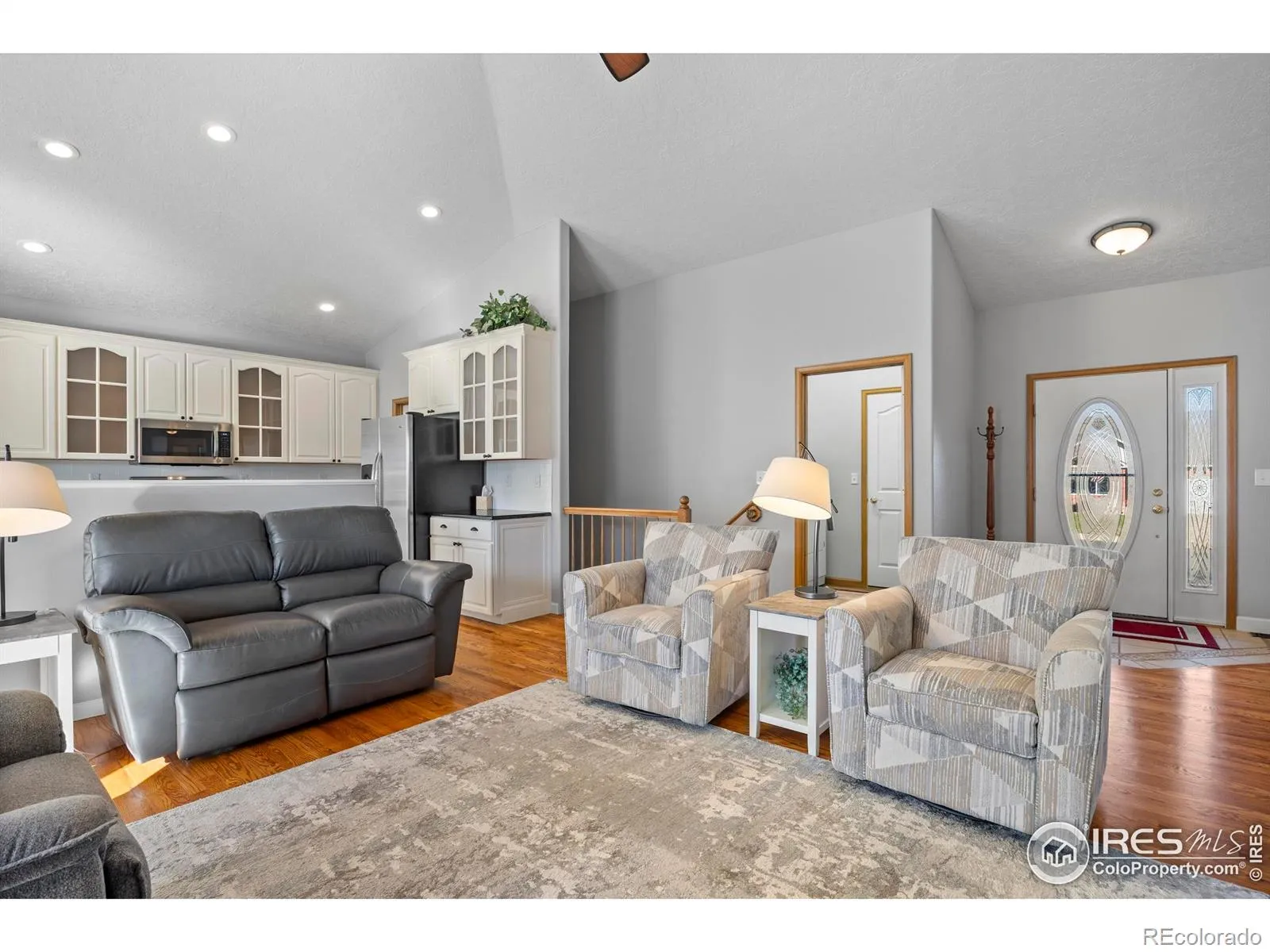 Beautiful ranch-style patio home in west Greeley with an open floor plan and low-maintenance living with abundant natural light throughout. This 5-bedroom open floor plan home features oak hardwood floors on the main level, a spacious living area with a gas fireplace, a kitchen featuring stainless steel appliances and a walk-in pantry, a main-floor primary suite with a large walk-in closet and 5-piece bath. The primary suite offers a peaceful retreat with a large walk-in closet and a luxurious 5-piece bathroom. Two additional main-floor bedrooms provide flexibility, with the third bedroom easily functioning as a private study or home office. The finished basement includes a large rec room with a wet bar, 2 bedrooms, and a 3/4 bath. Forced air heat and central A/C. A heated oversized 2-car garage. Enjoy low-maintenance living with an HOA that covers lawn care, snow removal, and trash service. This bright and inviting home is move-in ready and perfectly designed for easy living.