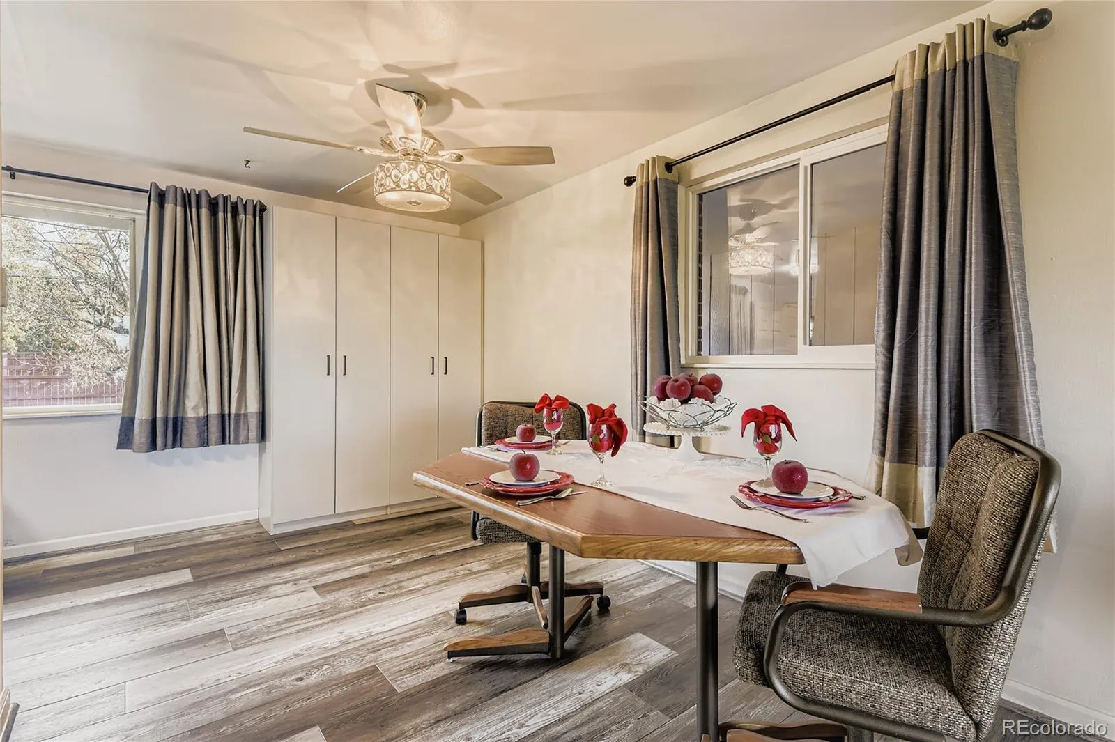 All the following are new: New water heater/furnace (2023), carpet/flooring, baseboard trim, closet organizer in primary bedroom. The new main entry door is pristine with decorative stained glass and the additional front entry door provides fresh air and natural light for the entryway and energy cost savings. A new storm door in back was installed as well. A new sprinkler system front/back yard is installed ready for the spring. Centennial Lake/Park is nearby with a 1.2 mile walking path, fishing, biking trails, and other activities. The large fenced in backyard has its own oasis with a large covered patio providing additional privileges to welcome guests/family over for festivities both day and night.