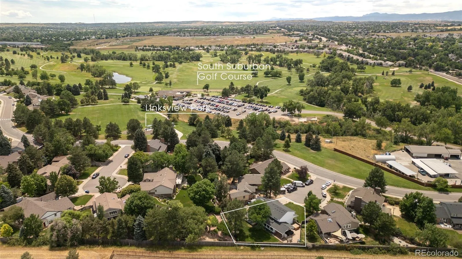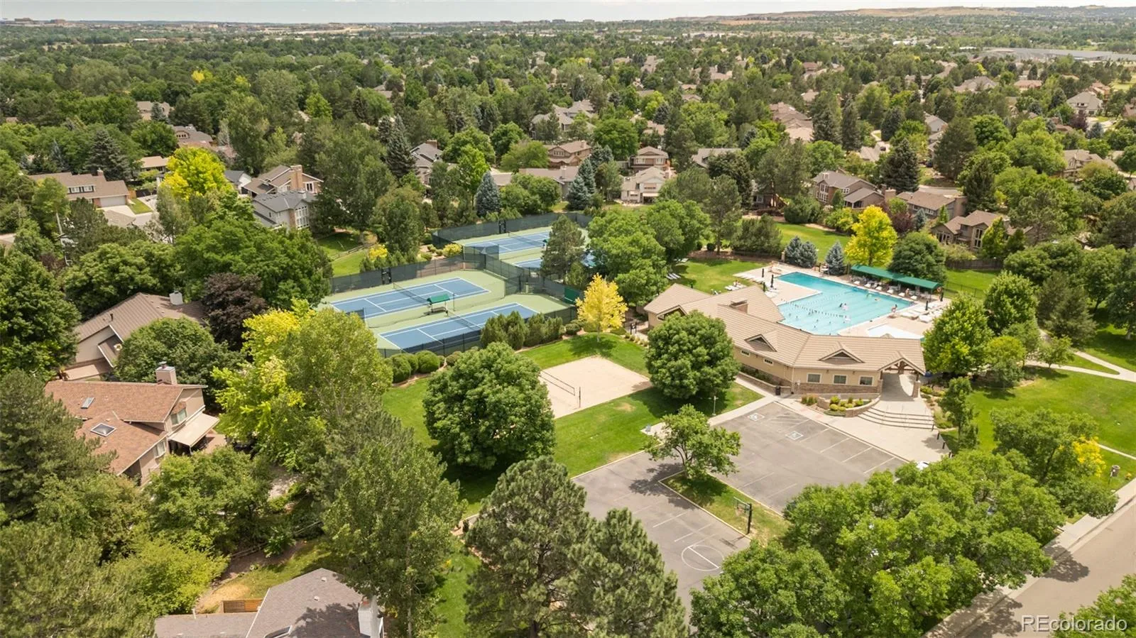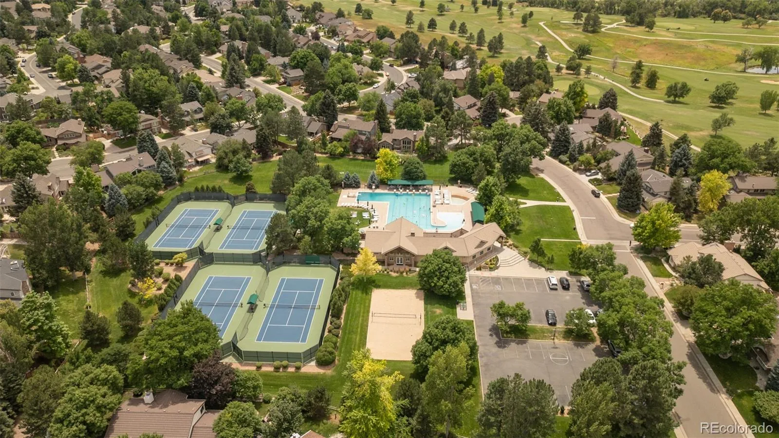 Perfectly poised across from the golf course in Heritage Greens, this exceptional home offers elegance, comfort and high-end amenities in a coveted Centennial community. Set on a private lot backing to serene open space, the newly finished patio and lush backyard provide a peaceful retreat with sweeping mountain views. A covered front porch perfect for watching our gorgeous Colorado sunsets welcomes residents into a bright and airy interior featuring a formal living room with dramatic floor-to-ceiling windows, a stylish dining room and a large kitchen with all-white cabinetry and a sunny breakfast nook. Beyond the breakfast nook is a light-filled flex space with endless possibilities, perfect for a quiet conversation space, additional dining space, creative art space, or game room. The vaulted great room impresses with a cozy fireplace, wet bar and seamless indoor-outdoor flow to the backyard. French doors open to a home office with built-ins, while the upper-level primary suite boasts vaulted ceilings and a spa-like bath with a soaking tub and a walk-in shower. With a finished basement rec room, freshly painted exterior and access to a community pool, tennis courts, sand volleyball court and parks, this home defines elevated living.