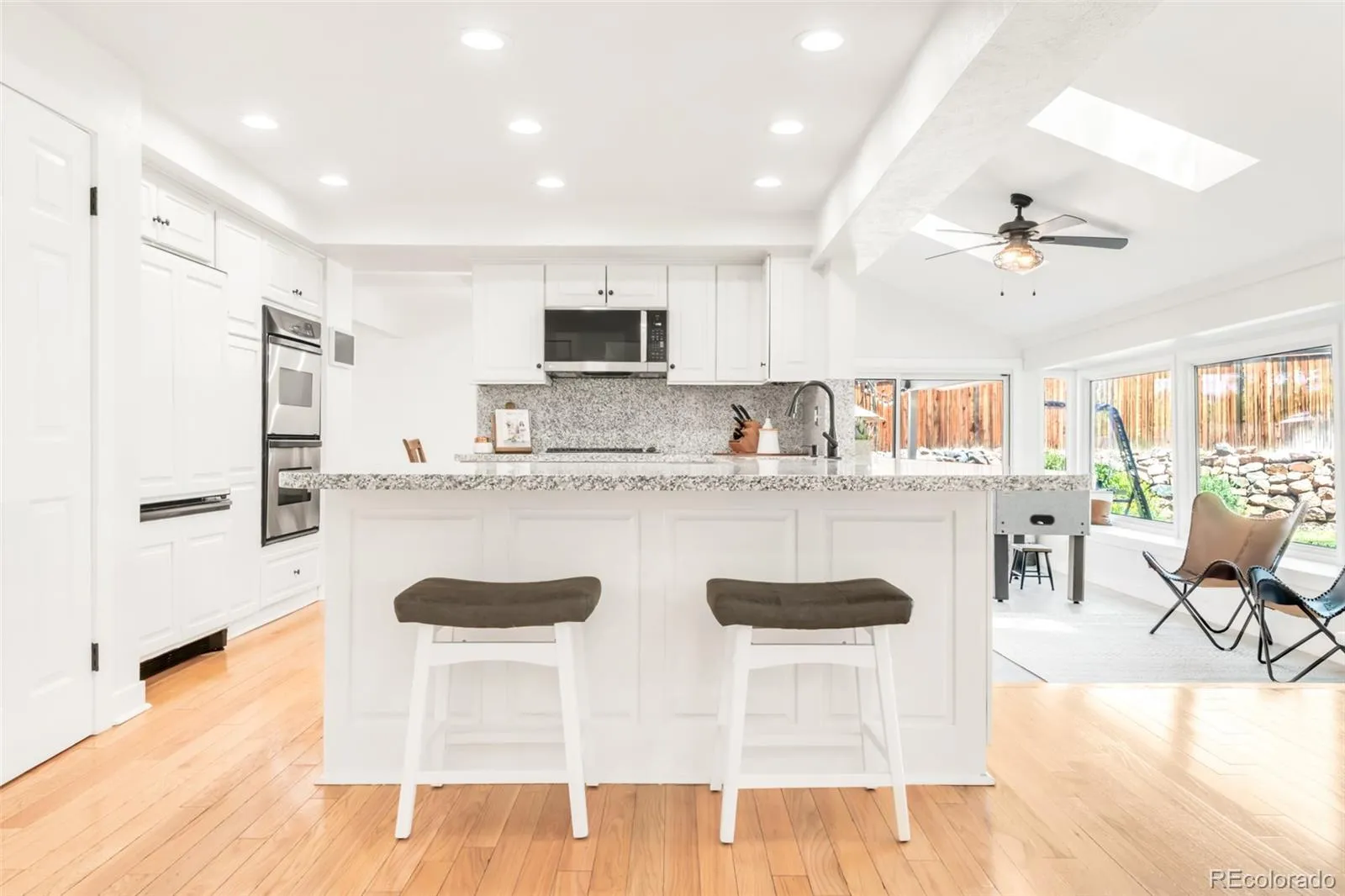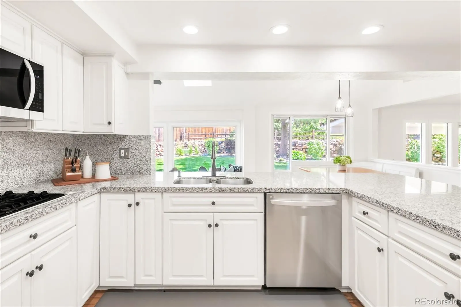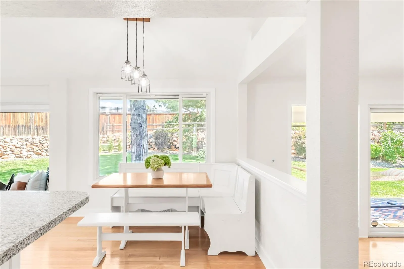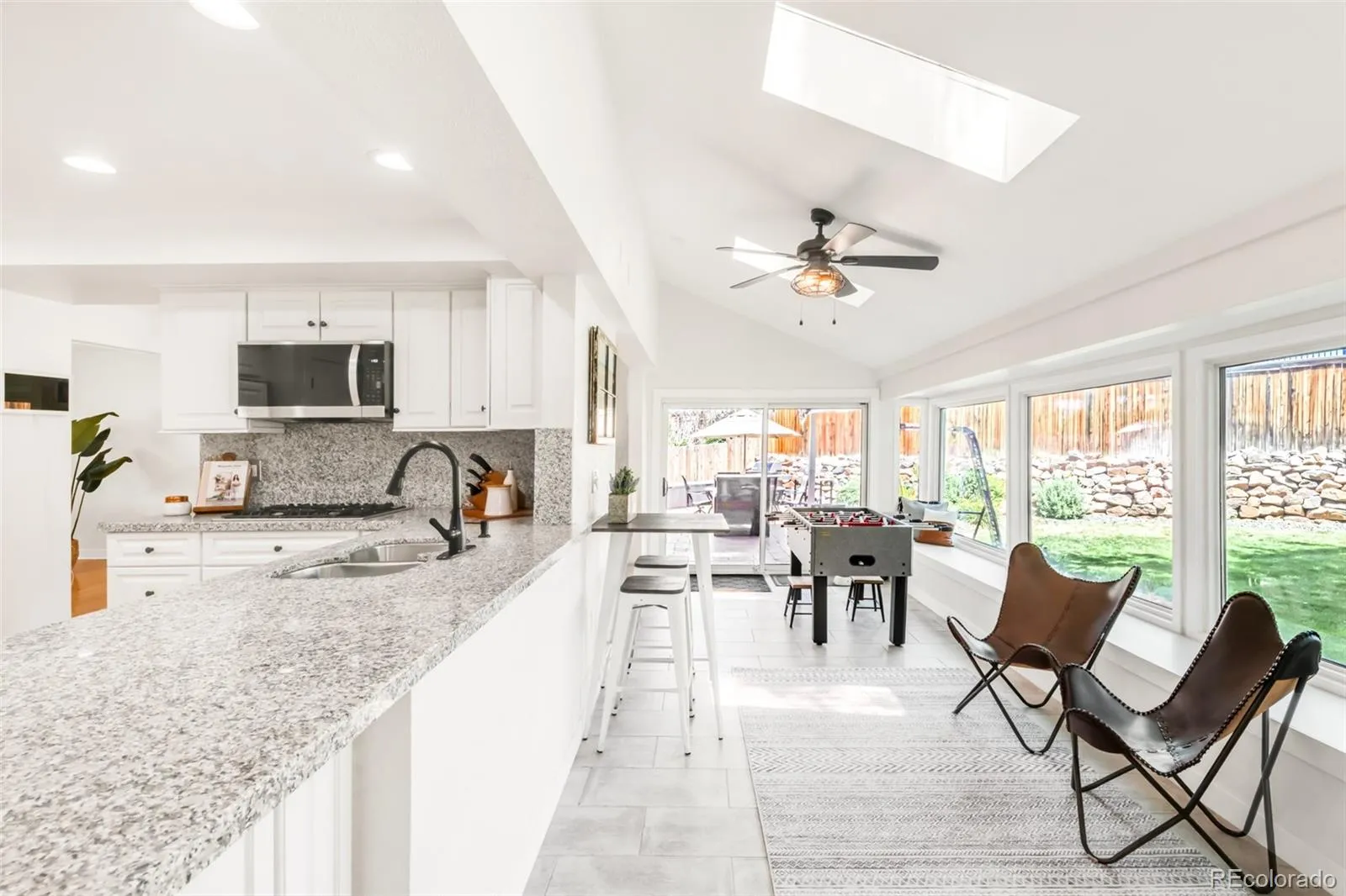 Perfectly poised across from the golf course in Heritage Greens, this exceptional home offers elegance, comfort and high-end amenities in a coveted Centennial community. Set on a private lot backing to serene open space, the newly finished patio and lush backyard provide a peaceful retreat with sweeping mountain views. A covered front porch perfect for watching our gorgeous Colorado sunsets welcomes residents into a bright and airy interior featuring a formal living room with dramatic floor-to-ceiling windows, a stylish dining room and a large kitchen with all-white cabinetry and a sunny breakfast nook. Beyond the breakfast nook is a light-filled flex space with endless possibilities, perfect for a quiet conversation space, additional dining space, creative art space, or game room. The vaulted great room impresses with a cozy fireplace, wet bar and seamless indoor-outdoor flow to the backyard. French doors open to a home office with built-ins, while the upper-level primary suite boasts vaulted ceilings and a spa-like bath with a soaking tub and a walk-in shower. With a finished basement rec room, freshly painted exterior and access to a community pool, tennis courts, sand volleyball court and parks, this home defines elevated living.