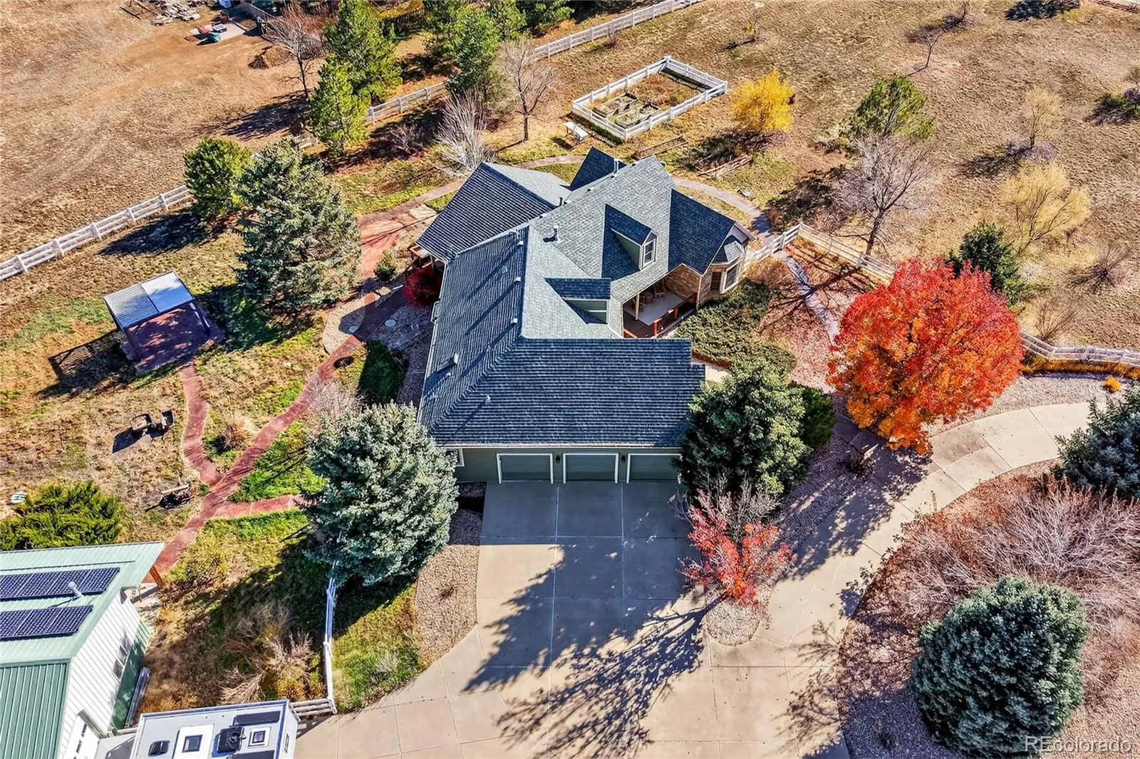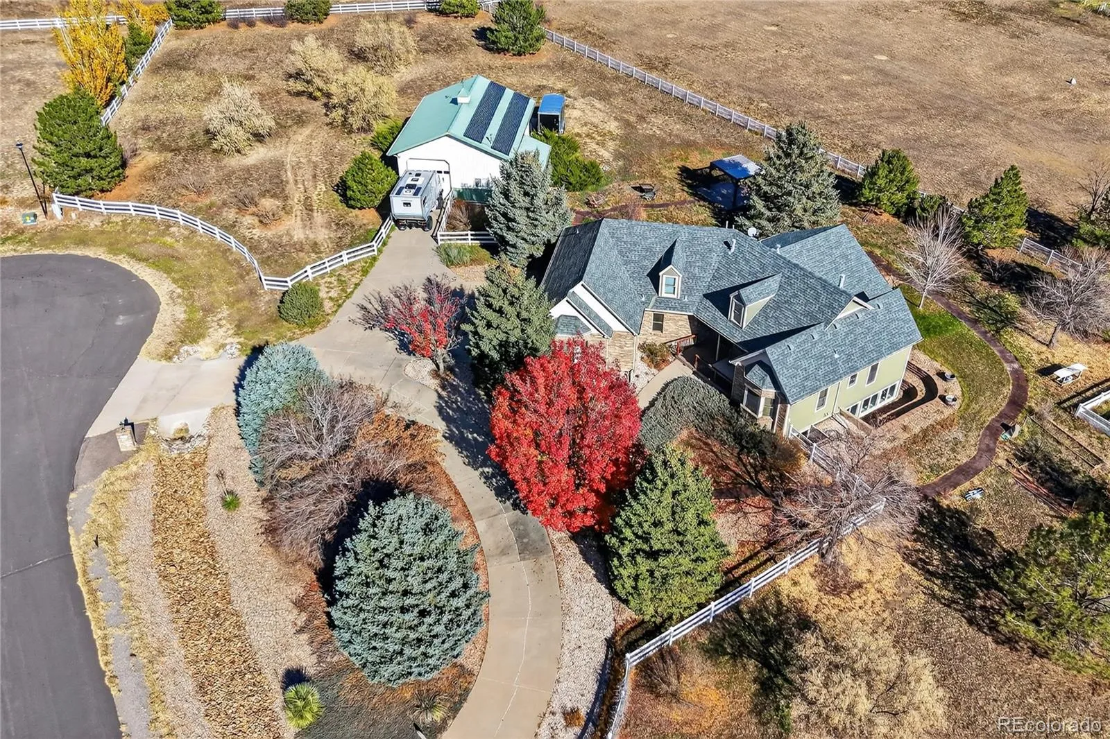 Fully remodeled and perfectly appointed, this stunning custom ranch with impressive detached workshop, delivers the ideal combination of luxury, comfort, and country tranquility—all just minutes from Brighton amenities and major commuter routes. Nestled on over two acres in a quiet cul-de-sac, this home offers an impressive array of upgrades inside and out. The open-concept floor plan showcases beautiful hickory hardwood floors, a chef’s kitchen with granite countertops, custom cabinetry, double ovens, and a breakfast bar. A fully retractable sliding patio door connects the great room to a covered Trex deck with a gas line for grilling, creating effortless indoor-outdoor living. The spacious primary suite is a private retreat featuring heated bathroom floors and dual walk-in closets. Downstairs, the finished basement provides flexible living space—ideal for entertaining, a home office, or multigenerational living—with a large family room, bedroom, and full bath. A car enthusiast’s dream, the three-car attached garage complements the 30×40-foot heated and insulated workshop, complete with oversized doors and a private toilet—perfect for storage, hobbies, or small business use. Solar panels in the workshop help keep energy costs low. Thoughtful updates throughout include a newer roof, owned solar system, Lennox furnace, dual hot water heaters, and an AC with heating function. The landscaped yard features a circular drive, irrigated garden beds, mature trees, and zoning for up to two horses. Enjoy the peaceful rural setting while remaining close to conveniences—just 10 minutes to Prairie Center Shopping, 15 minutes to Platte Valley Medical Center, and 25 minutes to downtown Denver, with easy access to I-76, E-470, and Hwy 85. This move-in-ready property offers refined living with room to breathe—an exceptional Brighton retreat with space, style, and substance.