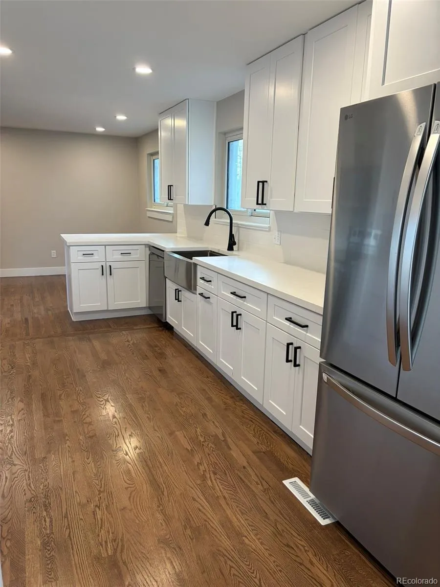 Great location in the coveted Alllendale neighborhood!!! Completely Remodeled 5-bedroom, 3-bathroom home has been meticulously updated. The new kitchen is bright with New Custom Cabinets, Quartz Counters, New Stainless Steel Appliances, Oak hardwood flooring throughout flows into the family room with the open floor plan and a cozy fireplace. The primary suite has a four-piece bath and walk in closet. The finished lower level features a large family room with bar/frig counter perfect for watching movies, games and entertaining and lots of storage. All three basement bedrooms have egress windows, new bathrooms with designer finishes, newer furnace, AC and new hot water heater offer peace of mind. Large professionally landscaped yard with patio, large storage shed, fully fenced and oversized 2 car attached garage. Stenger Sports Complex is minutes away, offering plenty of outdoor fun like hiking, biking, and picnics. Great family neighborhood close to shopping and restaurants, convenient access to the foothills and Olde Town Arvada is a short 5 minute drive. Beautiful remodel