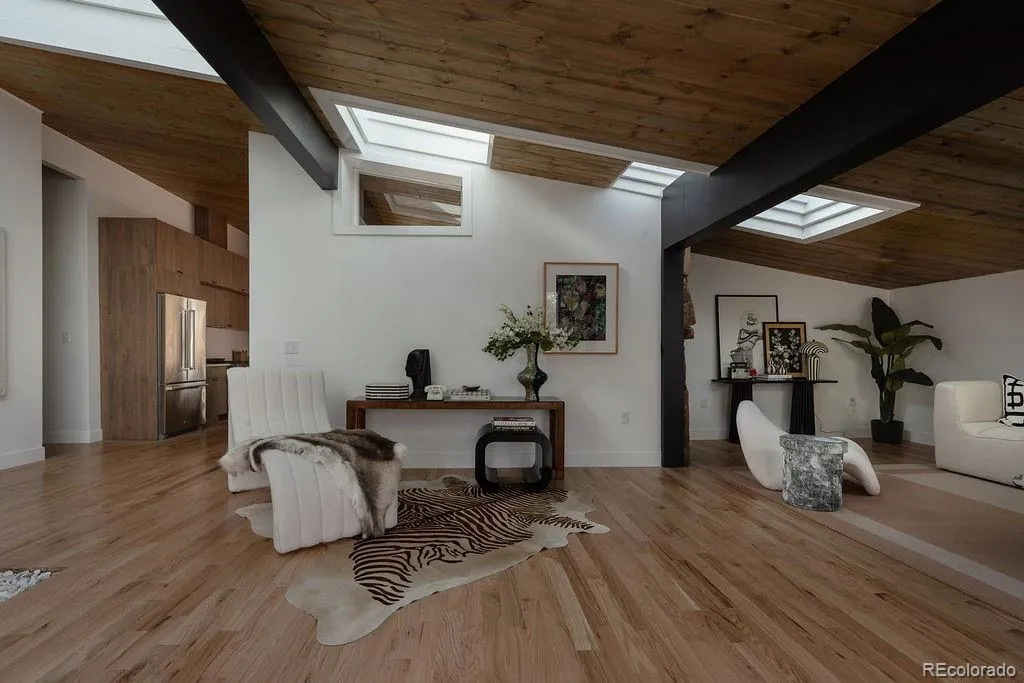 Welcome home to your Boulder oasis 10 minutes to downtown. Fully remodeled Mid Century Modern ranch. A beautiful 4 bedroom plus an office is waiting for you to bring it home for the holidays. The front living space is basking in natural light with tongue and groove vaulted ceilings, too many sky lights to count, and moss rock walls – it doesn’t get more mid century than that! Just off the front living space is a rooftop deck offering beautiful views of the sunset over Longs Peak (yes! Mountain Views!). The kitchen is not to be missed with quartz counter tops, 36″ gas range, and cabinets for days. You will love entertaining guests in your dining room over looking your nearly one acre lot, outfitted with a nano door to seamlessly blend the inside and outside. In the winter months make dinner cozy by firing up the wood burning fireplace. The rest of the main floor is dedicated to your primary suite and two guest bedrooms. The primary features double walk in closets and a period correct 4 piece primary bath. Two additional secondary bedrooms and shared hall bath round out the main floor. Heading downstairs to the basement you will find a huge flex space, big enough for a pool table and movie set up! Get cozy in this space too with the second wood burning fireplace. One additional bedroom and one office space occupies the basement along with the 3/4 bath and dedicated laundry room.