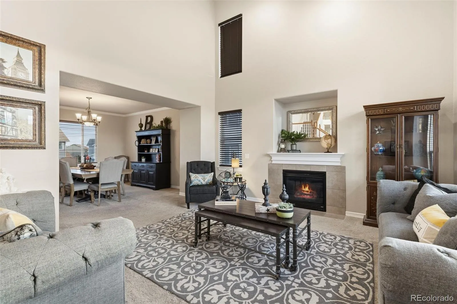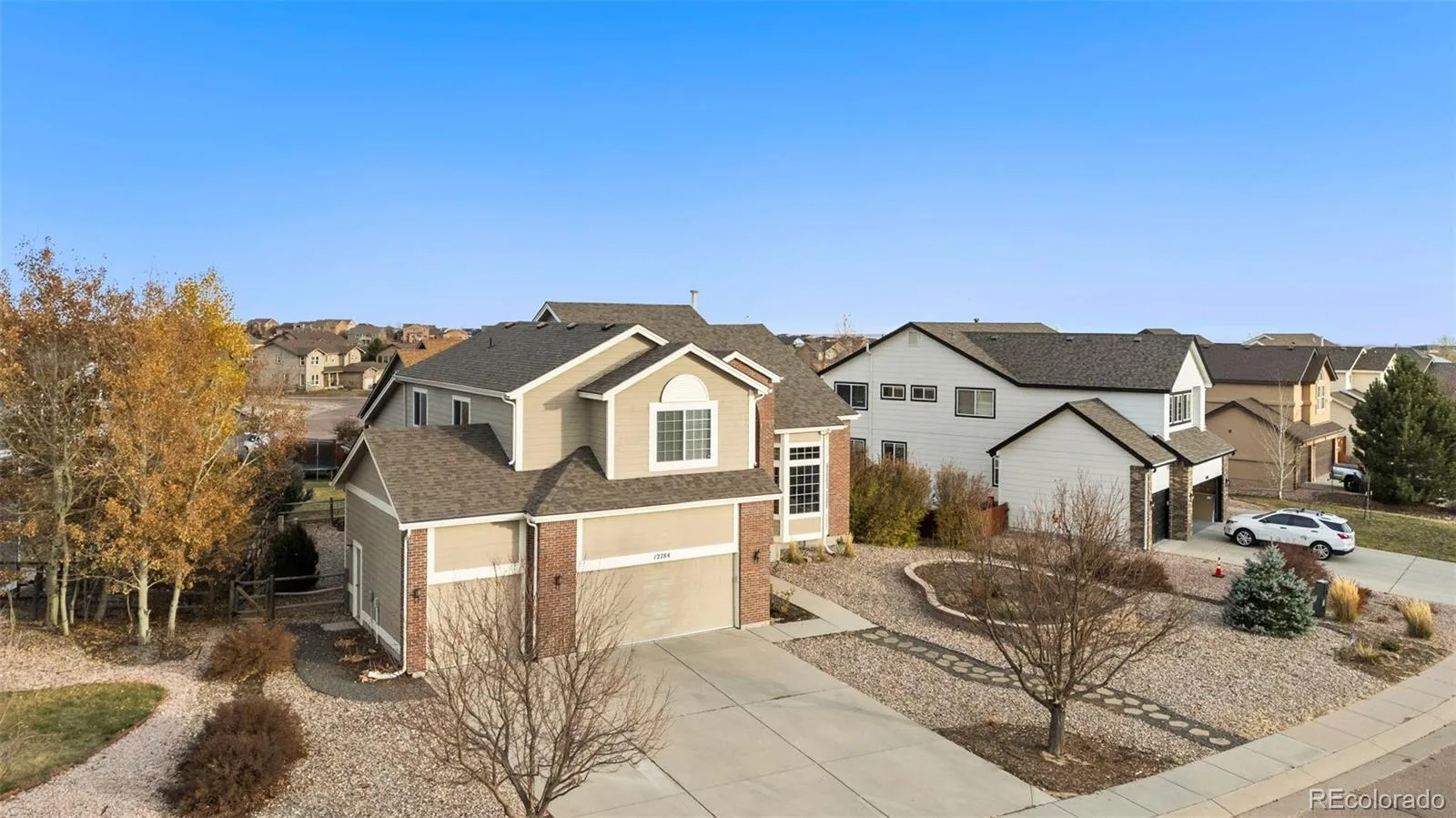 Spacious Meridian Ranch Two-Story with 5 Bedrooms, 3 Baths and 3-Car Garage! Welcome home to this beautiful and expansive two-story traditional home in Meridian Ranch offering over 4,600 total square feet, including a 3,000+ sq ft finished living area and a garden-level unfinished basement for future expansion. Designed for comfort and function, this home features five bedrooms and three full baths, including a main-level bedroom and bath—perfect for guests, home office space or multi-generational living. The grand entry opens to a formal living and dining room with soaring ceilings and a sweeping staircase. The large kitchen boasts an island with breakfast bar seating, a pantry, and an eat-in nook that flows into the spacious family room with built-ins, a cozy fireplace with new tile surround, and an 82” TV included. The main-level laundry with sink adds convenience. Upstairs, the primary suite impresses with its size, featuring a walk-in closet and a five-piece ensuite with soaking tub, separate shower, and dual vanities. Three additional bedrooms, an upper loft with storage, and another full bath with double sinks complete the upper level. Set on a nearly quarter-acre level lot, the fenced and landscaped yard offers plenty of space to relax or play. Recent updates include a new roof, new Anderson front door and rear sliding doors, Eco-B smart thermostat, and a Ring alarm system with doorbell and garage camera. Newer Washer and dryer are included. Central Vac for easy clean and Central Air to stay cool in the summer. Don’t miss the 3-car garage and level driveway – plus Pikes Peak views from the front of the home. Enjoy all that Meridian Ranch has to offer—golf, parks, playgrounds, a recreation center, and easy access to shopping, dining, and both Peterson and Schriever Air Force Bases. This home combines size, updates, and community amenities for the perfect Colorado lifestyle!