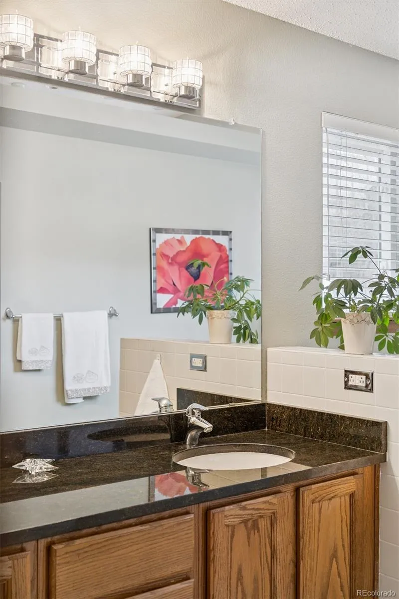 WELCOME TO A BEAUTIFULLY MAINTAINED RANCH STYLE HOME IN HIGHLANDS RANCH ON A DESIRABLE CORNER LOT ~ RARE MAIN FLOOR PRIMARY SUITE! This move-in ready home features an open concept floor plan with tall/vaulted ceilings, custom wood flooring w/ cherry inlay, double pane windows & 6-panel doors. As you step inside there is a tall foyer, ample living room with bay window & formal dining room perfect for hosting guests. The sunny eat-in kitchen has a nice window & overhead skylight, newer Stainless appliances, pantry & ample cabinet space. Adjacent is the wonderful family room boasting a 2-sided gas fireplace, built-in shelves; from here step out to the backyard & patio. You’ll love the main floor primary suite providing convenience & comfort with its tastefully appointed 5-pc bath featuring heated floors, granite dual vanity, walk-in closet. Two additional bedrooms complete the main level (one currently used as study), along with full bath & laundry. The finished basement offers flexible living space to meet your needs–rec / entertainment / workout area–plus perfect guest quarters with a bedroom & 3/4 bath. You have plenty of storage, both under-stair & crawl space for seasonal items & decorations. Enjoy Colorado living at its best in the private fenced backyard with mature trees & stamped concrete patio ideal for outdoor dining. The yard is low-maintenance fitted with rock & bushes at the perimeter; mature Ash trees grace the front yard. Improvements of note: Fresh exterior paint 2025, new furnace 2022 / AC 2020, Maytag stove, KitchenAid refrigerator 2025. Enjoy a convenient location just one mile to Westridge Rec Center & King Soopers, close to walking paths, parks & top-rated Douglas County schools. HOA fees include access to all 4 HRCA rec centers, and the new Highlands Ranch Metro District Senior Center offers classes & events. Make this outstanding home yours!