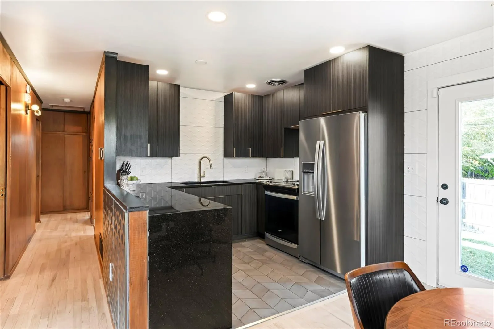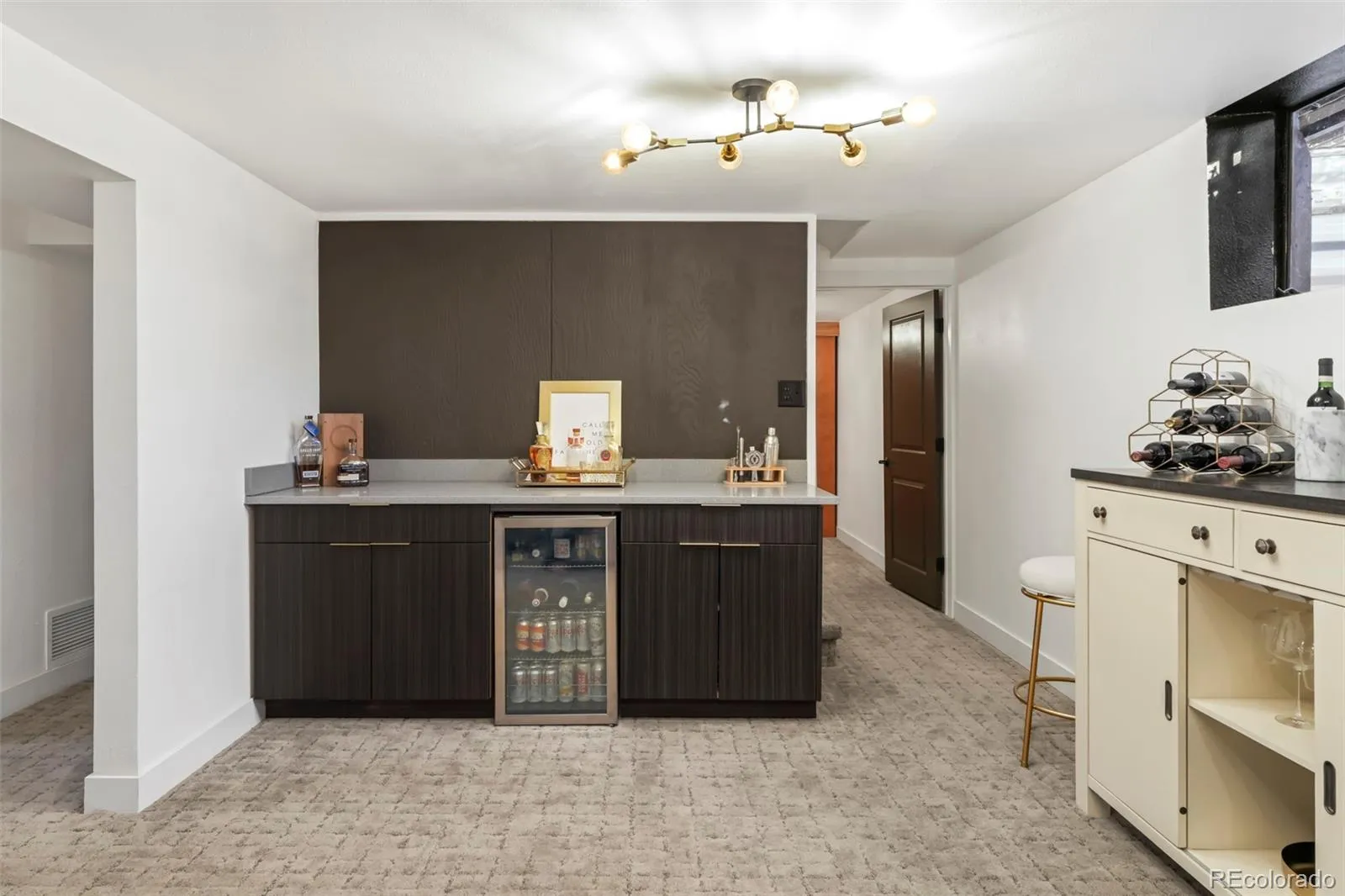 A timeless blend of mid-century charm and modern comfort, this Arvada Acres treasure captures the essence of Colorado living. Morning light pours through the picture window, illuminating the original wood paneling and hardwood floors, the kind of warmth that instantly feels like home. The open layout invites connection, flowing seamlessly from the airy living and dining spaces to a sleek, updated kitchen with stainless steel appliances and a designer backsplash. Five bedrooms, including a finished lower level with a rec room and beverage bar, offer the flexibility to work, host and unwind in style. Each bathroom makes a statement with playful, design-forward details that speak to both personality and function. Step outside to a private backyard framed by mature trees, the perfect setting for weekend BBQs, gatherings with friends or quiet mornings with coffee in hand. With new mechanicals, transferable solar panels and no payment for the next 14 years, every detail has been considered for both beauty and efficiency. Just moments from Old Town Arvada, light rail access and scenic mountain routes, this home is more than a place to live, it’s a gateway to the best of Colorado’s lifestyle.