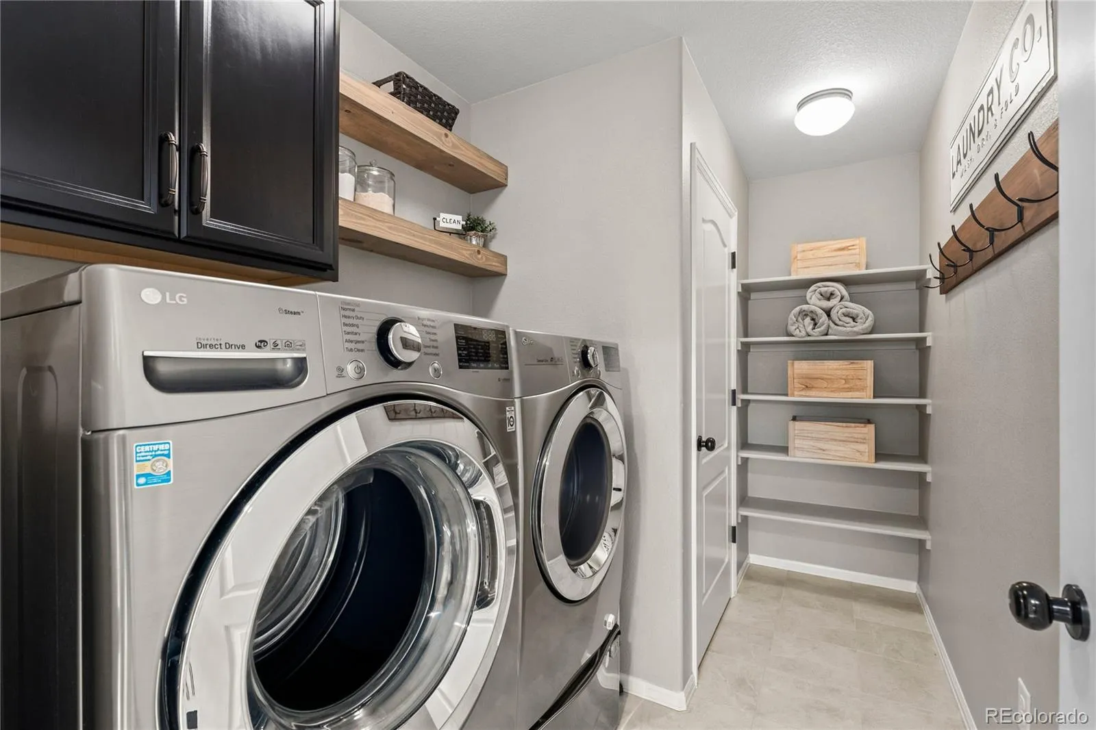 Upstairs, a large loft provides flexible space for a home office, playroom, or media area. The primary suite boasts a custom walk-in closet and spacious ensuite bath. With multiple custom closets in the bedroom to upgraded bathroom faucets, upgrades abound! Two additional bedrooms feature charming custom wood paneling and a third has a Murphy bed—perfect for guests or a hybrid space. And we can’t forget the coveted upstairs laundry room!