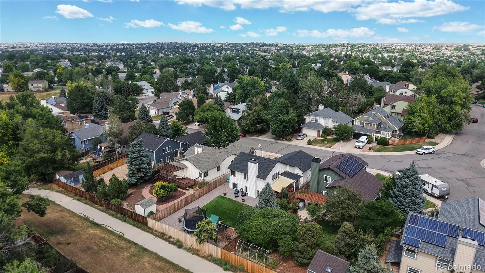 Sophisticated and inviting home with great landscaping and private yard, backing to greenbelt area and pathway in Aurora’s Hampden Hills neighborhood. As you step inside, vaulted ceilings and large windows draw natural light into the formal living area. The kitchen features stainless-steel appliances, roll-out storage trays in cabinets, and a convenient layout adjacent to the dining room with designer lighting. Easy access to the upper and lower levels creates a quiet separation for living, work, and rest. There are three bedrooms together on the upper level including a peaceful primary bedroom with a walk-in closet (complete with designer closet organizer) and direct access to the remodeled bath with stylish décor, tiled shower / tub surround and double vanity. The lower-level living space offers the perfect place to relax, complete with a wood-burning fireplace and floating media center. Step outside to the outdoor entertaining area complete with shade sail and bistro lighting. The spacious fenced yard and mature trees provide both privacy and year-round outdoor enjoyment. Convenient parking and storage with a two-car garage and 12’x8’ garden shed with loft. Located just blocks from Sunrise Elementary and Horizon Middle Schools, with Smoky Hill High School also nearby, this home puts you within reach of parks, walking paths, retail centers, and commuter corridors to downtown Denver, Buckly SFB, DIA, & Southlands Mall. This residence offers timeless design, adaptable spaces, and a central Aurora location all wrapped into one compelling, move-in-ready package. No HOA fees and lower property taxes without a metro district tax. **Save $$ on your electric bill with energy efficient solar system and assumable solar loan at 2.99% ** New roof and gutters (2023) ** New patio door and many new windows ** Wi-Fi / smart thermostat, garage door opener, and sprinkler system for front yard, back yard, and garden. **3D Tour: https://my.matterport.com/show/?m=PtPPvWjMfgL