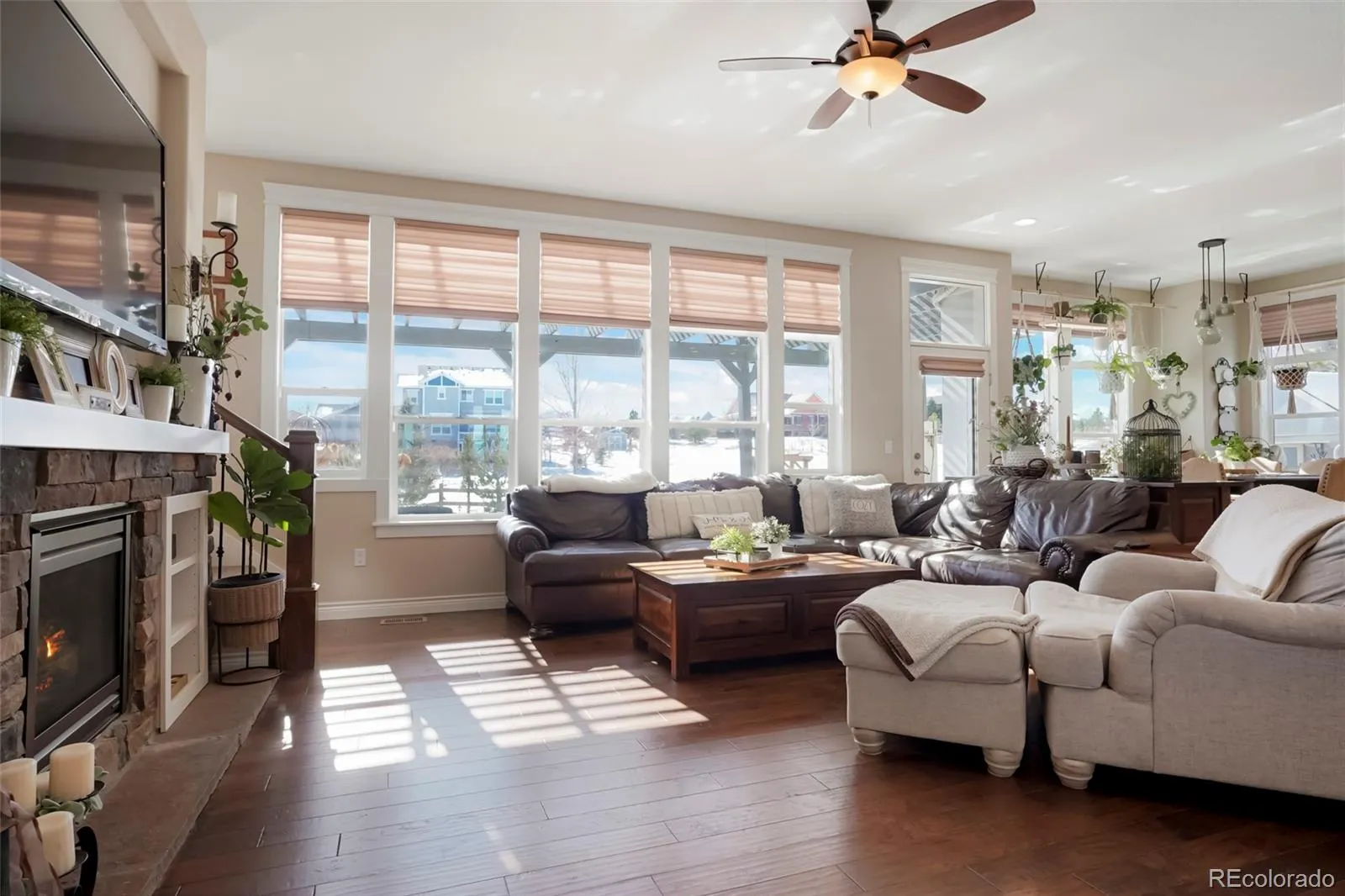 sought-after neighborhood. The spacious great room features soaring ceilings and a cozy gas fireplace, while the gourmet