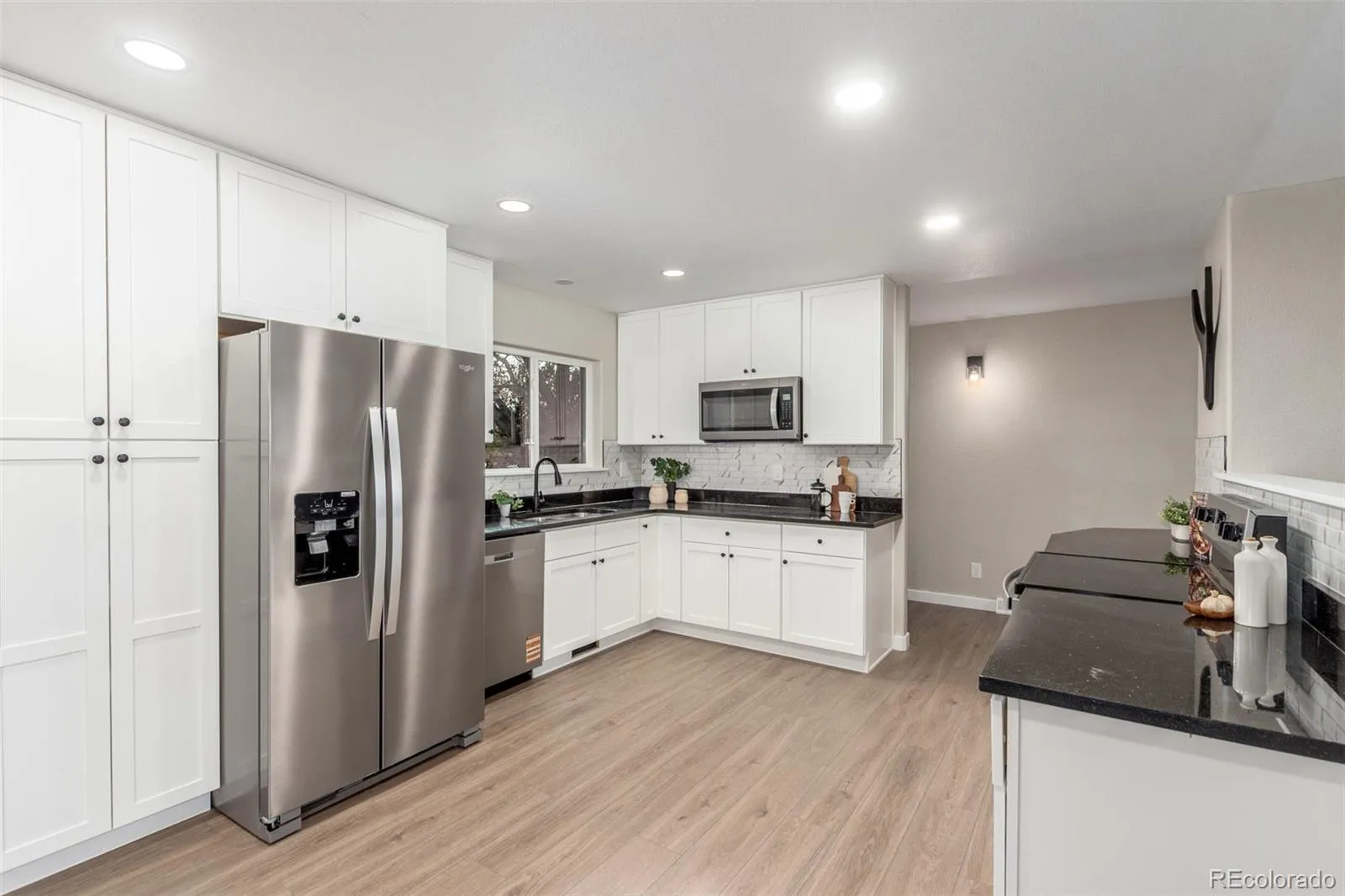 Step into the spacious main level where natural light pours through large windows, showcasing the open-concept living and dining areas. The brand-new chef’s kitchen features quartz countertops, custom cabinetry, stainless steel appliances, designer tile backsplash, and a breakfast bar perfect for casual meals or entertaining. Every bathroom has been tastefully renovated with modern fixtures, elegant tile, and thoughtful details that create a spa-like feel.