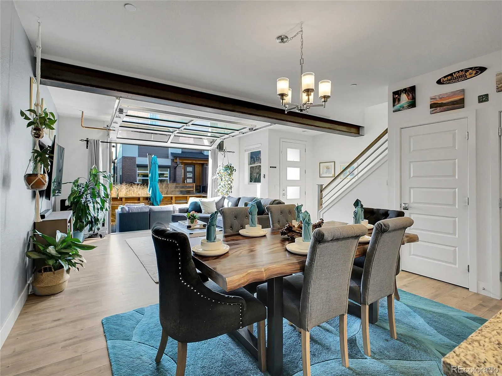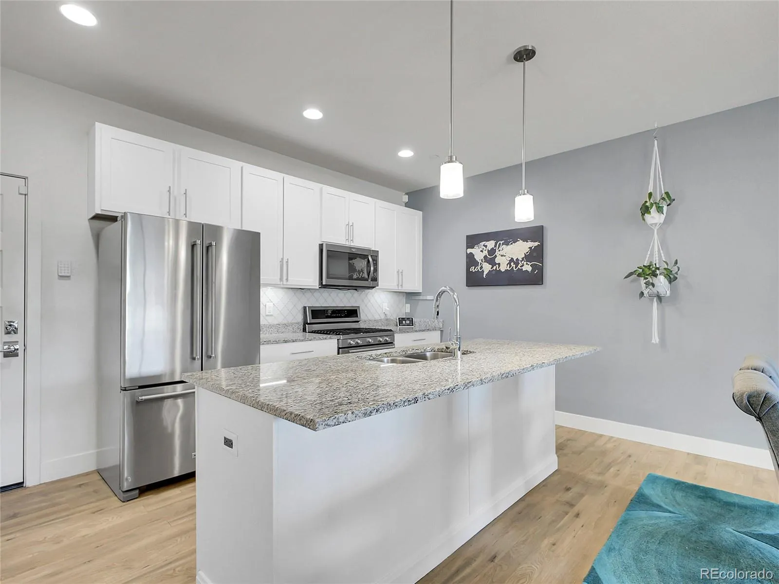 ** Welcome Home to this Modern & Stylish Townhome with 3 Bedrooms + 3 Bathrooms, in 1,524 Square Feet ** A landscaped walkway leads to the fenced front patio and a bright, great room greets you with tall ceilings, warm wood flooring and a glass panel door ** Opened at the touch of a button, the glass door provides seamless access to the patio for indoor/outdoor living and brings in loads of natural light in all of Colorado’s seasons ** The patio (21’7″ by 12’4″) has a gas line for a grill or firepit, and is perfect for relaxing ** Inside, the well-equipped kitchen has a large island, stainless appliances and a pantry closet – perfect for meal prep and entertaining ** The island can accommodate seating, and there is room for a dining table ** Access to the attached 2-car garage and a guest bath round out this floor ** Up the wide staircase are all three bedrooms – the primary suite is first with a double door entry, peek-a-boo mountain views, ceiling fan, upgraded carpet and lovely ensuite bath with dual sinks and walk-in shower ** A walk-in closet in the primary provides great storage, and there are two additional storage closets in the hallway ** A laundry closet houses full-sized washer and dryer (included in the sale) ** Each secondary bedroom has a ceilng fixture, window and closet; they share a full bathroom equipped with tub & shower and vanity ** HOA handles all exterior landscaping, trash and snow removal ** A new roof was installed in Summer 2024 ** This quiet community is in an amazing location with Cherry Creek Schools, easy access to public transportation, shopping, restaurants, parks and highways ** See this great property while you can – set a showing today!
