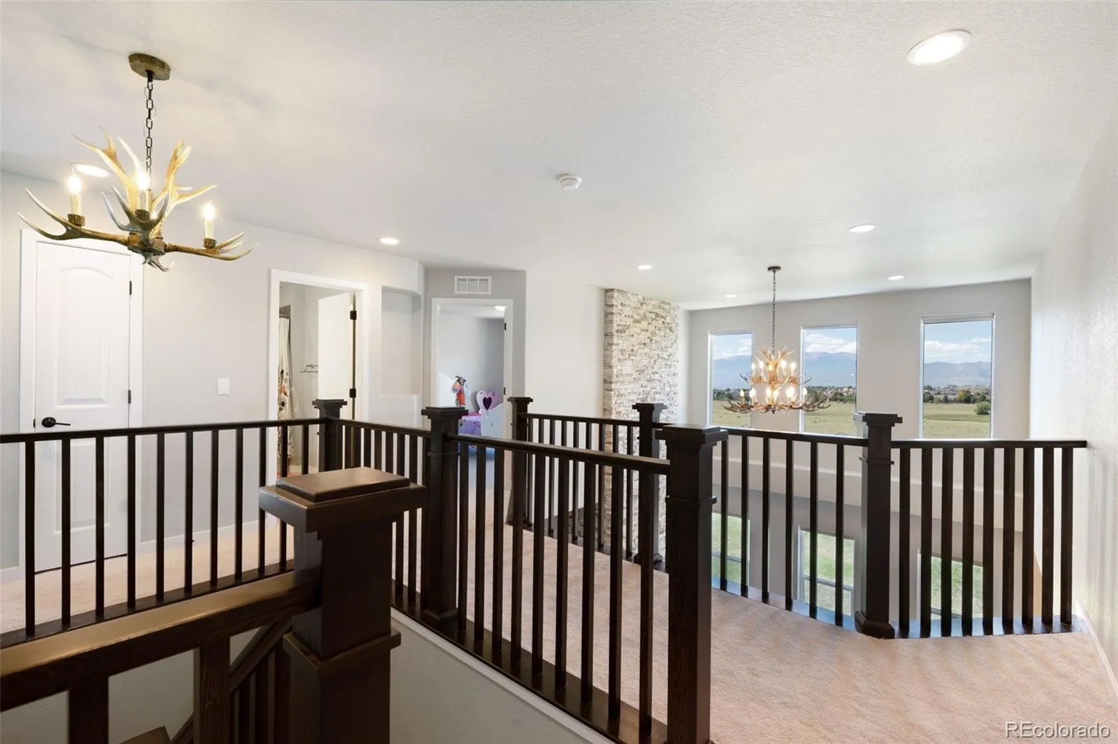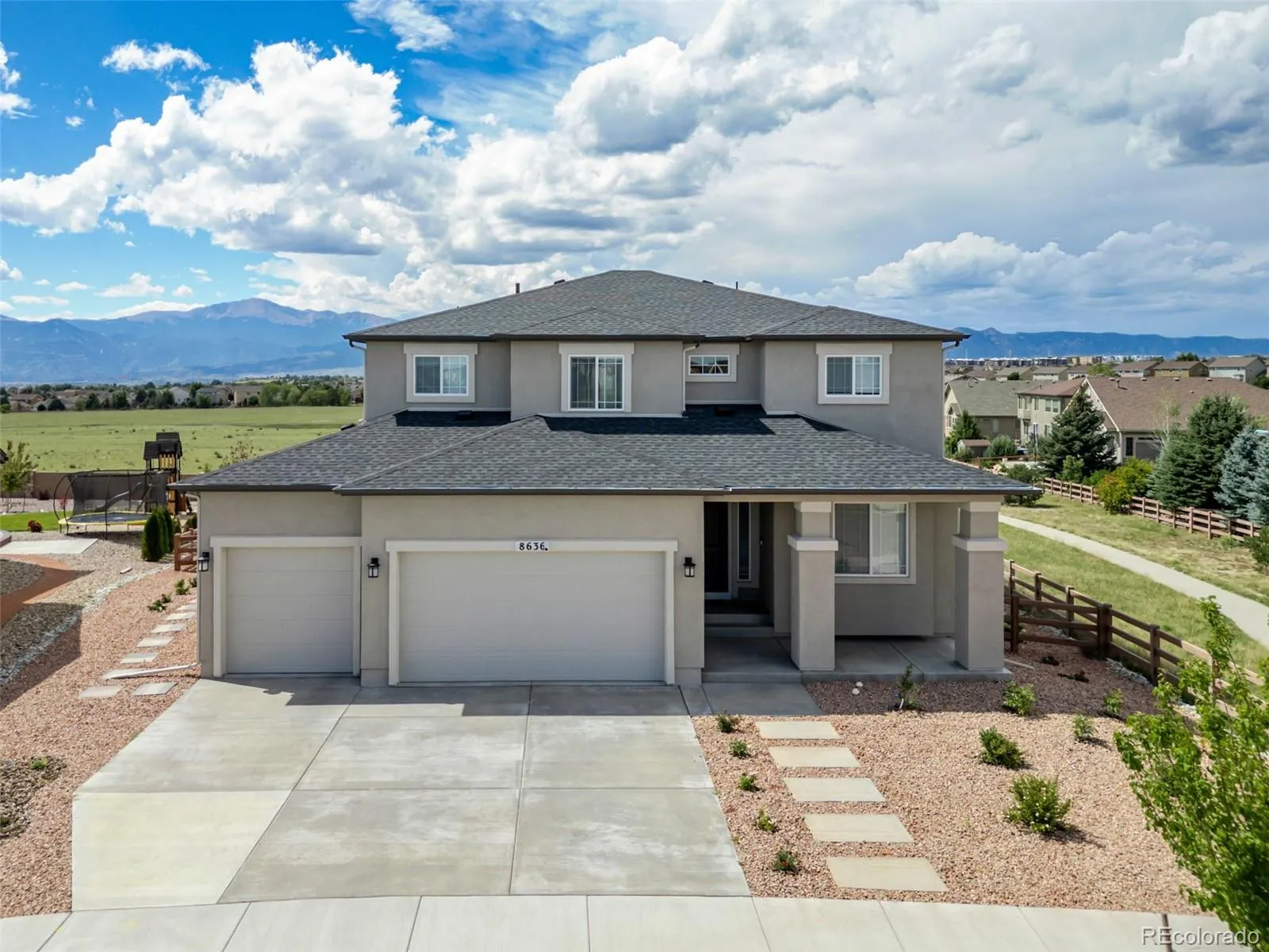 Breathtaking mountain views & a setting that backs to open space make this home truly one of a kind. From the moment you arrive, the scenery takes center stage & continues to impress throughout the entire property. Nestled on a large, newly landscaped lot with added fencing & mesh, this residence combines modern design with thoughtful upgrades, creating a home that is as functional as it is beautiful. Soaring ceilings & expansive windows highlight the views while filling the home with natural light & a dramatic floor-to-ceiling fireplace anchored by elegant chandeliers sets the tone in the great room. The gourmet kitchen is designed for everyday living, featuring quartz countertops, upgraded cabinetry, a walk-in pantry, custom backsplash, modern faucet, & a spacious island that flows seamlessly into the dining & living areas. A versatile front room adds flexibility, whether used as a formal dining space or a cozy sitting area, while the main-level office provides the privacy needed for work or study. Upstairs, the primary suite serves as a relaxing retreat with stunning mountain vistas, a spa-inspired bathroom enhanced by smart mirrors, & a generous walk-in closet. Secondary bedrooms are equally spacious & bright, complemented by well-appointed bathrooms, & an upper-level catwalk enhances the architectural appeal while overlooking the living area below. The unfinished basement presents endless possibilities for future expansion, from a home theater to a fitness room or additional living space. Outdoor living is just as impressive, with a large deck perfectly positioned to capture Colorado’s sunsets & mountain views, while the beautifully landscaped backyard is designed for both recreation & relaxation, making it a space to enjoy year-round. Additional upgrades include window well covers, a suite of blinds with motorized options, security cameras with a doorbell camera, & insulated garage walls with utility racks & a slate wall system for added organization.
