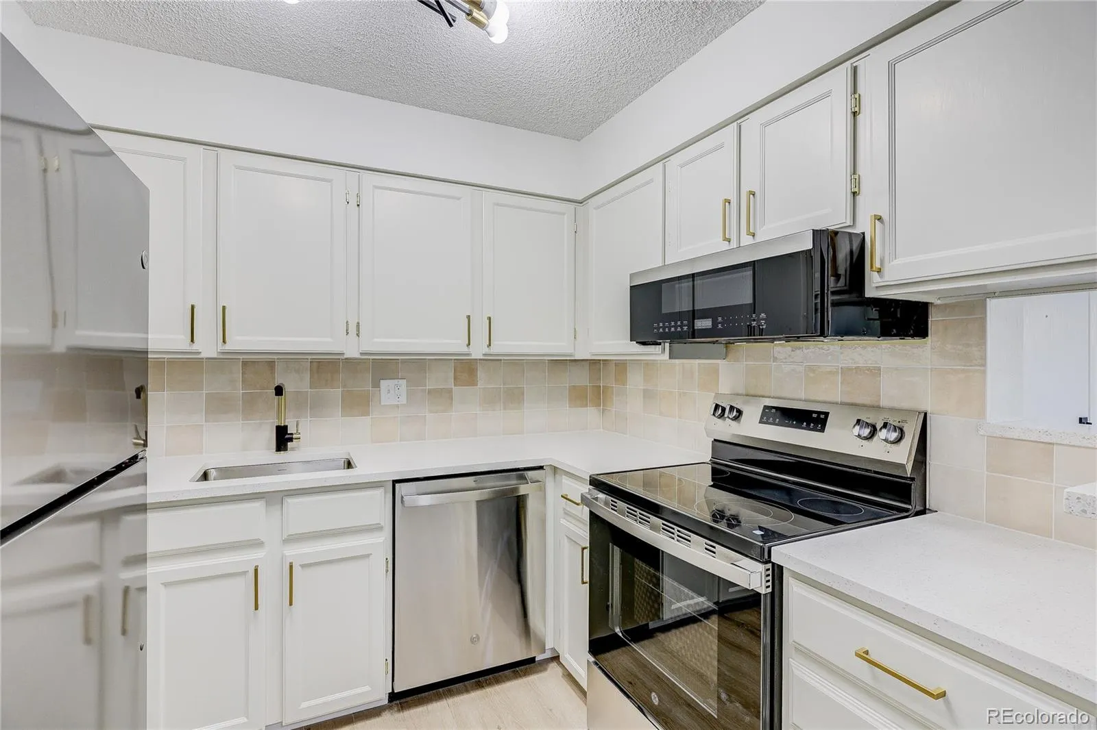 AMAZING Updated 2 Bed, 2 Bath End Unit in Telegraph Hill! Move-in ready and totally chic, this spacious, light-filled condo features vaulted ceilings, new laminate flooring, and stunning modern finishes throughout. Enjoy a stylish kitchen with quartz countertops, sleek tile backsplash, and brand-new stainless steel appliances. The living room boasts a cozy fireplace and opens to one of two private balconies! Both bedrooms are generously sized with walk-in closets, and the bathrooms shine with contemporary black and gold fixtures. Additional perks include a detached 1-car garage, reserved parking space, and plenty of storage. Community amenities: Pool, tennis court, and beautifully maintained grounds. Prime location near Cherry Creek State Park, bike trails, DIA, light rail, DTC, and public transit. Don’t miss this gem—schedule your tour today!