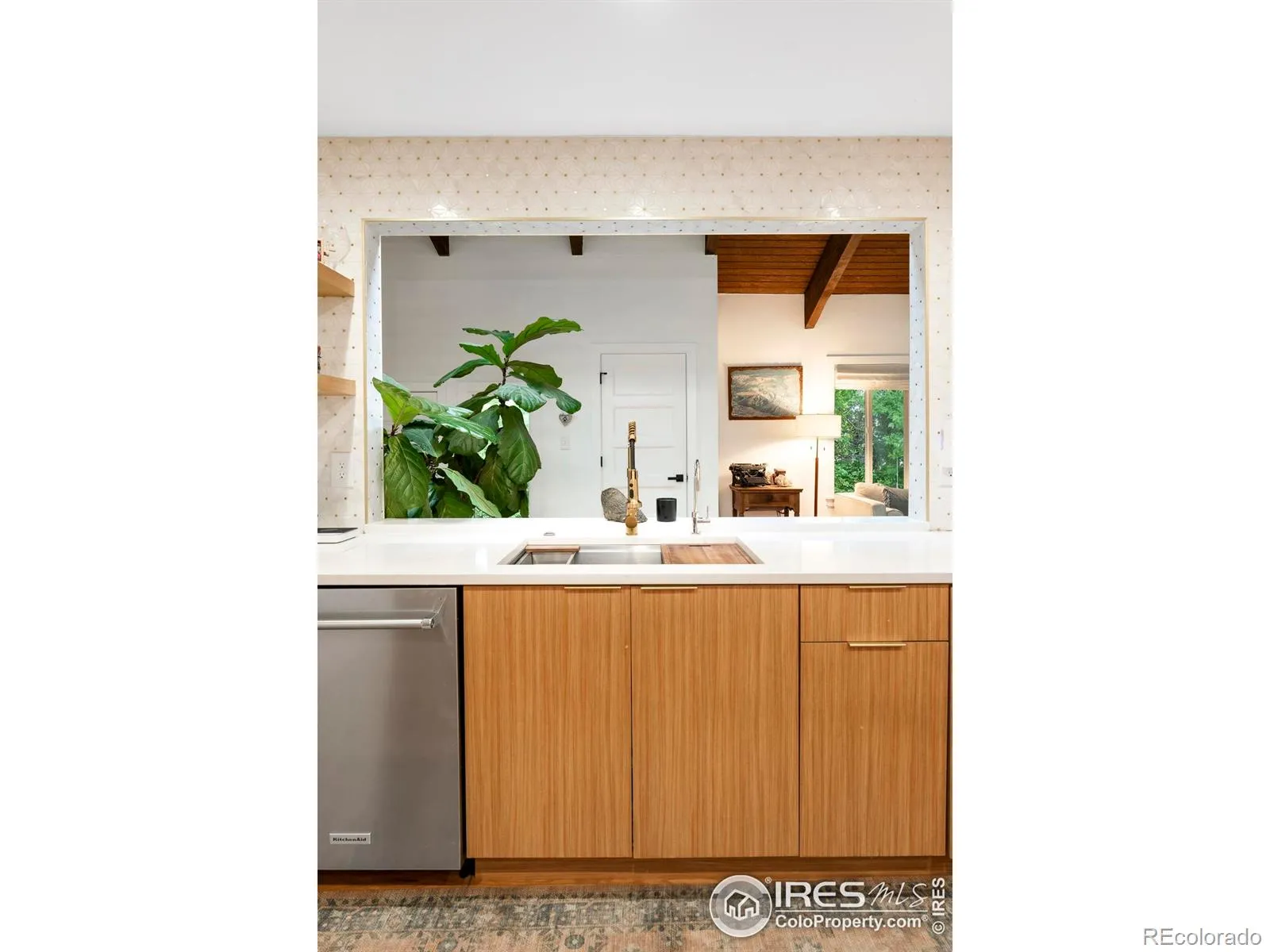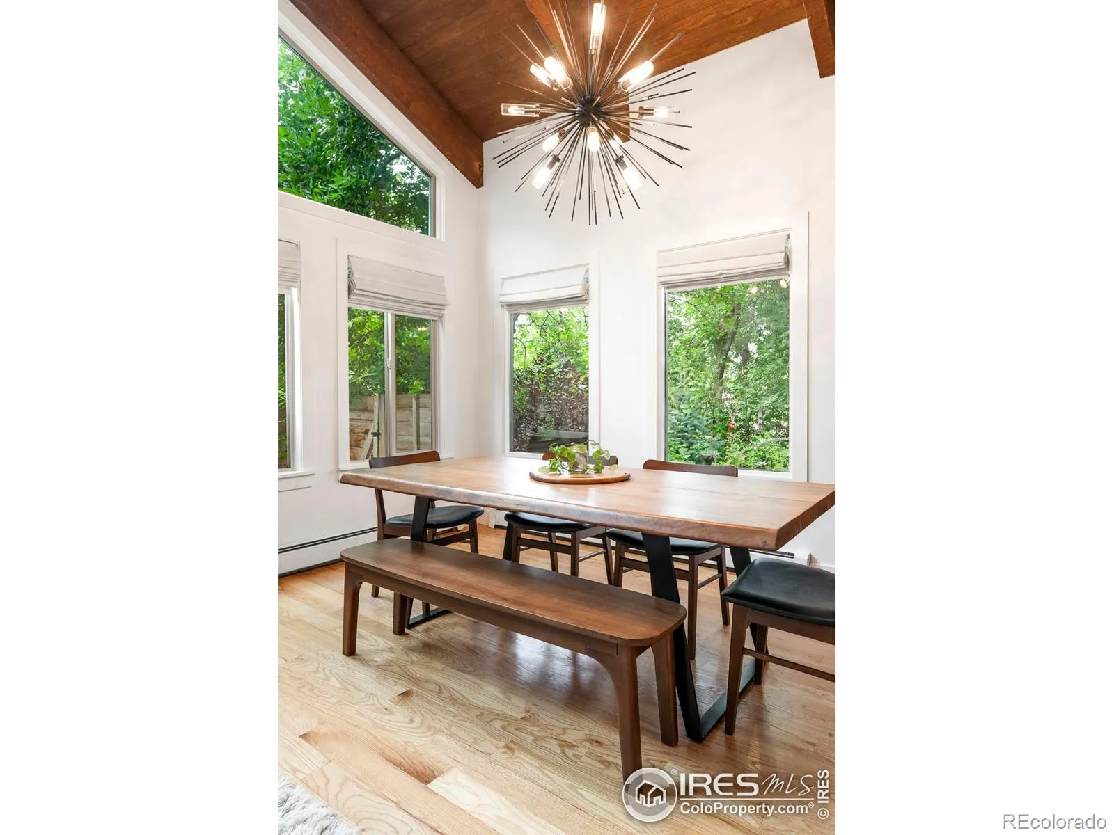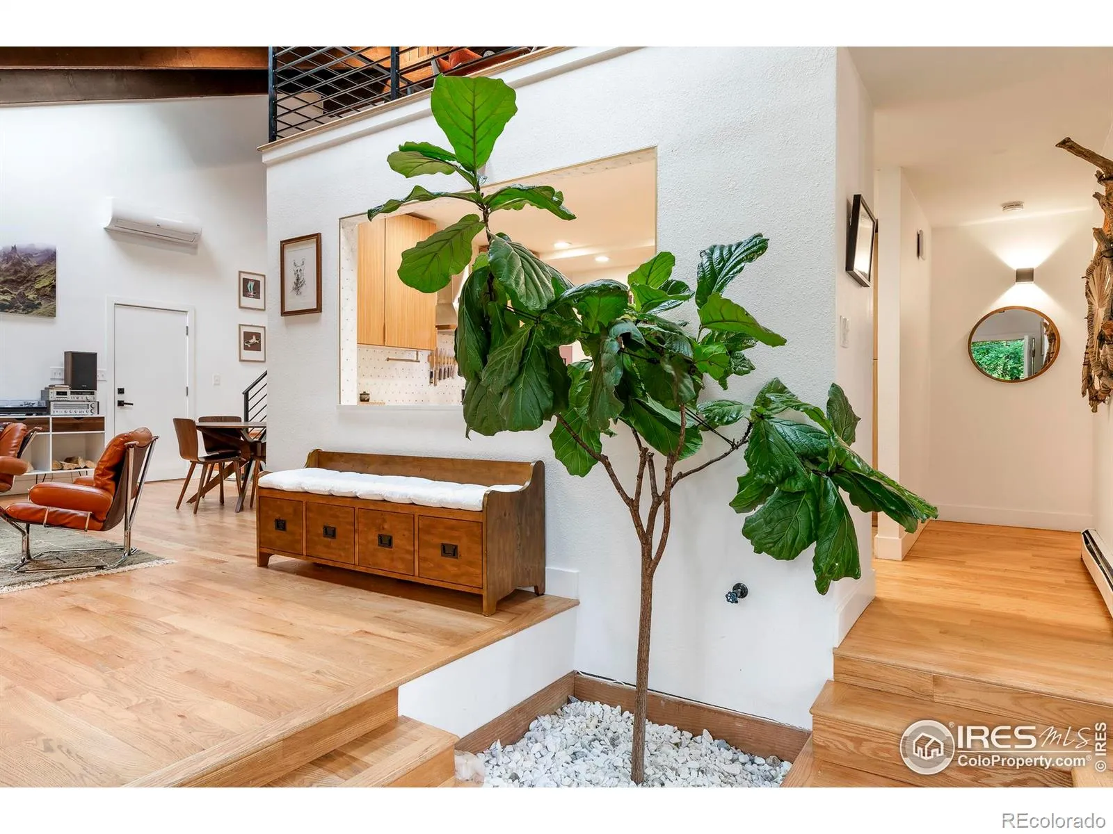 A rare fusion of modern design and timeless character is unveiled in this fully reimagined Applewood Green residence. Showcasing soaring ceilings, an open floorplan unfolds with abundant natural light. A stunning fiddle leaf fig tree anchors the entryway, setting the tone for the home’s unique character. The living and dining areas are enhanced by vaulted, wood-beamed ceilings and a striking wood-burning fireplace, while the open kitchen boasts premium finishes perfect for entertaining. Two primary suites – one on each level – offer ideal flexibility for multi-generational living. Upstairs, dual loft areas provide space for a home office or lounge. The lower level is designed for leisure with a movie theater room, wet bar, updated flex space and generous storage. Outside, mature trees and lush foliage create privacy around the expansive yard featuring a patio with a pergola and a raised deck with a custom barrel sauna. An oversized two-car garage and large mudroom complete this renovated retreat.