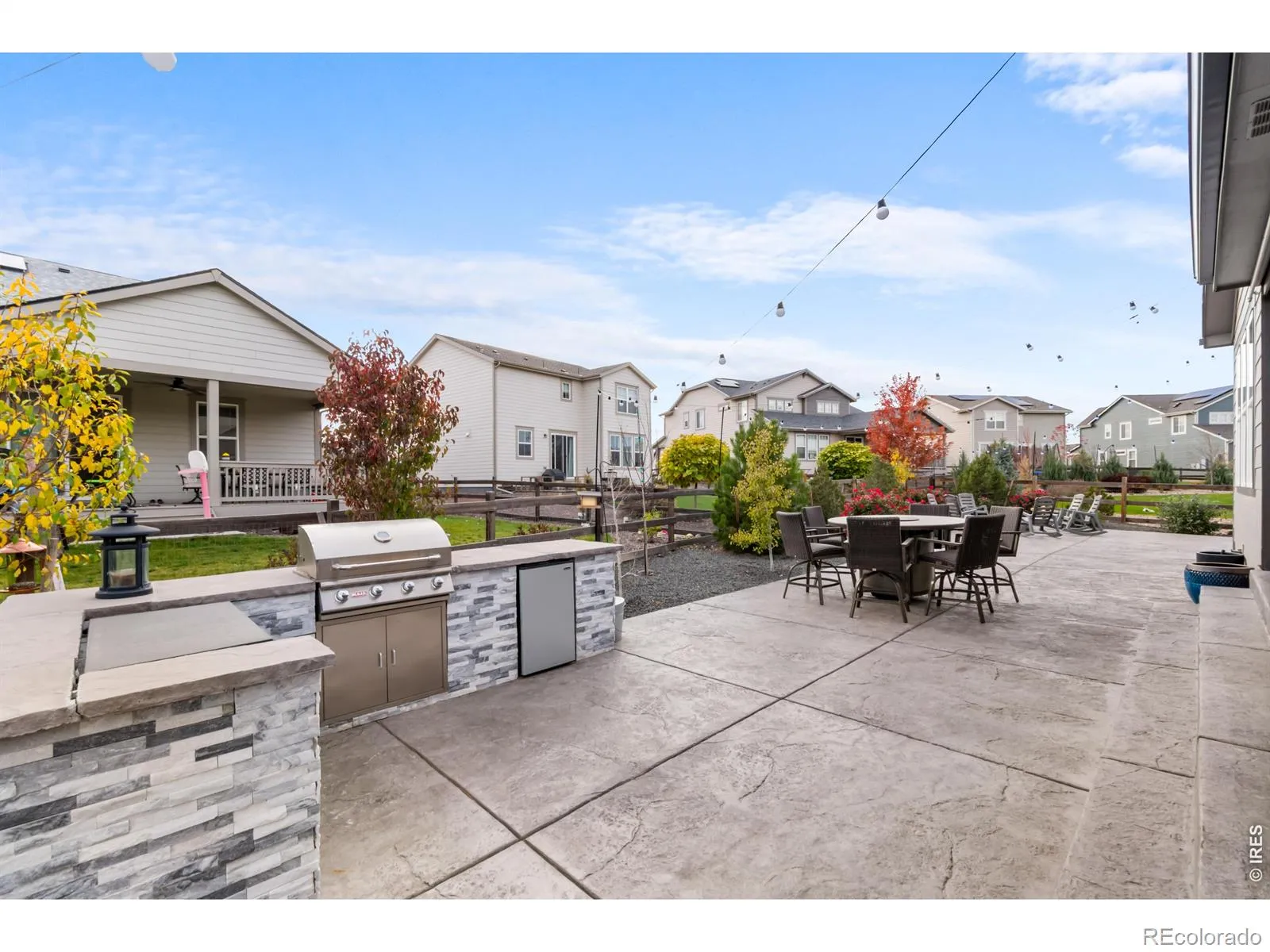Welcome to one of the finest homes in Barefoot Lakes, ideally situated on a cul-de-sac and loaded with luxury upgrades. This 5-bed, 5-bath stunner features over $160K in design center finishes plus $80K+ in a backyard retreat built for entertaining. Inside, enjoy real pecan hardwood floors, 10-ft ceilings, 9-ft solid wood doors, plantation shutters, and a spacious great room with gas fireplace. The gourmet kitchen boasts a massive brushed marble island, double ovens, gas cooktop, soft-close cabinetry with organizers, walk-in pantry, and a secondary pantry for appliances or formal dishware. A dedicated office with French glass doors completes the main level.Upstairs, the serene primary suite offers a coffered ceiling and spa-style bath with oversized glass walk-in shower, dual rainfall heads, and large walk-in closet. Three more bedrooms, two full baths, and a versatile loft provide ample space. The finished basement includes a large living area, fifth bedroom with egress windows, full bath, and potential for a sixth bedroom. Dual furnaces and A/C units ensure year-round comfort.The backyard is a true oasis: covered patio, stamped concrete, full outdoor kitchen, raw stone gas fire pit, hot tub (included), spacious lawn, and multiple seating areas. Barefoot Lakes offers miles of trails, two lakes, fitness center, pool, parks, and easy access to I-25, Denver, Boulder, and Fort Collins.This is Colorado living at its finest.