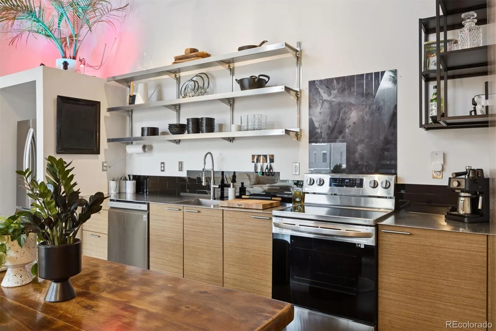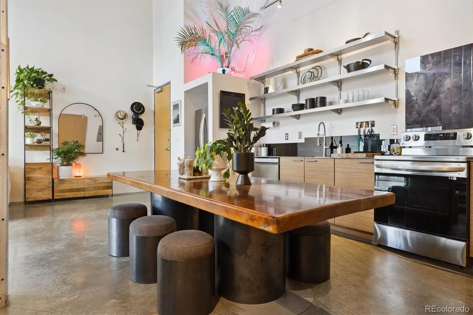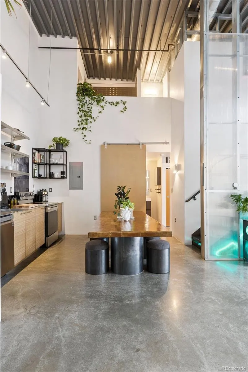 Open and airy modern industrial live/work space located within the multi-award winning TAXI community. This top floor loft boasts unique architectural features such as a 25′ high ceiling, polished concrete floors and custom designed windows. This west facing unit has abundant natural light and includes views of the front range’s iconic peaks and colorful sunsets. This open concept dwelling has 2 large bedroom spaces, which have been meticulously designed for multi-use functionality. There are 2 updated bathrooms, featuring one with a deep soaker tub and one with a custom walk-in shower. The home has also been recently updated with newer high efficiency top brand electric HVAC system, Scandinavian hardwood flooring, a walk-in shower with CimentArt finish, custom ELFA closets, and newer top-tier LG appliances, including washer and dryer. Walk out your front door and take advantage of all that the RiNo Art District and TAXI community has to offer. The community is located across from the South Platte River trail system, the new RiNo Art Park and a short walking distance to the A Line Light Rail with quick access to Union Station and DIA. The community itself is a mixed-use community of creative residents, innovators, entrepreneurs and businesses collaborating to shape industries such as sustainability, tech, design, architecture, social enterprise and the arts. As an owner at the TAXI community, you will have access to an amazing array of amenities, including a soon to open Michelin chef Mexican restaurant concept, Zero Hour Coffee Shop, access to a full Gym and pool, co-working space, galleries, picnic/BBQ area, skateboard park, community garden and bike maintenance station. The TAXI community also has ongoing parties, events, and lectures. Please reach out to the listing agent for a full list of updates and to learn more about the community. This loft can be used for a residence, business and/or live/work.