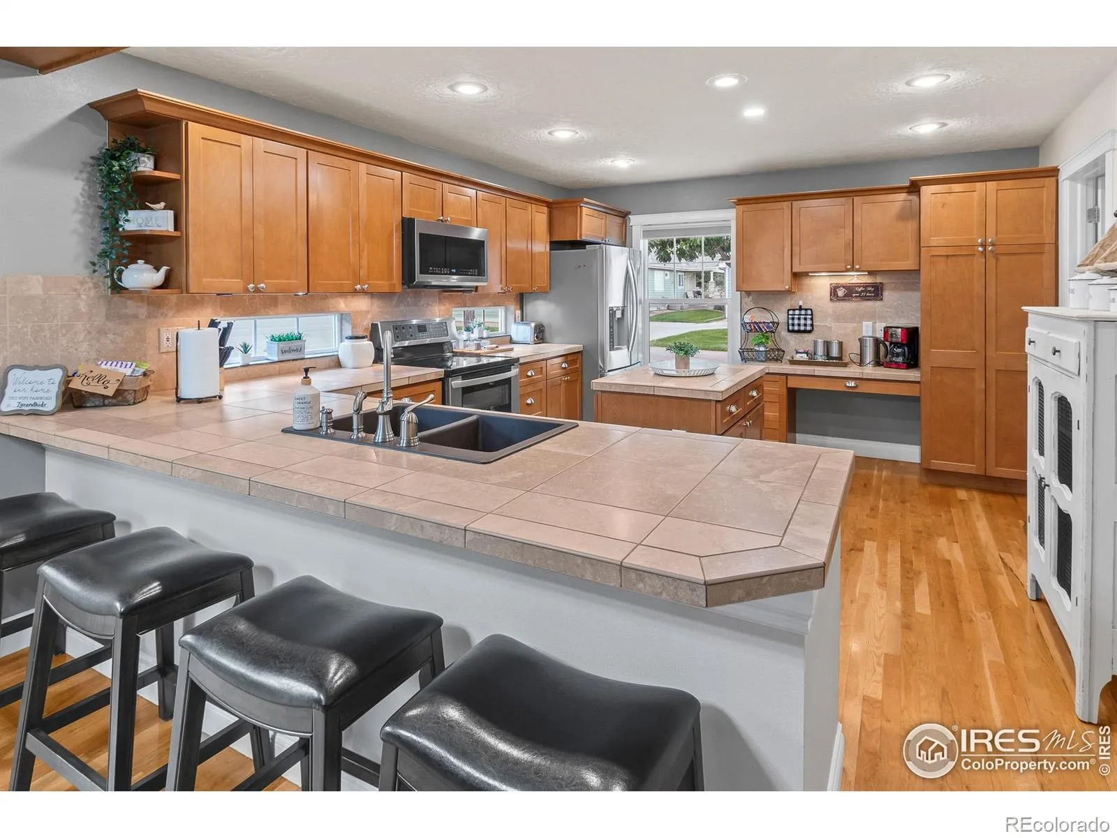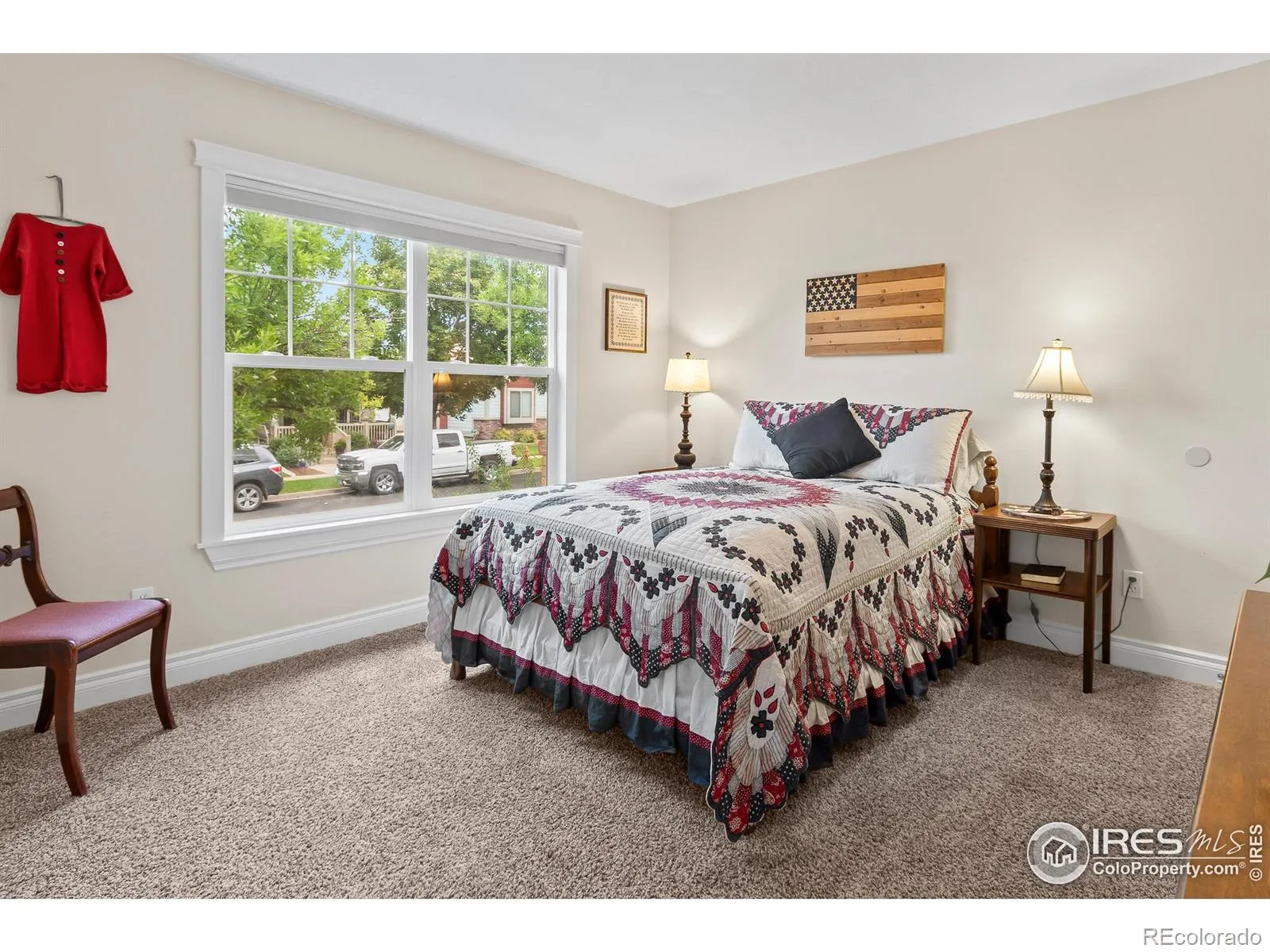 Rare Westridge Patio Home! Enjoy lock-and-go living in this beautifully maintained 3-bedroom, 2-bath patio home with an alley-load heated 2-car garage. The open-concept main floor features wood floors, a bright living room with custom built-ins and a cozy gas fireplace, and a stunning kitchen with custom cabinets, stainless steel appliances, island, and coffee/bar nook. The spacious primary suite offers a large walk-in closet and luxurious 5-piece bath. Main-floor laundry adds convenience, and the full basement is perfect for storage or future expansion. Energy-efficient solar panels keep electric bills low! HOA covers lawn care, snow removal, and trash-ideal for lock-and-go living. Fantastic location close to schools, restaurants, shopping, and the Greeley Family Funplex!