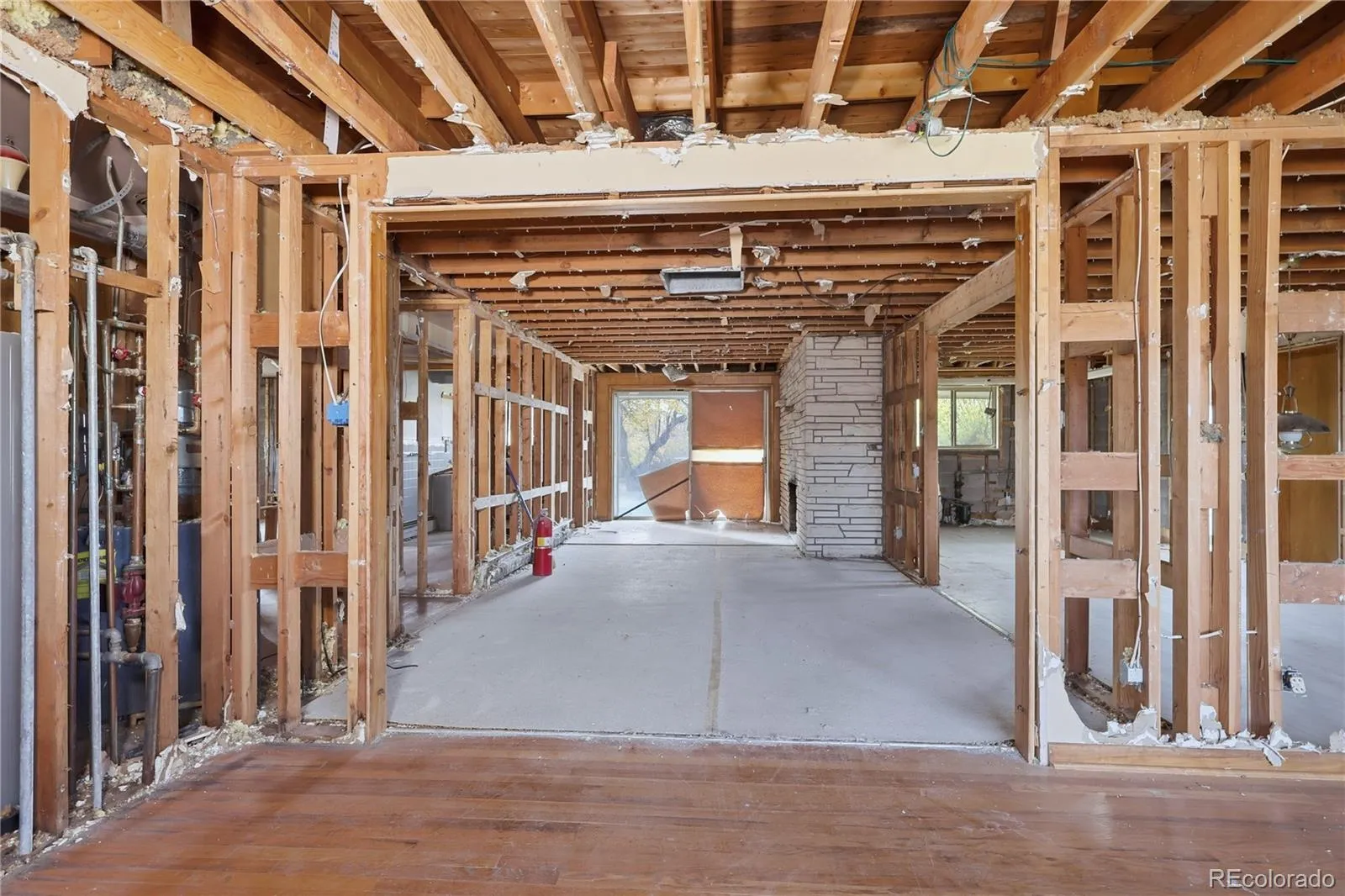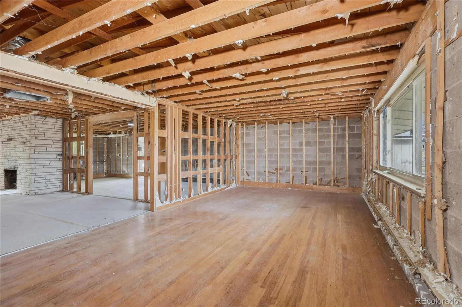 The existing mid-century brick ranch has been completely gutted to the studs, providing an exceptional blank canvas for investors, builders, or homeowners looking to design a fully custom retreat. Large picture windows, fireplace, and a generous open floor plan offer a solid starting point for a renovation, addition, or full rebuild. Whether your vision includes a modern single-story ranch, a reimagined mid-century masterpiece, or a new luxury home with indoor-outdoor living, the location and setting here truly elevate the possibilities.
