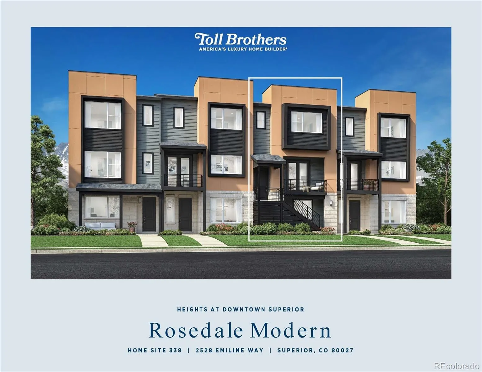 Brand new Toll Brothers Home – Rosedale Modern – ready now! The spacious kitchen showcases 42” maple cabinets with white icing finish, extended island with stunning quartz countertop and stainless steel Kitchen Aid appliances. The primary bedroom features a sizeable walk-in closet, primary bath with dual sinks, upgraded floor and shower tile and separate water closet. Exterior balcony off of the dining room expands outdoor living. Downtown Superior is located in the heart of Superior and the town center is within walking distance in this urban setting. Easy access to Boulder and Denver provides many options for enjoying nature or exploring downtown Denver. Schedule an appointment today to tour this stunning Rosedale home.