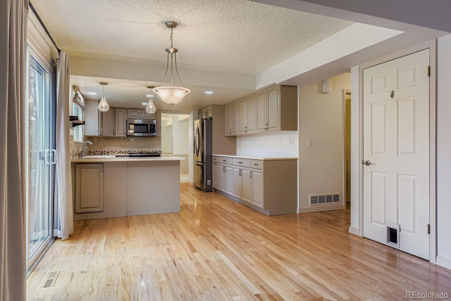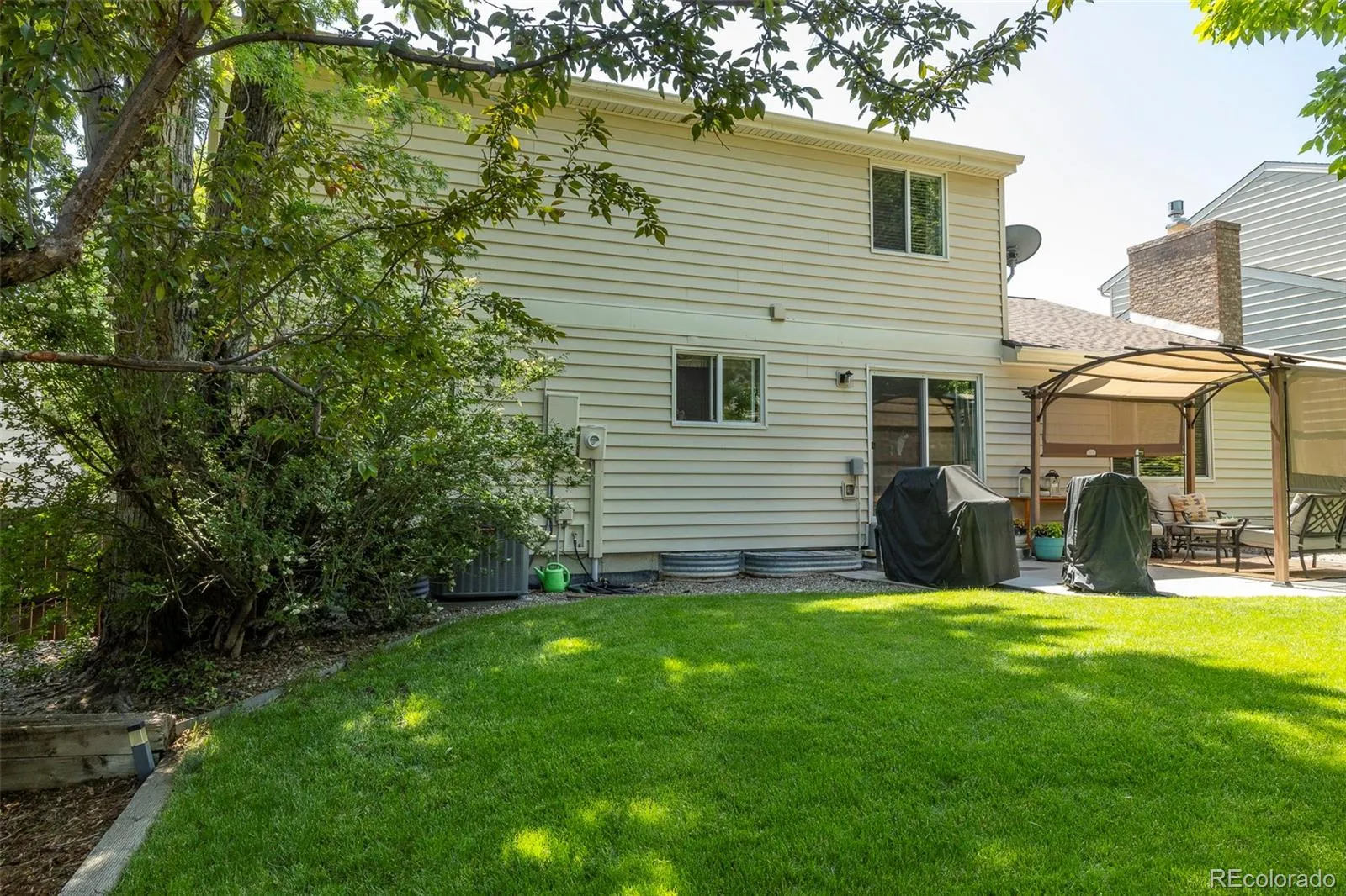 Upstairs, you’ll find updated bathrooms, including a large primary suite with a private ¾ bath and walk-in closet. Comfort comes easy with newer windows, a whole house fan, a newer HVAC system and water heater for peace of mind. Gutter guard screens also keep debris and leaves from causing clogs. The large unfinished basement has been thoughtfully used by the current owners as a quilting and craft room, offering plenty of space and flexibility for hobbies, storage, or future finishing.Tucked away on a quiet cul-de-sac in The Highlands, one of Centennial’s most desirable neighborhoods, this home is just steps from a greenbelt and walking trail, close to shopping and restaurants, and part of the highly rated Littleton School District. The beautifully landscaped front and backyard offer plenty of outdoor enjoyment, and with no HOA, you’ll enjoy flexibility and freedom. This home is the perfect blend of updates, location, and care — ready for its next owner! Wooden storage shelves in basement, workbench in garage, two outdoor storage cabinets, ring doorbell, patio pergola all included.
