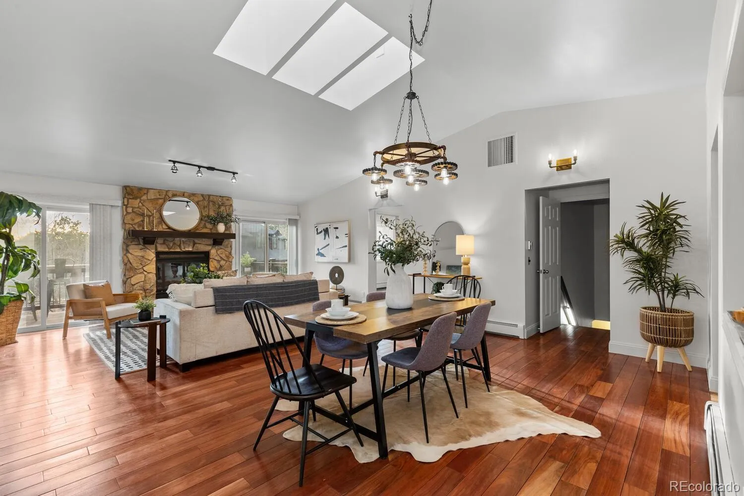 Welcome to 6153 Ponderosa Way—tucked into the iconic Pinery subdivision in Parker, CO, where tall pines, crisp air, and magazine-worthy scenery set the stage for this stunning five bedroom, three bathroom, 3,100+ sq. ft. walkout ranch. This magnificent home is equal parts retreat, entertainer’s delight, & everyday luxury. Step inside and you’re greeted with rich Curupay hardwood floors throughout the main level that offer a 100 year transferrable warranty. Natural light pours through the gorgeous skylights, spotlighting fresh paint, plush new carpet, & an airy, bright, feel-good flow from room to room. A cozy wood-burning fireplace anchors the main level while just off the living room you step onto the beautiful Trex deck—perfect for al fresco dining & sunset grilling. The main level delivers effortless living with three generously sized bedrooms—one currently styled as the perfect home office—and a bright, open layout designed for everyday comfort & easy entertaining. The kitchen shines with gleaming granite countertops, new stainless-steel appliances and provides easy bar-style seating as well as a roomy dining area for gathering & enjoying a full meal. The Primary Suite is a true retreat, offering incredible views of the lush backyard, a spacious layout, and a large walk-in closet ready to keep everything organized and out of sight. The walkout lower level expands your lifestyle with an additional living area that’s brimming with potential—media room, game room- the possibilities are endless! Downstairs, you’ll also find two non-conforming bedrooms, a third bathroom, and a large laundry room. Fido and his buddies will appreciate the fully fenced yard with a large storage shed, and to top it all off, the home features fully paid-off solar panels, giving you energy efficiency & cost savings from day one. This home offers a lifestyle that is as graceful as it is rare so don’t miss the chance to schedule a private showing and experience its charm firsthand!