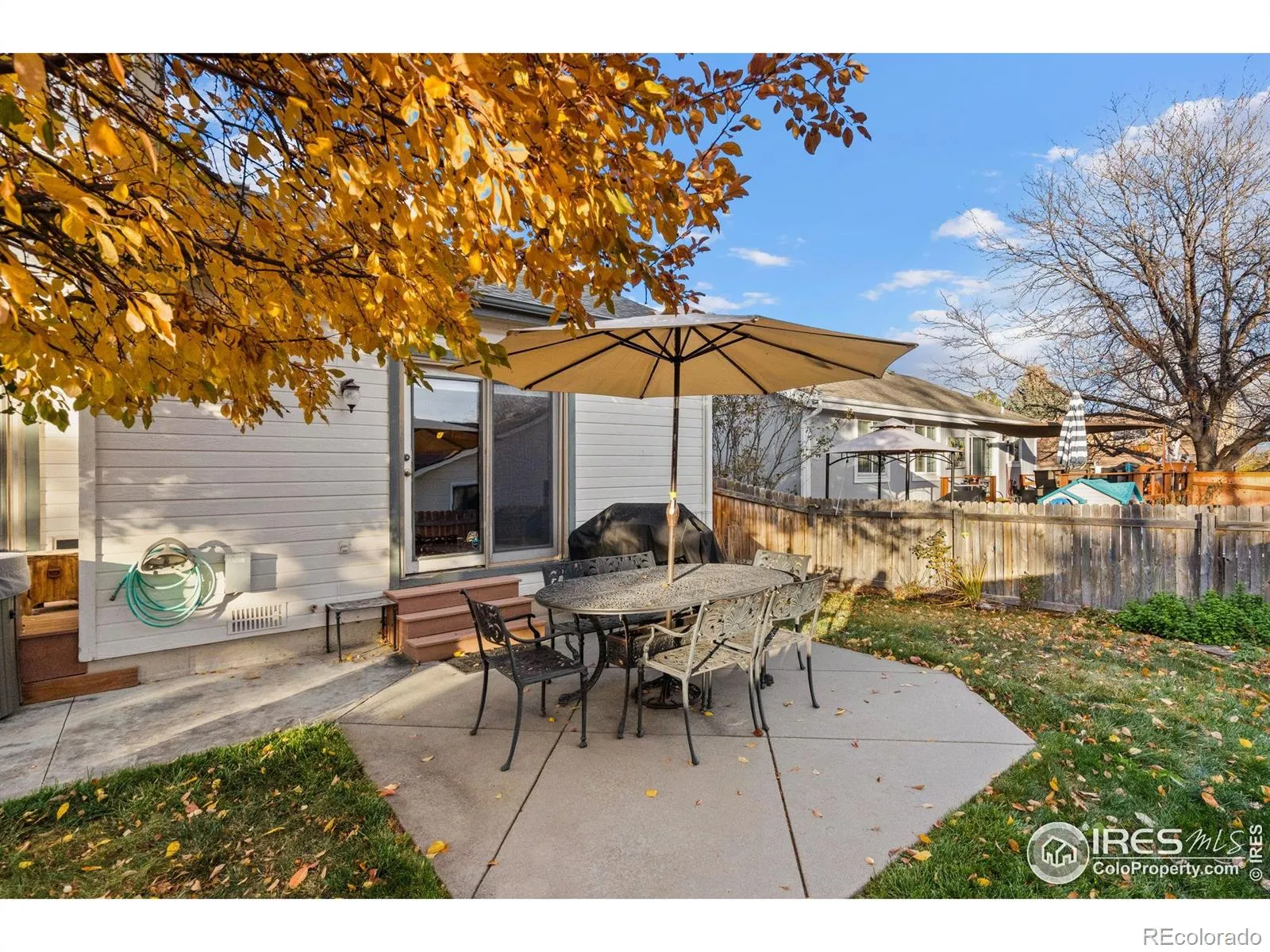 Enjoy the perfect blend of comfort and convenience with this updated North Loveland gem-just a quick 10-minute drive to Fort Collins. Featuring gorgeous hardwood floors, new furnace and AC unit in 2022, and even has leaf filter on the gutters– this home is move-in ready. The kitchen boasts tile flooring and countertops, oak cabinetry, stainless steel appliances, and a pantry, flowing seamlessly into the dining area. The vaulted living room offers an inviting fireplace and French doors leading to the backyard. The main-floor primary suite includes French doors opening to a Trex deck with a well maintained hot tub-perfect for relaxing under the stars. The fenced backyard backs to open space, providing privacy and peaceful views.