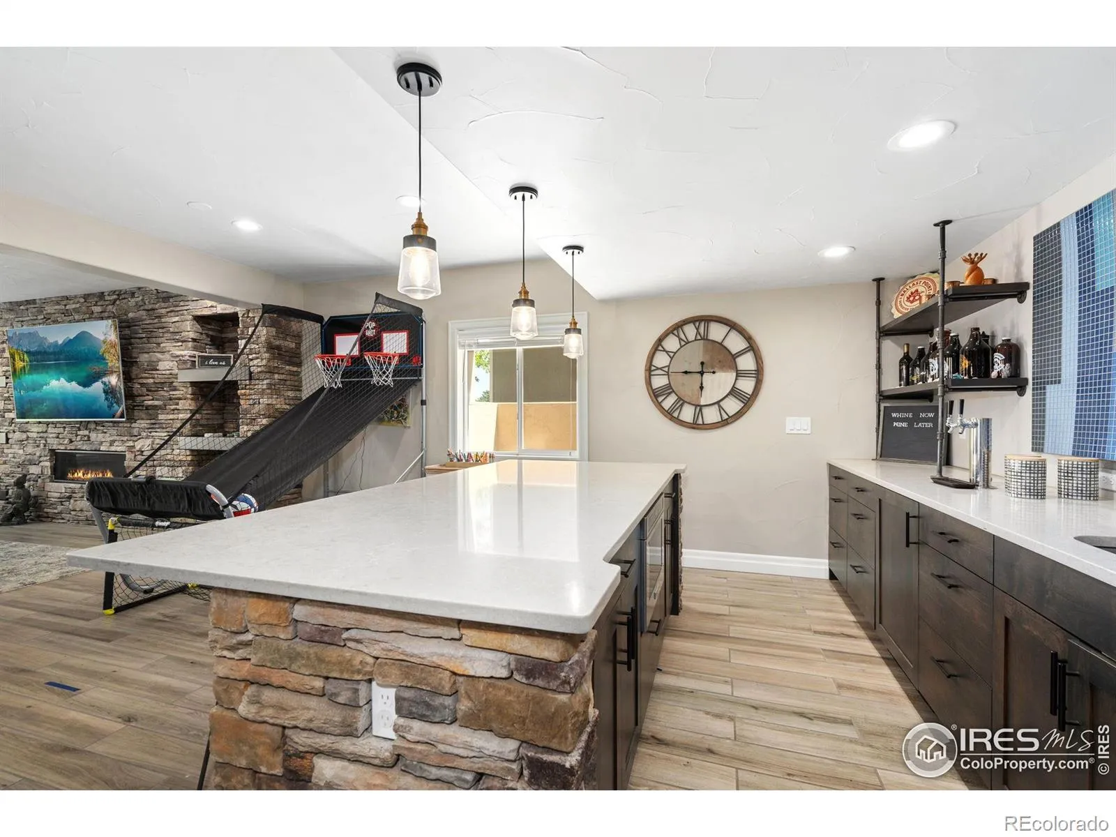 OPEN HOUSE SAT/SUN 12-2pm (11/15 & 11/16) Custom ranch-style home blending elegance & luxury. The stone & stucco exterior w/ a private courtyard sets the tone for refined living while the golf course backdrop offers breathtaking views! Step through the grand tiled entryway w/ vaulted ceilings into an open, light-filled layout designed for comfort & entertaining. The private dining room features a coffered ceiling & connects seamlessly to the butler’s pantry which includes a sink, warming drawer, beverage fridge & custom built-in cabinetry. The gourmet kitchen is a chef’s dream showcasing large granite island, ss appliances, gas range & abundant counter space for meal prep. The family room is the heart of the home boasting dramatic wood beams, hardwood floors & a floor-to-ceiling stone gas fireplace flanked by custom built-ins. Double glass doors open to a expansive deck w/ a second stone fireplace offering the perfect spot to enjoy the golf course views. The main-floor primary retreat provides a private sanctuary w/ a spa-inspired 5 piece bath & dual closets. An additional bedroom or office space plus a spacious 3rd bedroom & beautifully upgraded bathrooms complete the main level. Downstairs, the finished walkout basement is an entertainer’s paradise. The full bar features quartz counters, open shelving, lower cabinetry, beverage fridge, sink, dishwasher, kegerator & microwave-perfect for hosting gatherings in style! The expansive rec area is anchored by a stunning floor-to-ceiling stacked stone gas fireplace & filled w/ natural light from large windows. The lower level also includes a large 4th bedroom w/ golf course views, full bath & multiple flex spaces ideal for a home gym or storage. The 3 car garage provides ample room for vehicles, storage or hobbies completing the perfect combination of function & style. Located in a premier golf community w/ 27 holes of golf, pool, trails, lakes, beaches, clubhouse & dining-this home captures luxury living at its finest!!