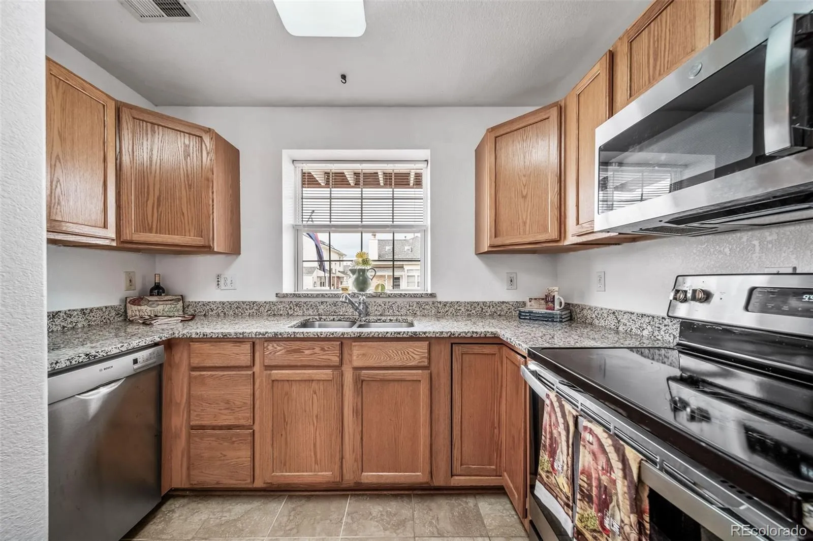 *Step inside to an inviting open-concept living area with plenty of natural light. The kitchen features ample cabinet space, stainless steel appliances, granite countertops and tile flooring.