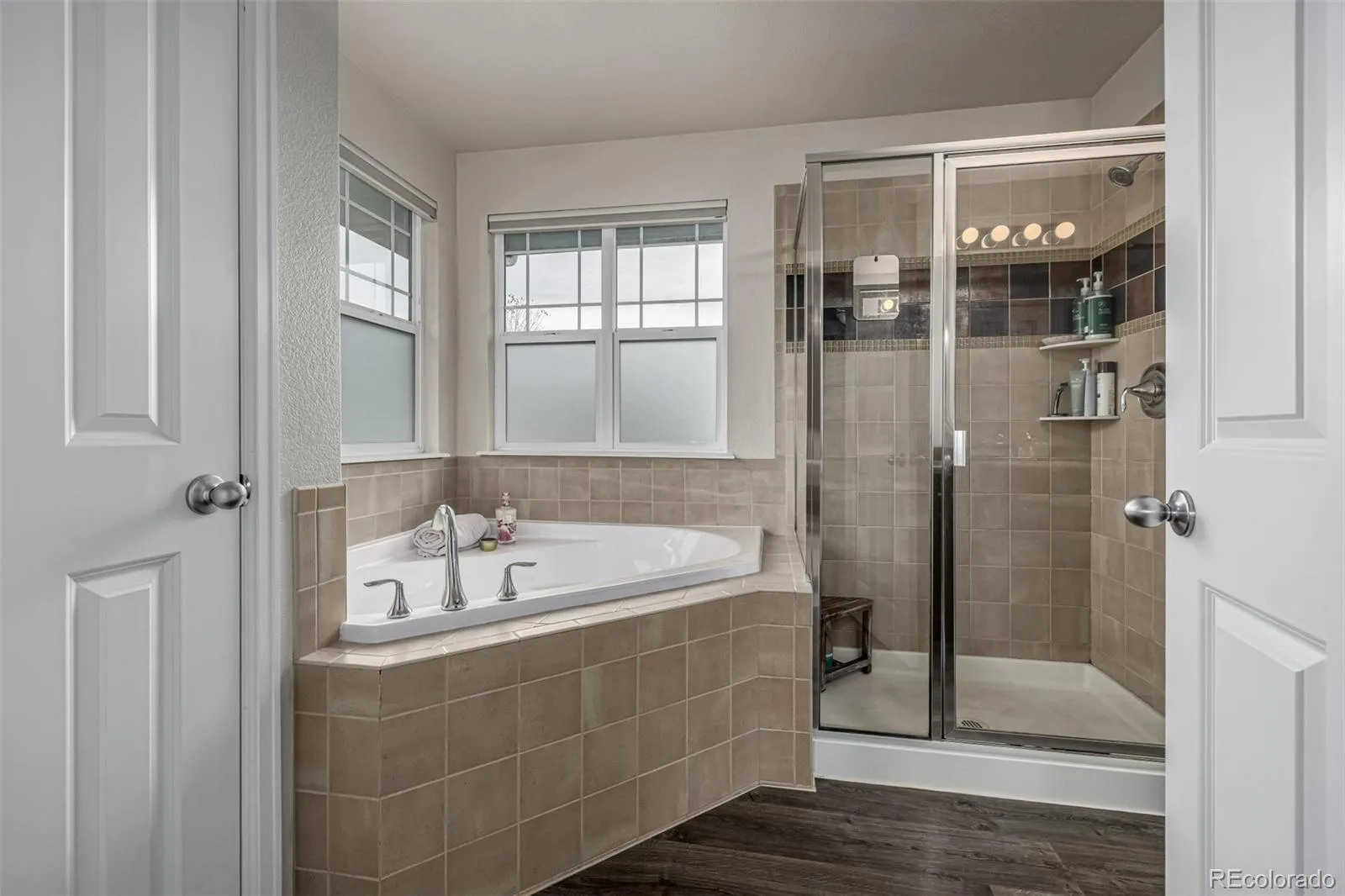 Welcome to this spacious 2-story home located in the heart of Erie. Walking distance or a short drive or bike ride to a multitude of shops, including Starbucks and several dining options, Lehigh Park, the neighborhood pool & gym, Colorado National Golf Club, walking & bike trails leading to 100’s of miles of exploration, making this homes location desirable. Erie is known for its community feel, small town vibe, its proximity to outdoor recreation and superb views of The Rocky Mountains. Inside this well loved home you will discover the spaciousness it offers with several living spaces throughout. The main floor provides a sunny east-facing office with glass paneled French doors and built-ins. A formal sitting area and dining room with a 3-way gas fireplace greets you upon entry and guides you to the heart of the home – The Kitchen. This kitchen includes an island with plenty of eat-up seating space, quartz counters and multiple areas for food prep, a double oven, gas cooktop, walk-in pantry, ample cabinet space for storage and a cozy breakfast nook with a bay window. The sizable main floor laundry-room closes off and provides generous cabinetry, full size washer & dryer and a utility sink for whatever life challenges arise. Upstairs enjoy brand new plush carpet, a massive primary suite with an attached 5-piece bathroom, soaking tub, double sink, linen closet, private commode & walk-in closet. 3 spacious secondary bedrooms on the upper level, one bedroom includes a private en-suite full bathroom. The fully finished basement with a wet bar offers multiple flex spaces to use however your heart desires. This home is LOADED with storage space, closets galore and a tandem 3 car garage with tall ceilings for additional storage. The outdoor spaces of this home offer both a covered front porch and a covered back patio. The yard is the perfect size for easy maintenance.