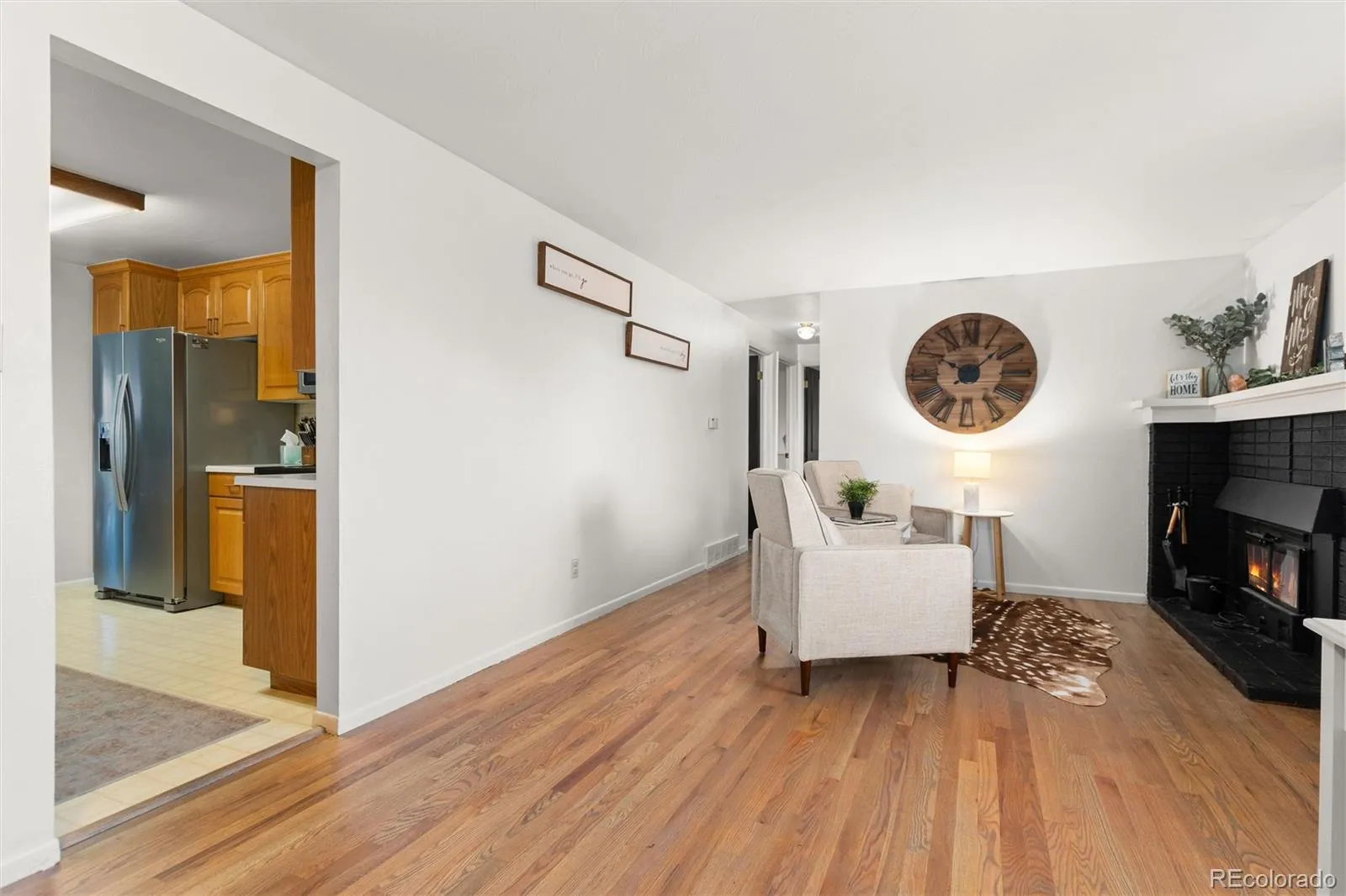 This beautiful mid-century Littleton home blends timeless character with thoughtful updates. Original hardwood floors span the main level, highlighting the home’s mid-mod charm and adding warmth and continuity throughout. A large picture window fills the living room with natural light, creating an inviting and comfortable atmosphere.