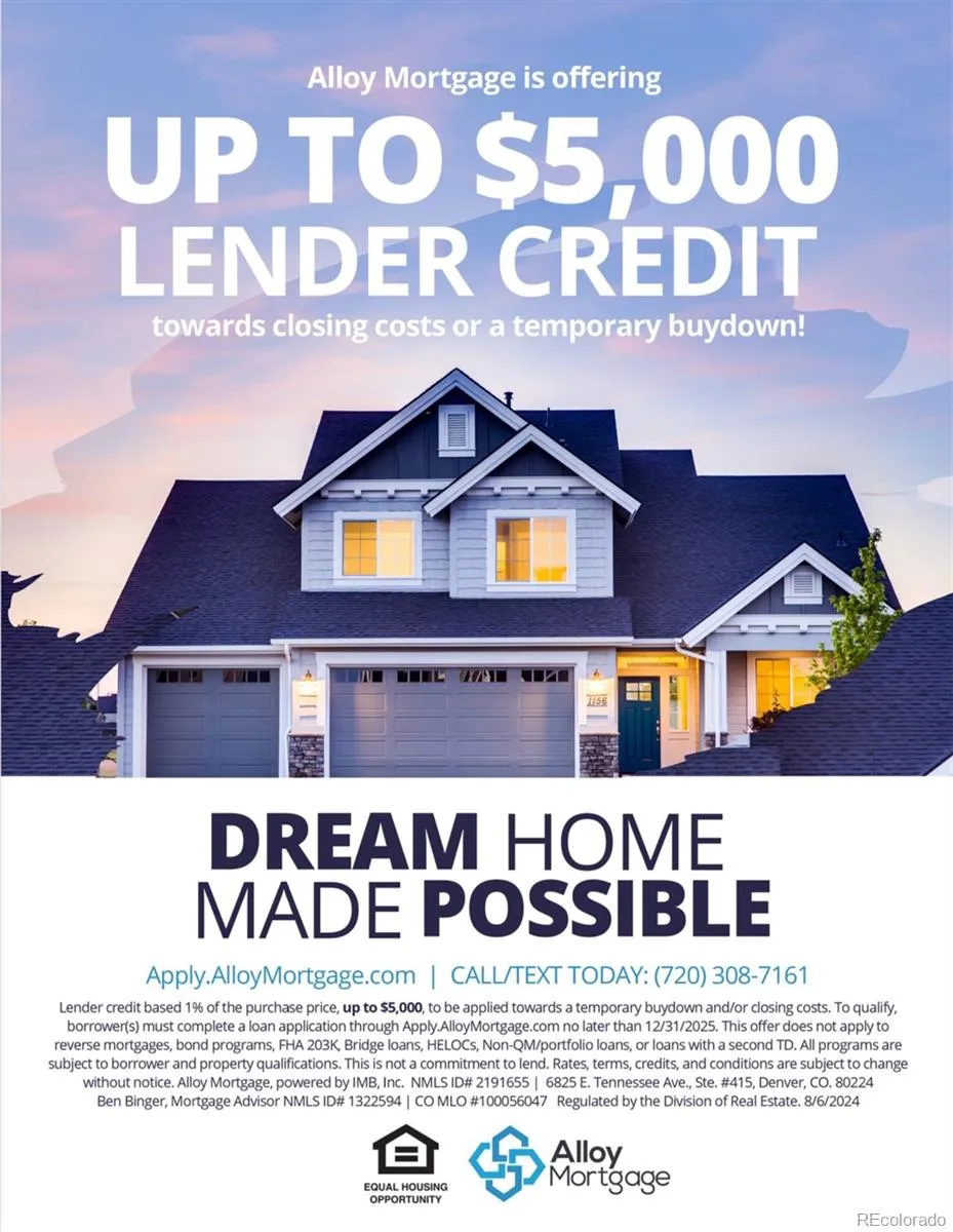 Available until 12/31/25, preferred lender’s program is offering up to a $5,000 lender credit towards a 1-0, or 2-1 temporary rate buydown. FREE appraisal included with the 1-0 buydown.
