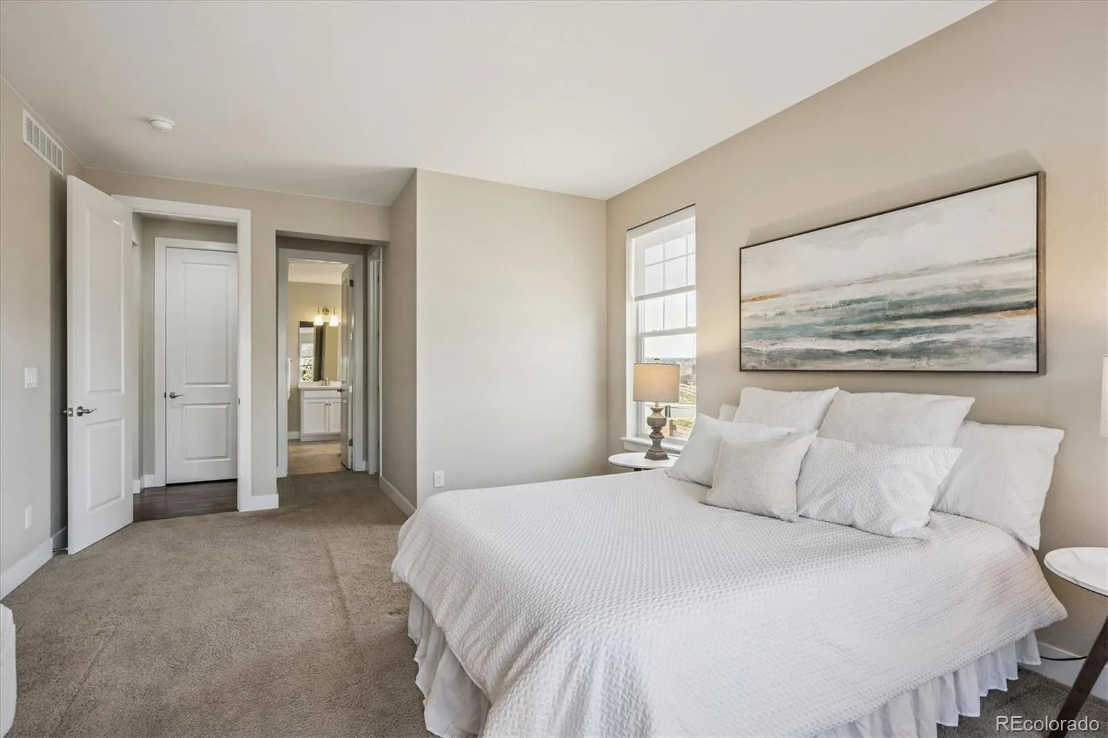 The luxurious primary retreat features a spacious walk-in closet with built-ins & a five-piece bath with walk-in shower & soaking tub. French doors open to the main floor study/flex space, perfect for working from home while overlooking the adjacent park.