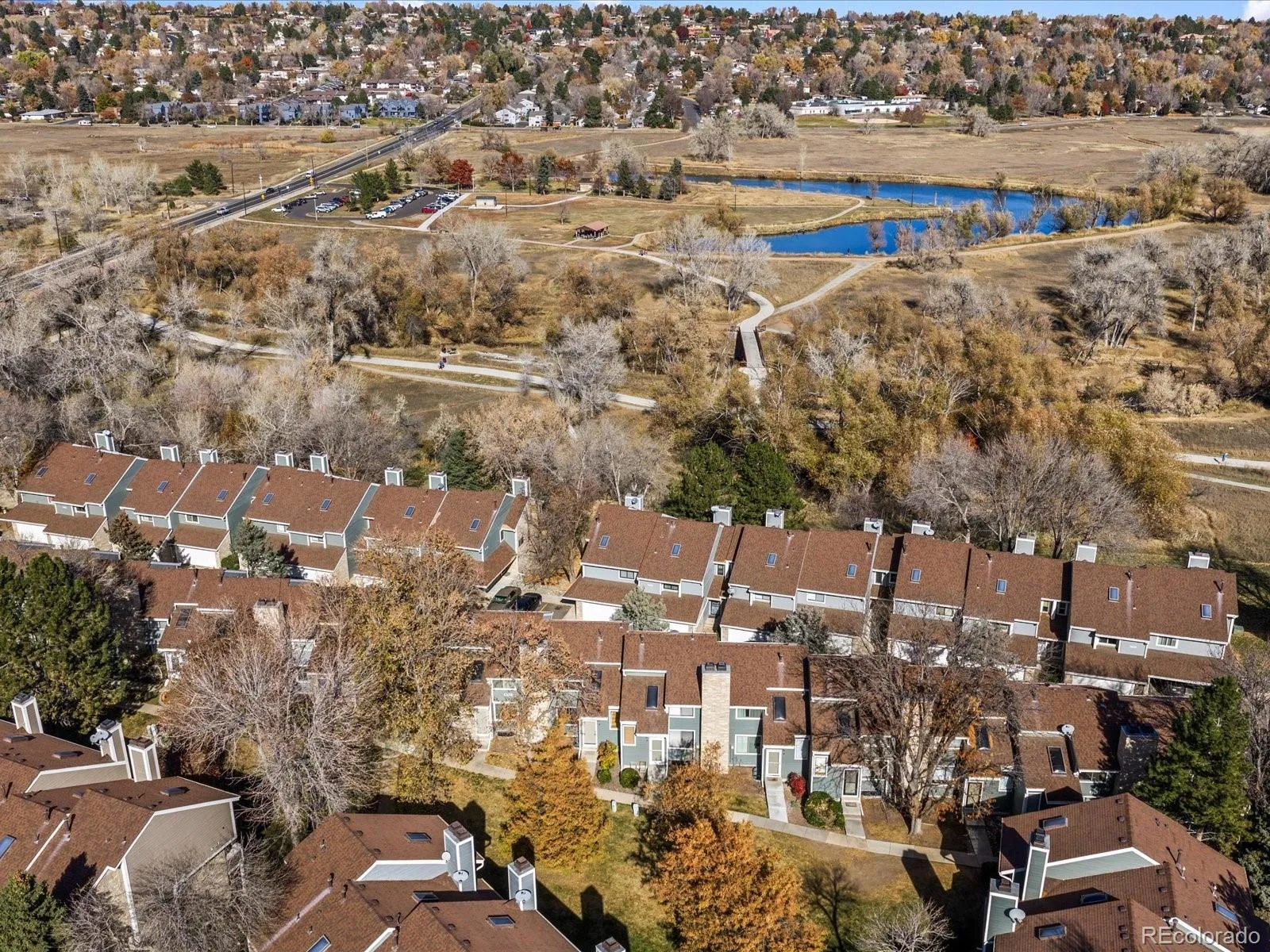 Welcome to this light and bright townhome featuring vaulted ceilings and an open layout. The spacious living room has a cozy fireplace and opens to a private balcony. The kitchen includes Corian countertops, plenty of cabinet space, and brand new stainless steel appliances. Hardwood bamboo floors run throughout the main living areas. The primary bedroom features a walk in closet and direct access to a full bath. The second bedroom offers flexibility for guests, a home office, or hobbies. The home also includes a two car garage, washer and dryer hookup plus a new furnace and water heater. The community offers a pool, hot tub, and tennis courts for on-site recreation. Enjoy being just steps from the walking and biking paths along the Bear Creek Greenbelt. Five golf courses are located within minutes, along with a variety of shopping and dining options along Wadsworth Boulevard. This is a comfortable home in a prime Lakewood location with easy access to nature and daily conveniences!