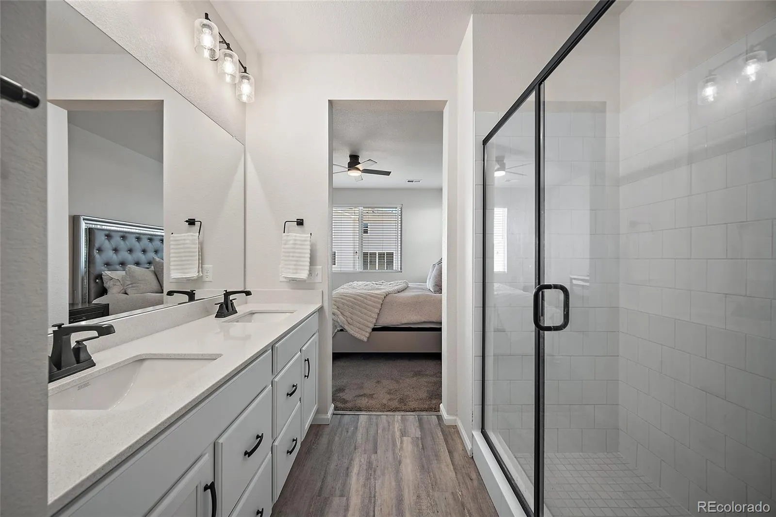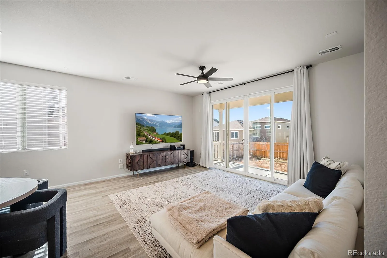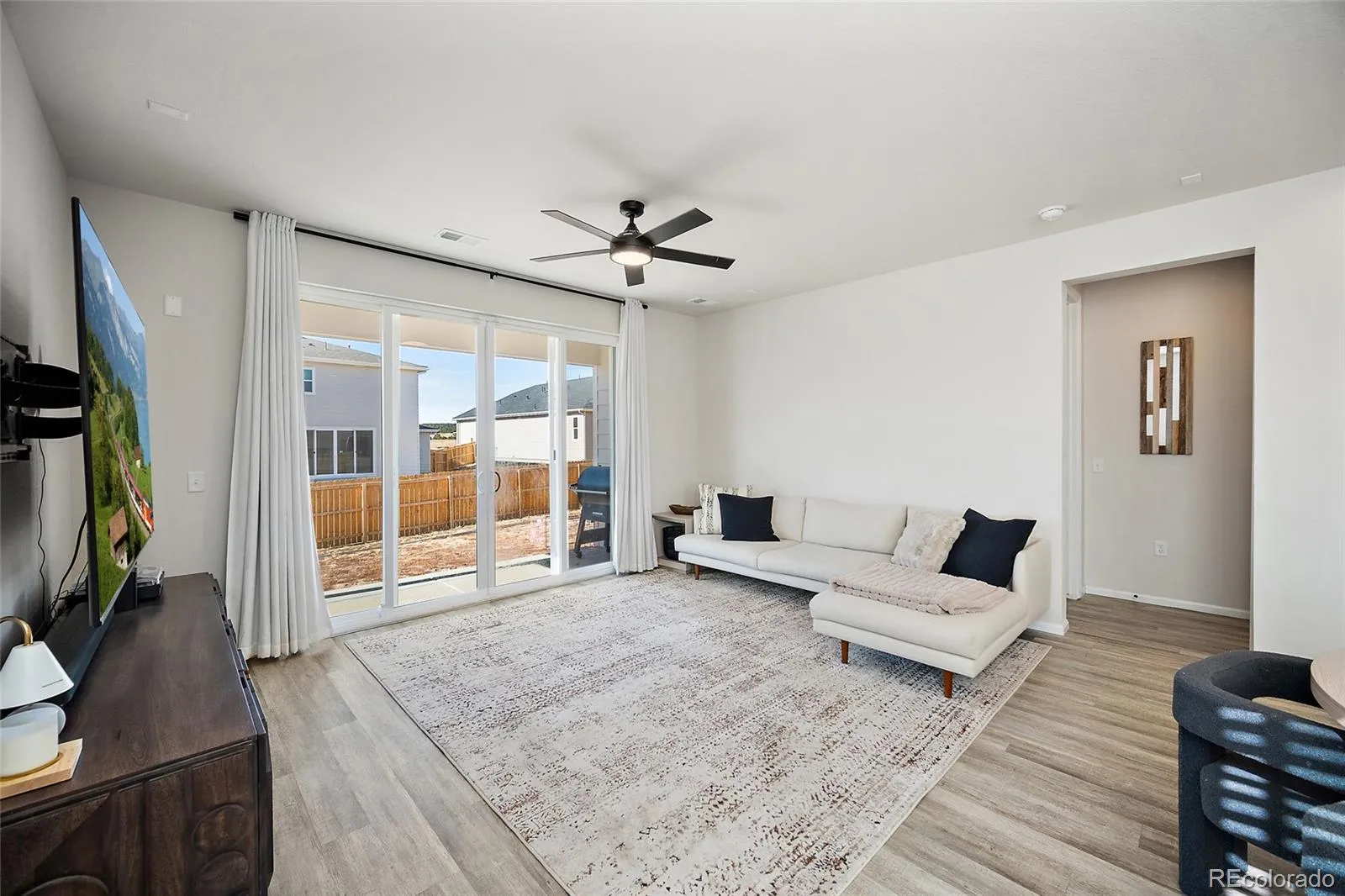 Built in 2023, this spacious 4-bedroom, 3-bathroom home in the Paint Brush Hills community combines modern design, mountain views, and the freedom of no HOA. Situated on a 9,100-square-foot lot with a landscaped front yard, covered front porch, and oversized RV garage, this home offers comfort and functionality for outdoor enthusiasts or anyone who needs extra space for toys and hobbies. Inside, you’ll find an open-concept main level with a white modern kitchen featuring a gas range, large single-level island, and plenty of cabinet space. The layout connects seamlessly to the dining and living areas, creating an inviting space for everyday living and entertaining. The main-level primary suite includes a walk-in closet, dual vanities, a stand-alone shower, and a private water closet. The laundry room is conveniently located just off the garage entrance. Upstairs, a spacious loft provides flexible living space for a home office, playroom, or media area. Each of the three secondary bedrooms includes its own walk-in closet, and the upstairs bathroom offers dual sinks, a separate toilet area, and another linen closet for additional storage. The garage is a true standout with a two-car bay plus a full-size RV garage that can accommodate large vehicles, a camper, boat, or multiple cars. The 6-foot privacy fence is already in place, and the backyard is ready for your personal touch. Create the outdoor space you’ve been dreaming of while enjoying beautiful Pikes Peak views. Additional highlights include central air conditioning, modern finishes, and a prime location near schools, parks, Antler Creek Golf Course, and the Shops at Meridian Ranch. Enjoy quiet suburban living with easy access to Colorado Springs and the freedom of no HOA. Bring your ideas, your RV, and your sense of adventure—this home offers the space, layout, and lifestyle flexibility buyers are searching for.