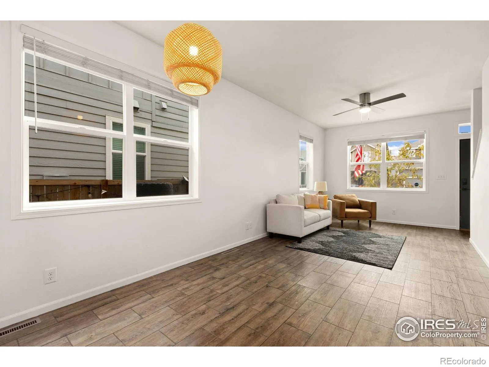 This charming paired home offers modern updates, natural light, and low-maintenance living. The main level features an open great room, dining area, and kitchen with LVP flooring and large windows. The kitchen includes freshly repainted 42″ cabinets with gold hardware, stainless steel appliances, a tile backsplash, and a peninsula for casual dining. Upstairs are two en-suite bedrooms, including a primary with a walk-in closet, plus convenient second-floor laundry. Enjoy a fenced yard with a private back patio, along with a detached alley-load one-car garage and extra parking pad. An assumable 3.875% FHA loan is available for qualified buyers. Move-in ready and beautifully updated.