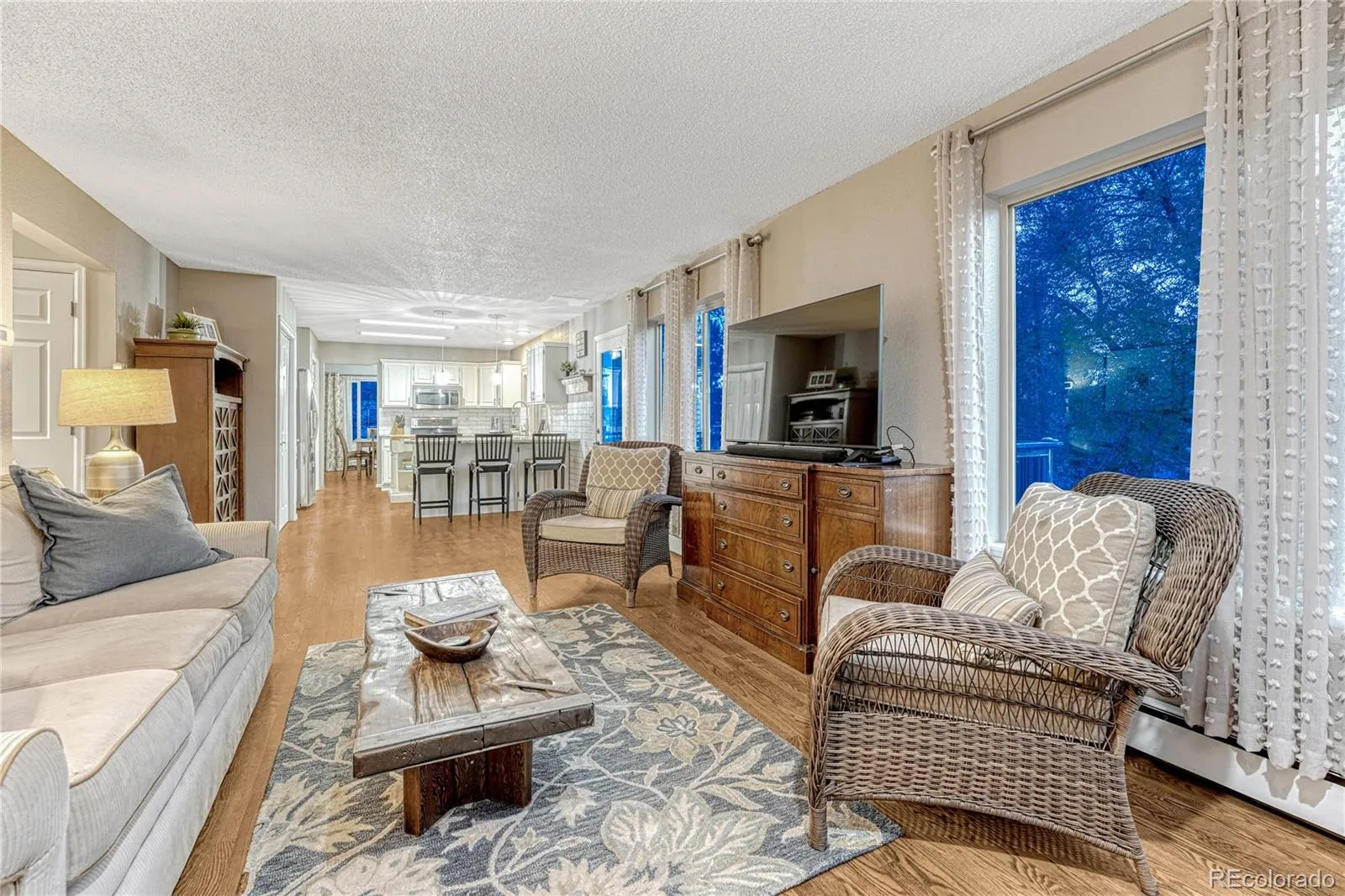 Wanting something that feels like home? Cozy? Inviting? Spacious? Look no further. 6 generously sized bedrooms and 4 bathrooms provide ample room for family living and entertaining. Located on .37 of an acre, this corner lot has many wonderful areas for play! South facing deck to enjoy coffee or sunset cocktails. On the main level, take advantage of one bedroom and two living areas that invoke comfort. This home boasts sleek new stone countertops, offering a stylish and functional kitchen and bathrooms. Upstairs enjoy a great jack and jill bathroom with bluetooth speakers within the lighting! The four bedrooms upstairs each have built in shelving too! Enjoy the elegance of newly refinished floors and tastefully painted walls throughout. Three beautiful gas fireplaces enhance the home’s cozy, welcoming atmosphere. The downstairs walkout basement is where the fun begins! Large recreation area with LVP and an office and bedroom with ample storage. Step outside to find mature landscaping and an inviting outdoor space perfect for relaxation or entertaining. Close to the Air Force Academy, shopping, trails and I-25. This truly is one of those homes when you walk in, your heart is happy.